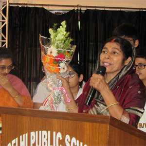 After the welcome dance recital by the school dance troupe, Smt. Yadav addressed the children. A prolific speaker, she drew anecdotes from her own life to deliver a motivating speech that left the students bubbling with excitement and enthusiasm. She spoke about the importance of discipline, regular regime of exercise and perseverance to build ones character and reach ones goals.