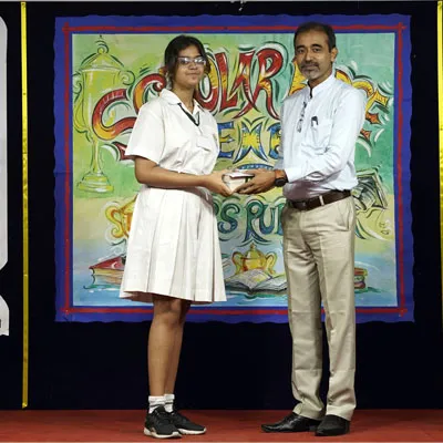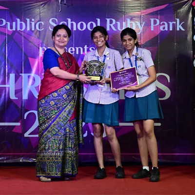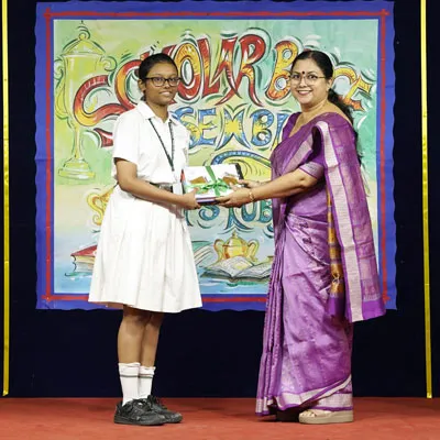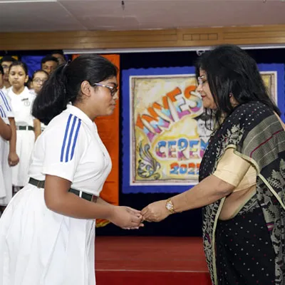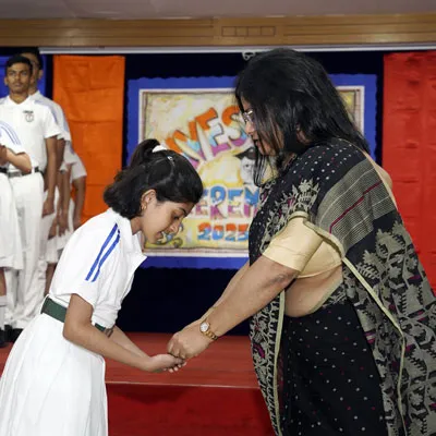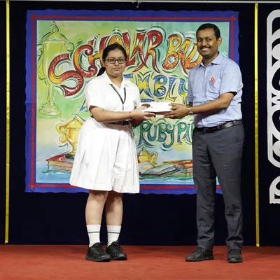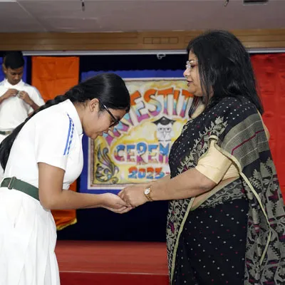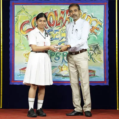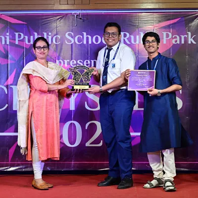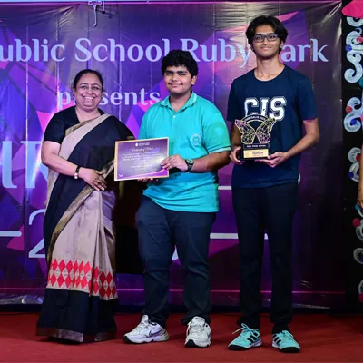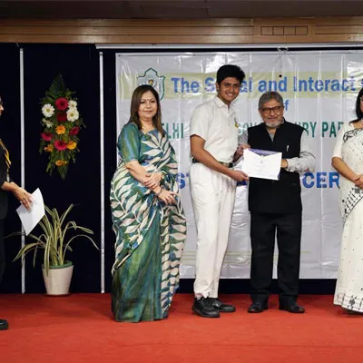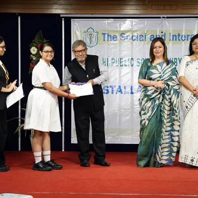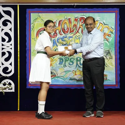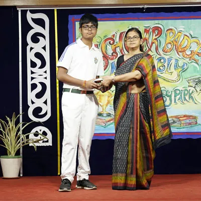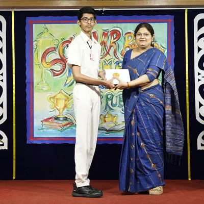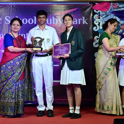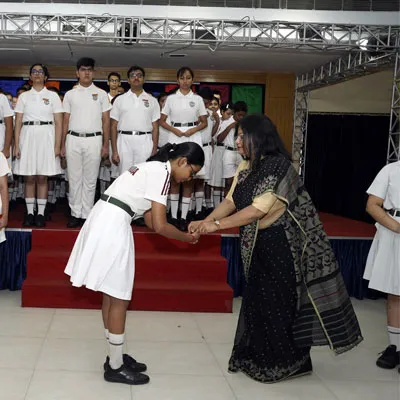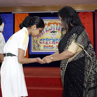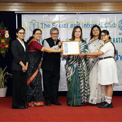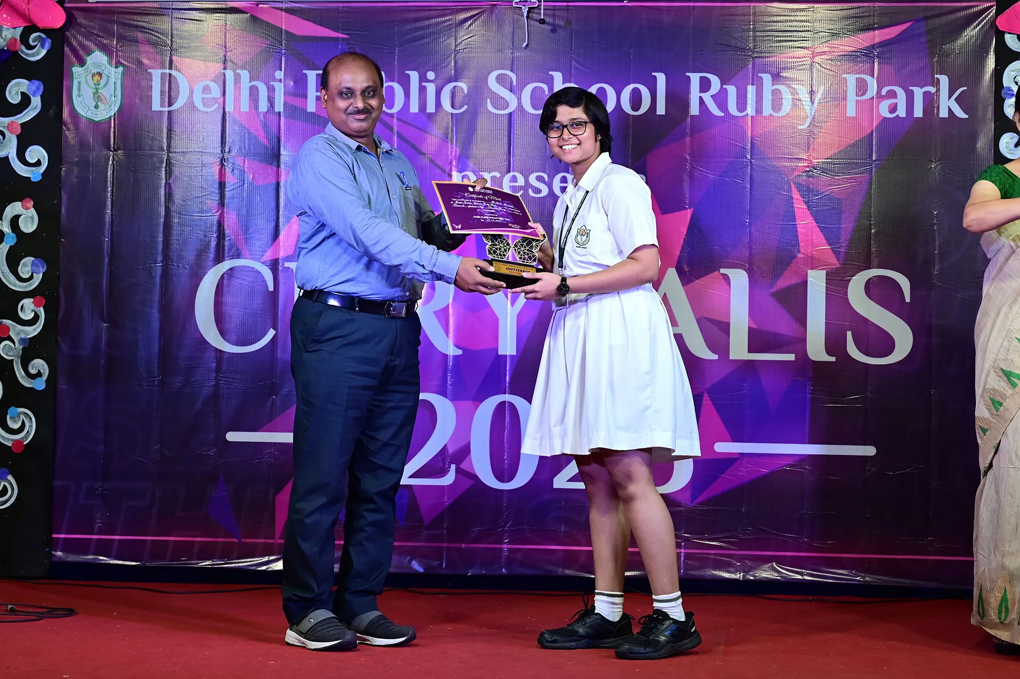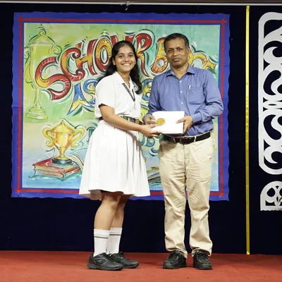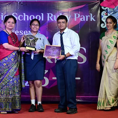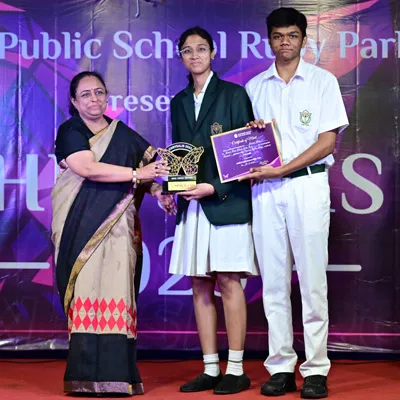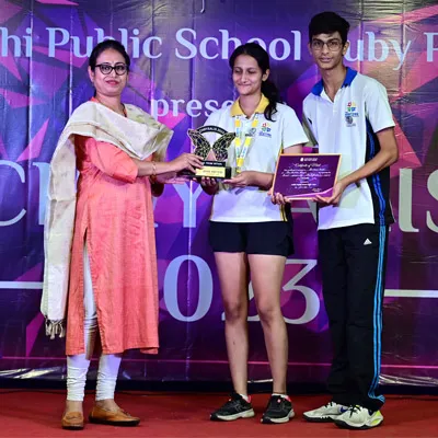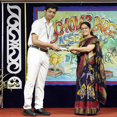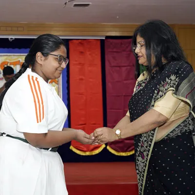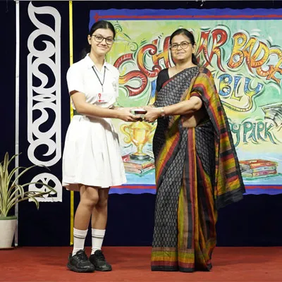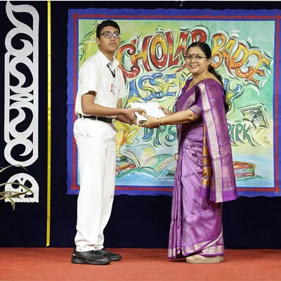 Outgoing President Of Social And Interact Club 2022 – 23 Of Dps Ruby Park Raina Das Receiving Her Certificate From Club Mentor Tapan Gooptu -