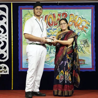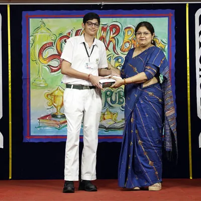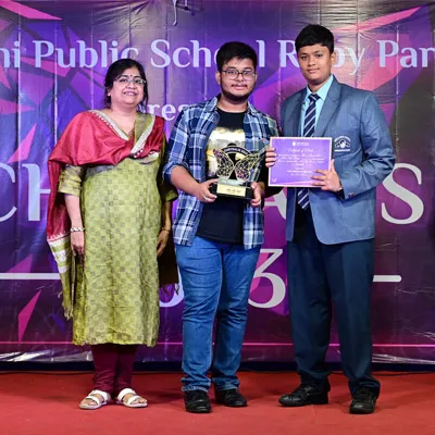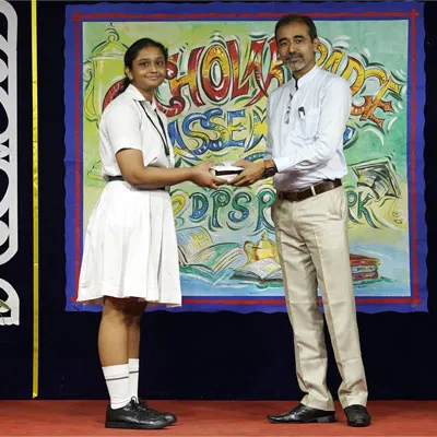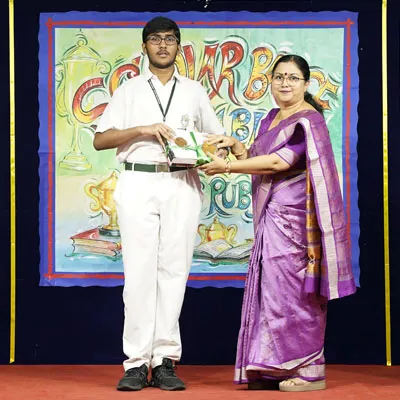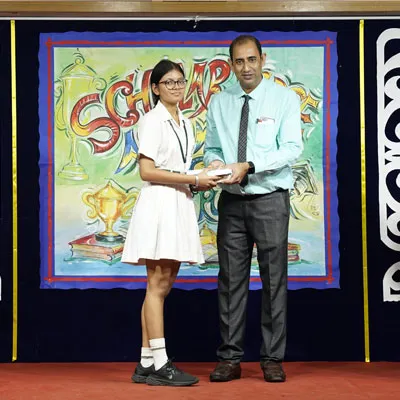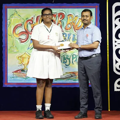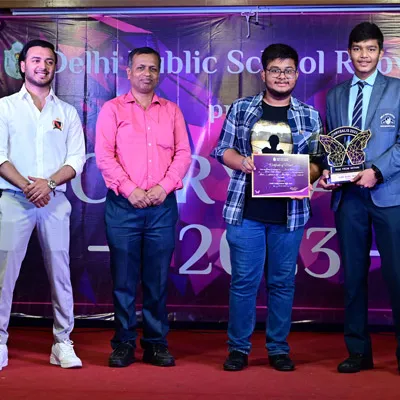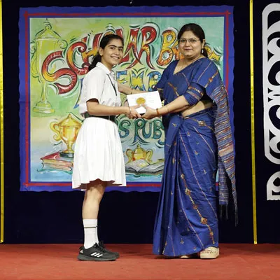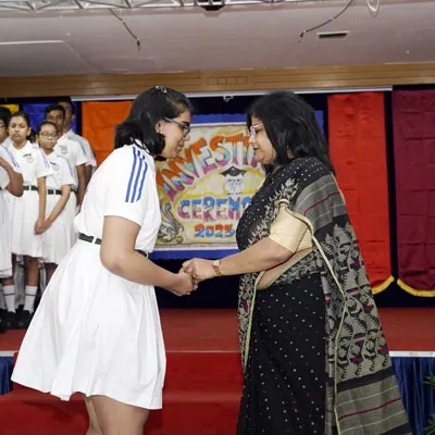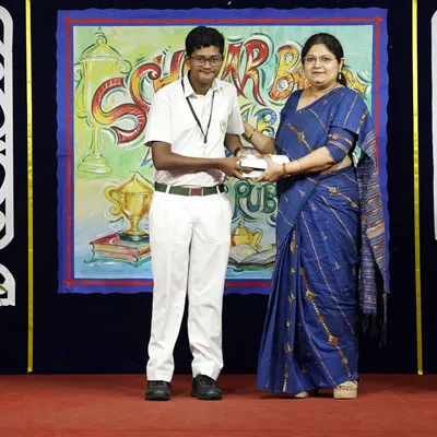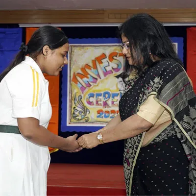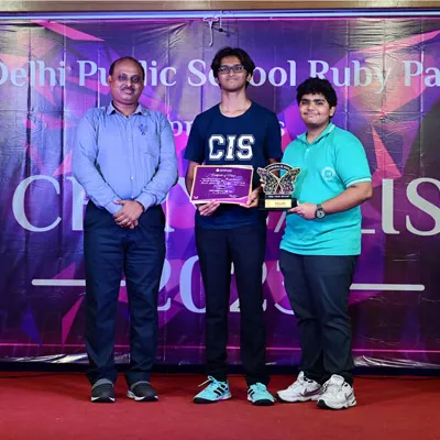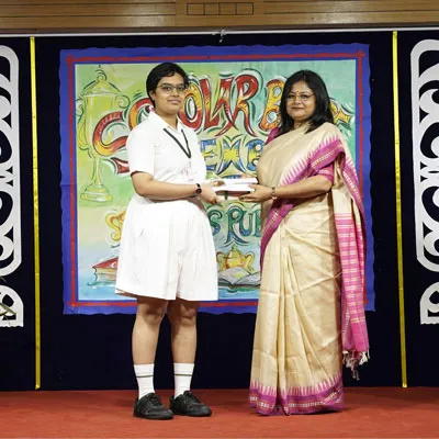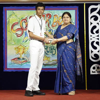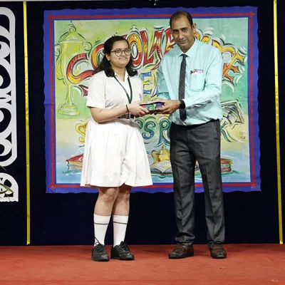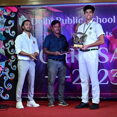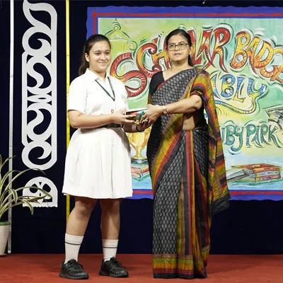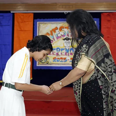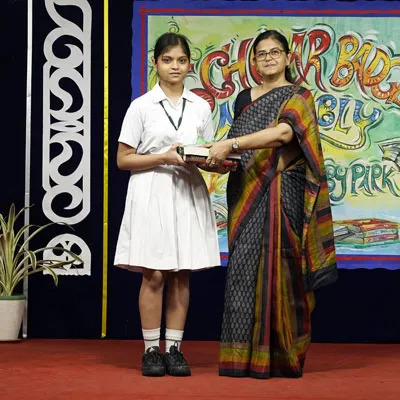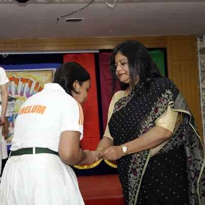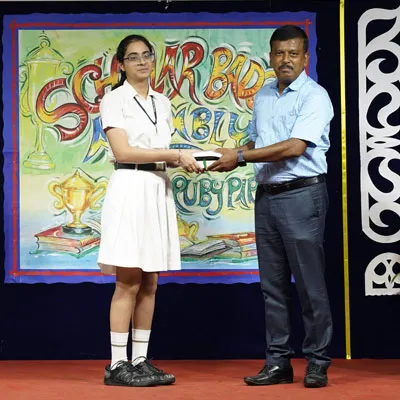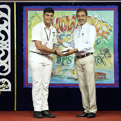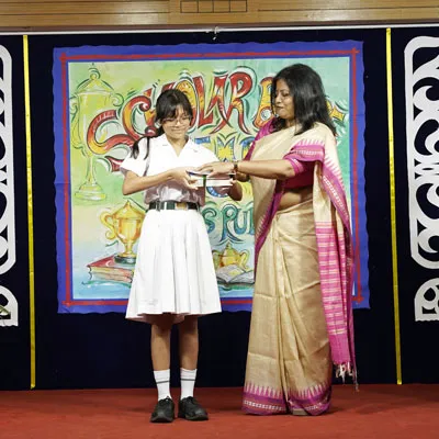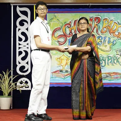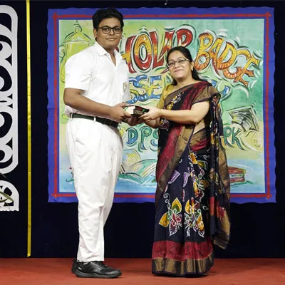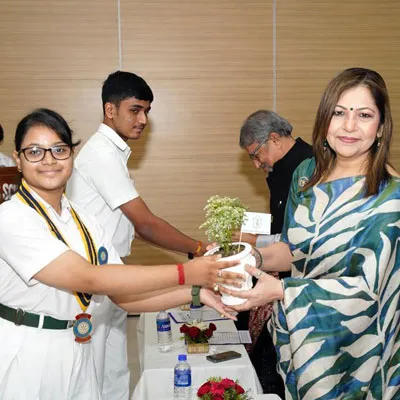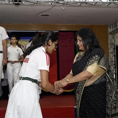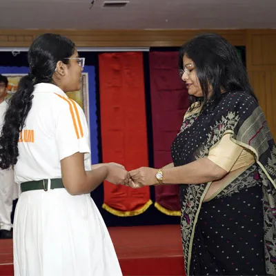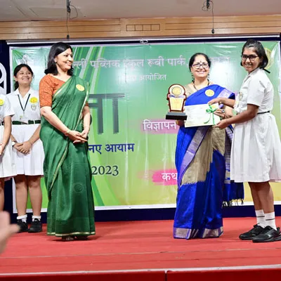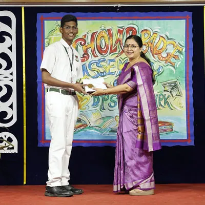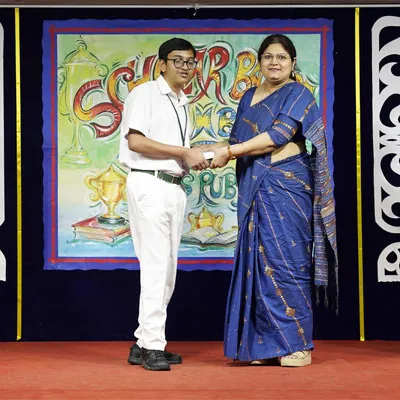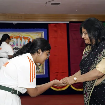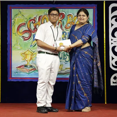 Outgoing President Of Social And Interact Club 2022 – 23 Of Dps Ruby Park Raina Das Receiving Her Certificate From Club Mentor Tapan Gooptu -