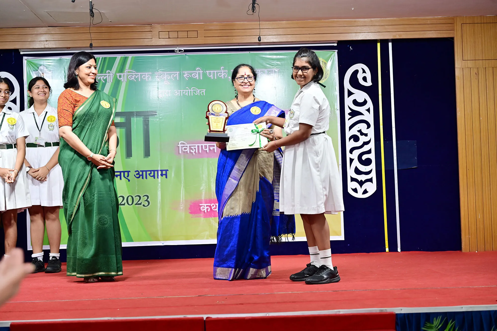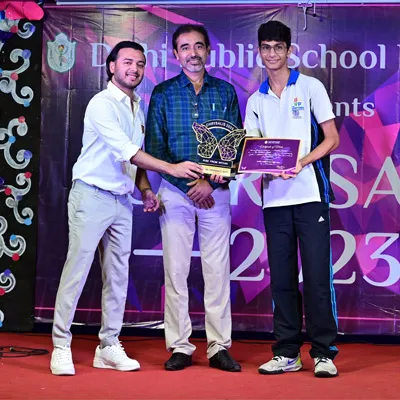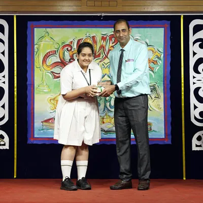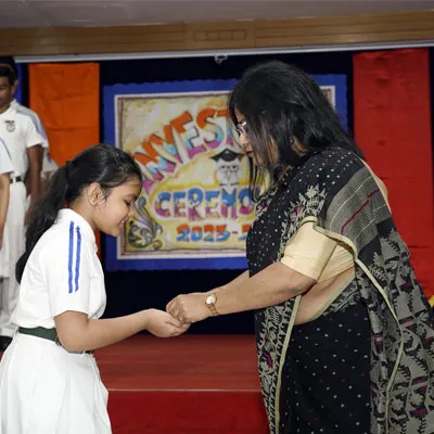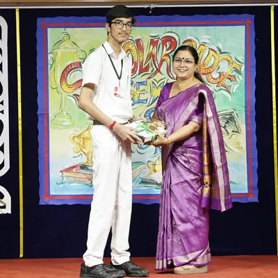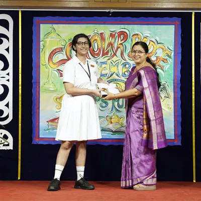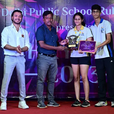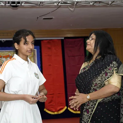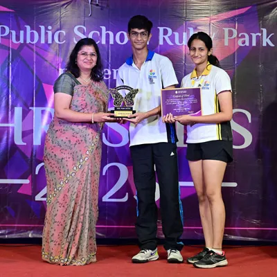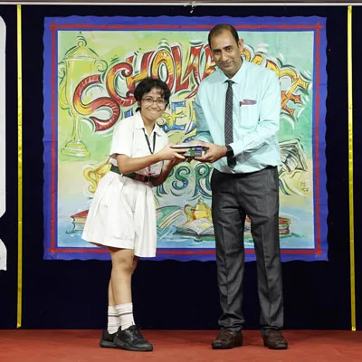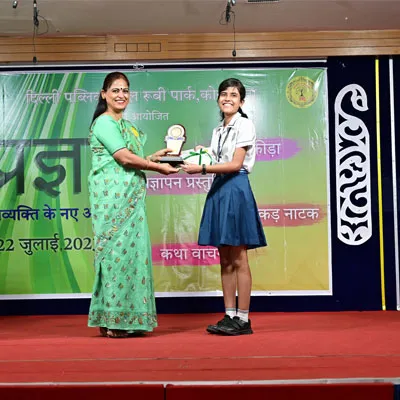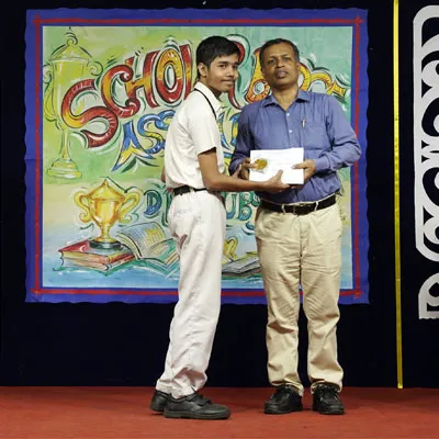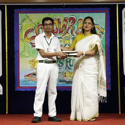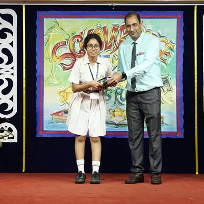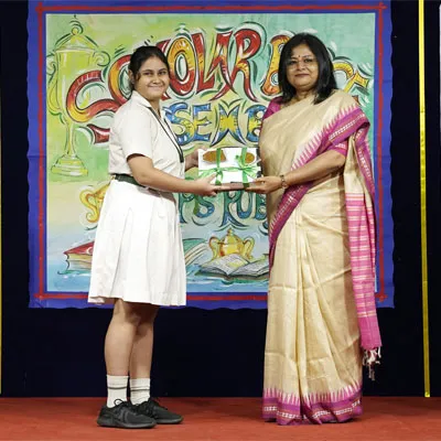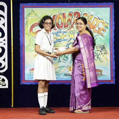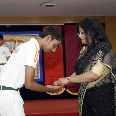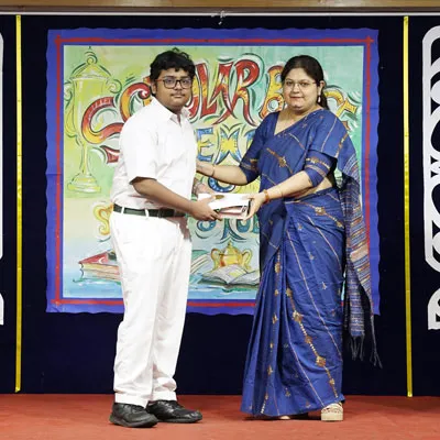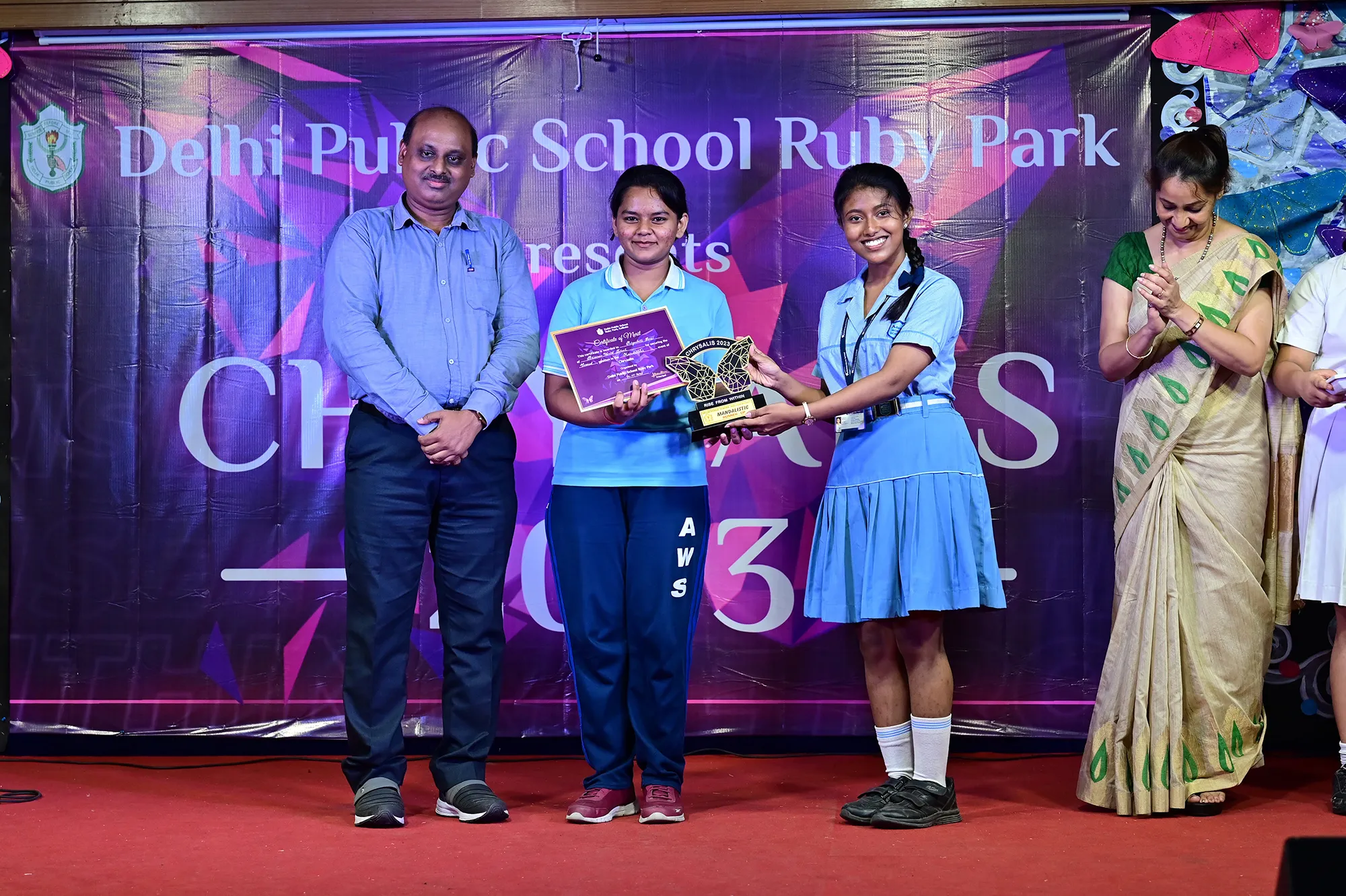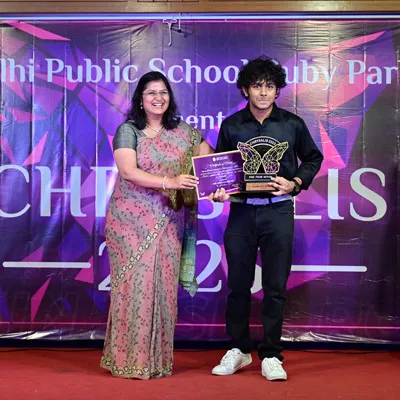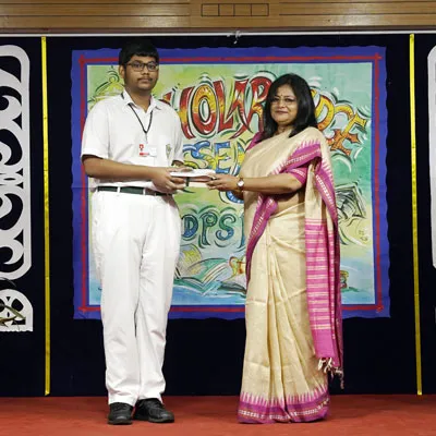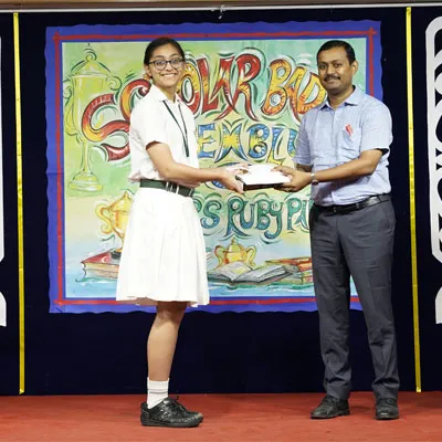 Outgoing President Of Social And Interact Club 2022 – 23 Of Dps Ruby Park Raina Das Receiving Her Certificate From Club Mentor Tapan Gooptu -