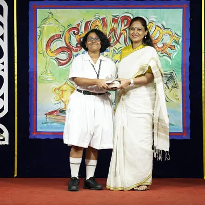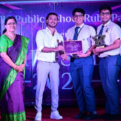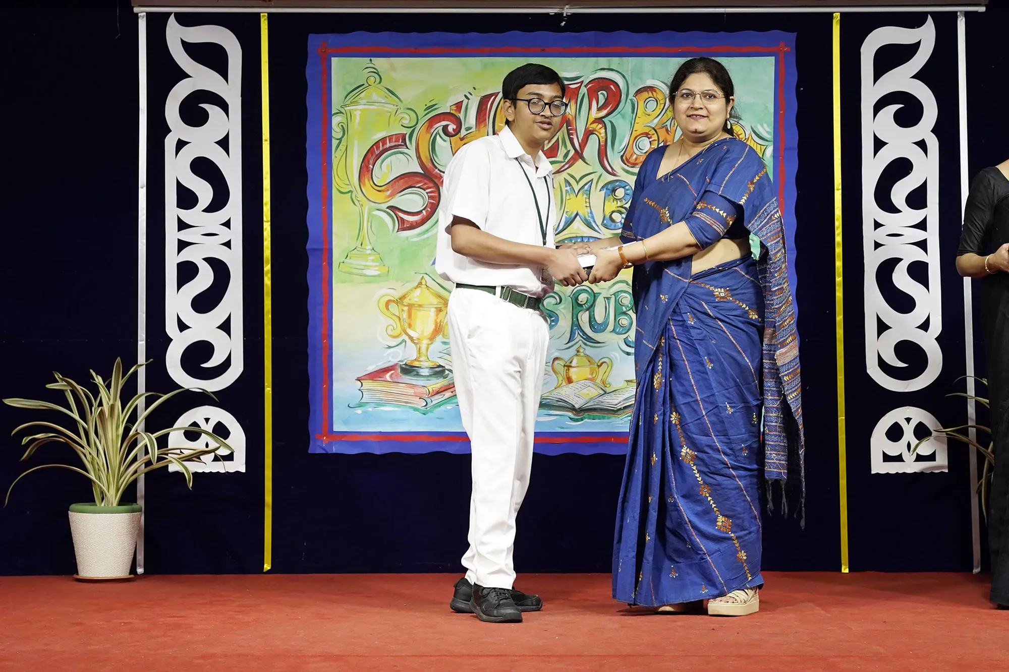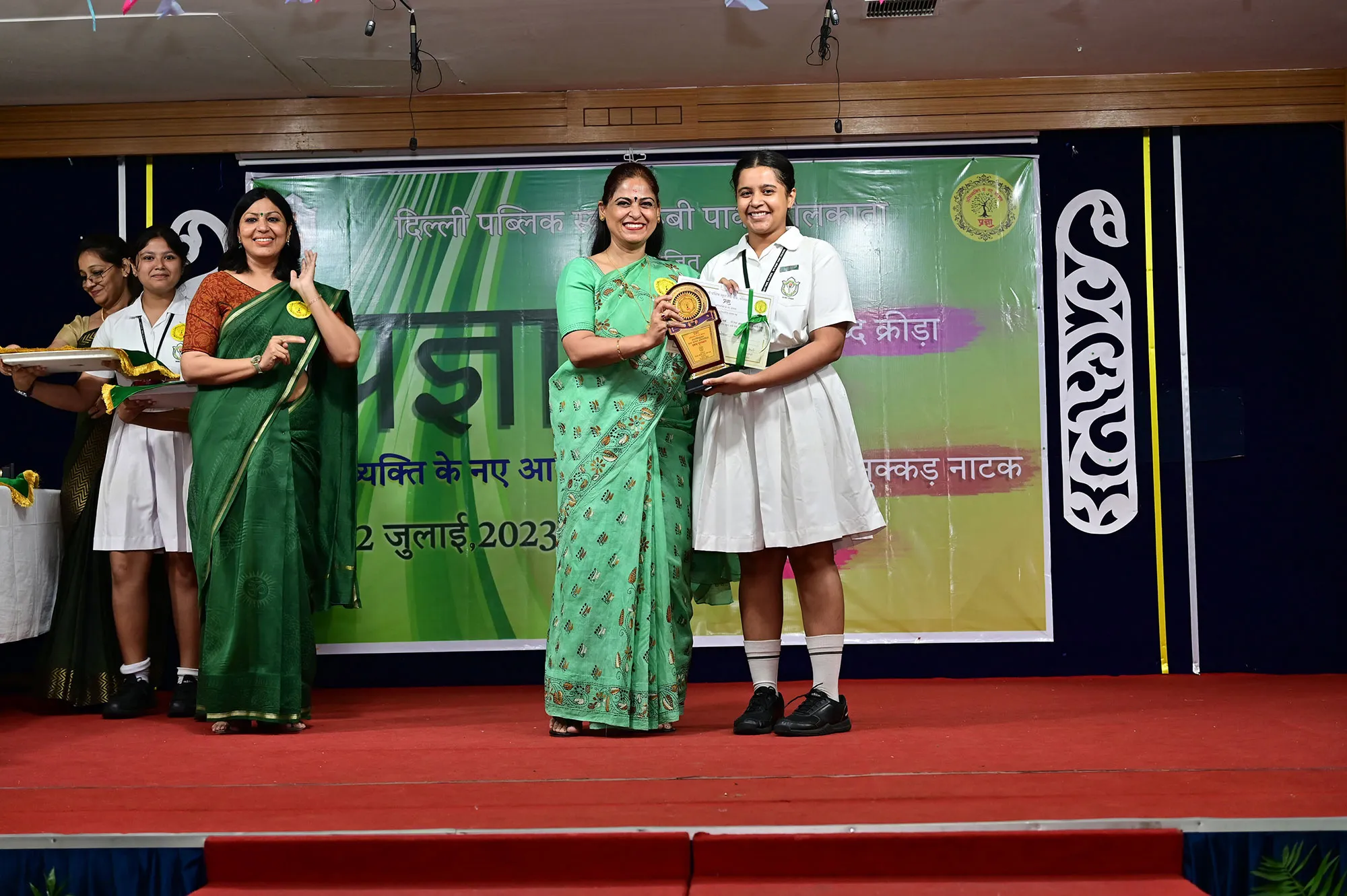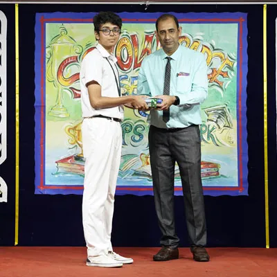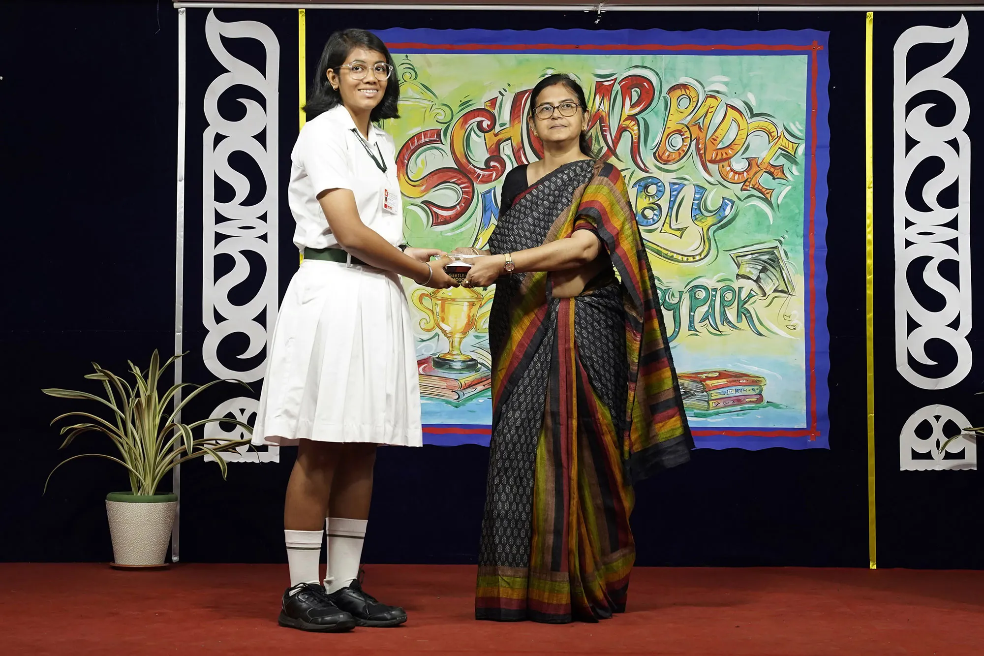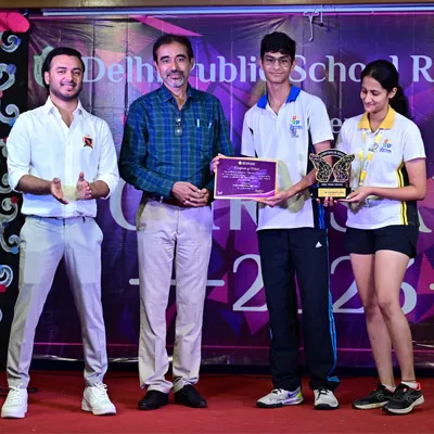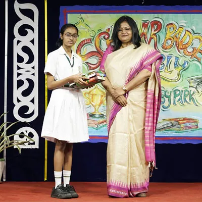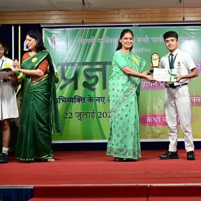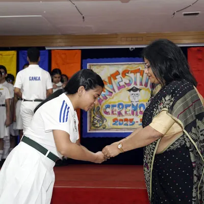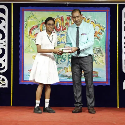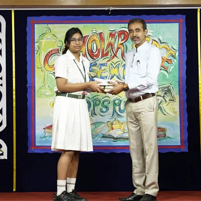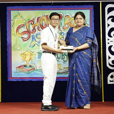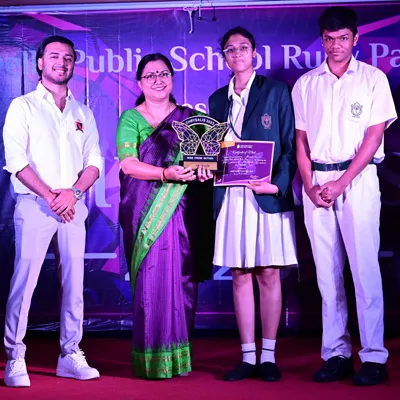 Outgoing President Of Social And Interact Club 2022 – 23 Of Dps Ruby Park Raina Das Receiving Her Certificate From Club Mentor Tapan Gooptu -