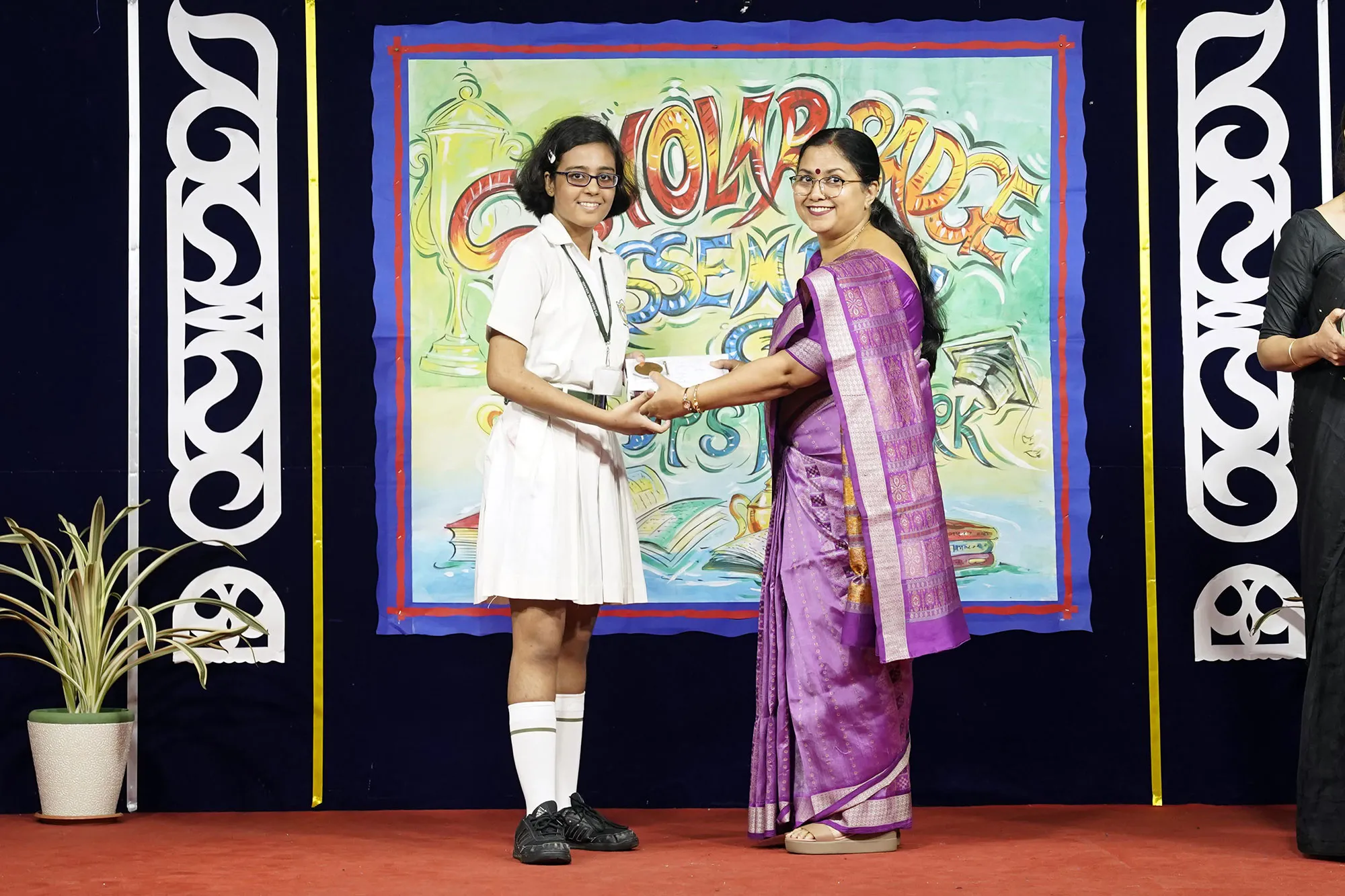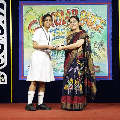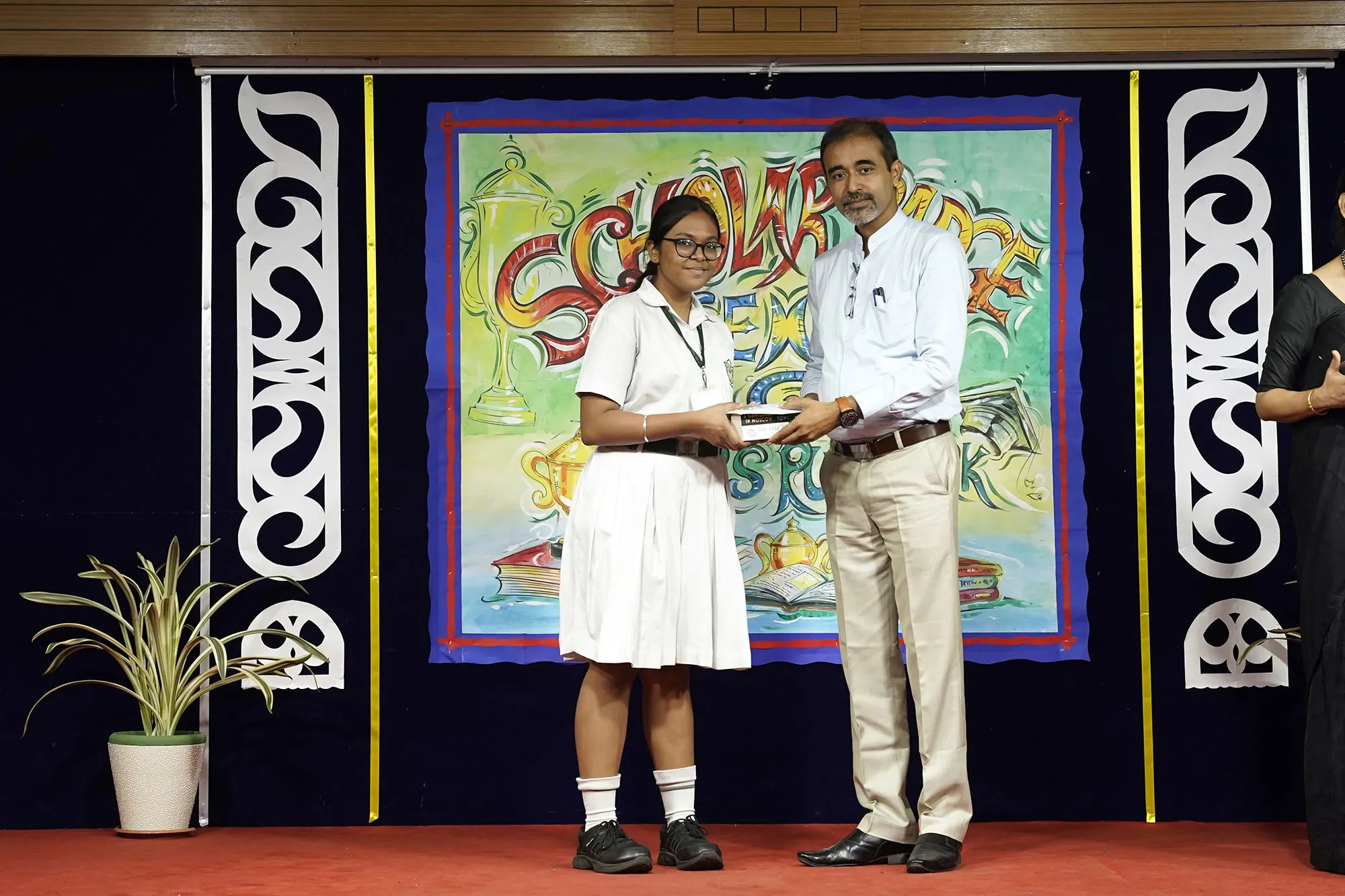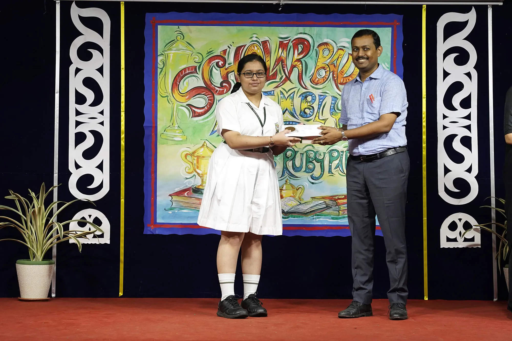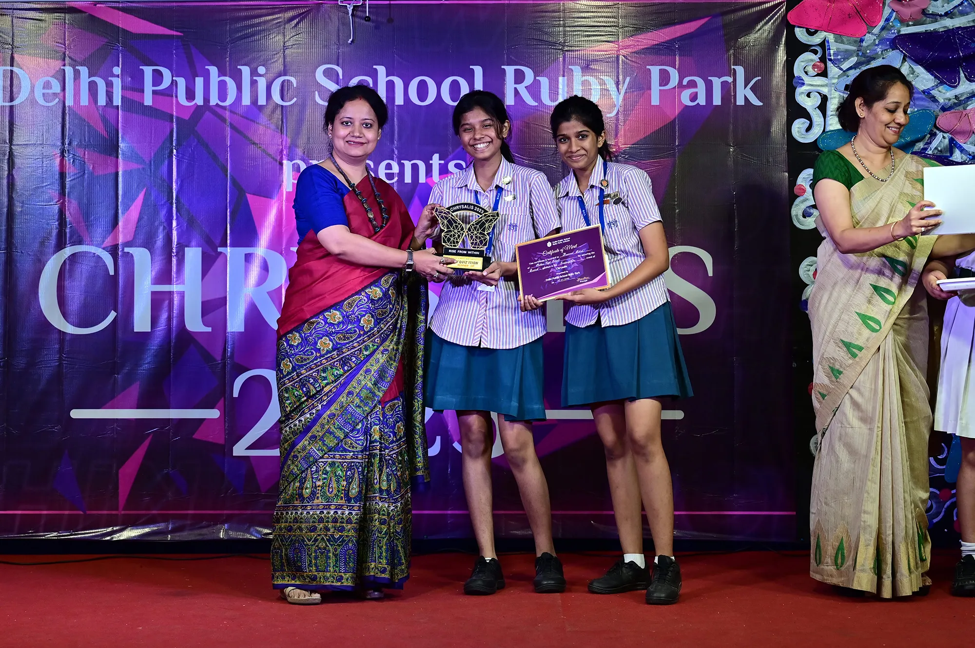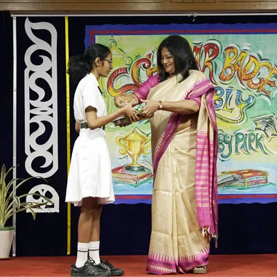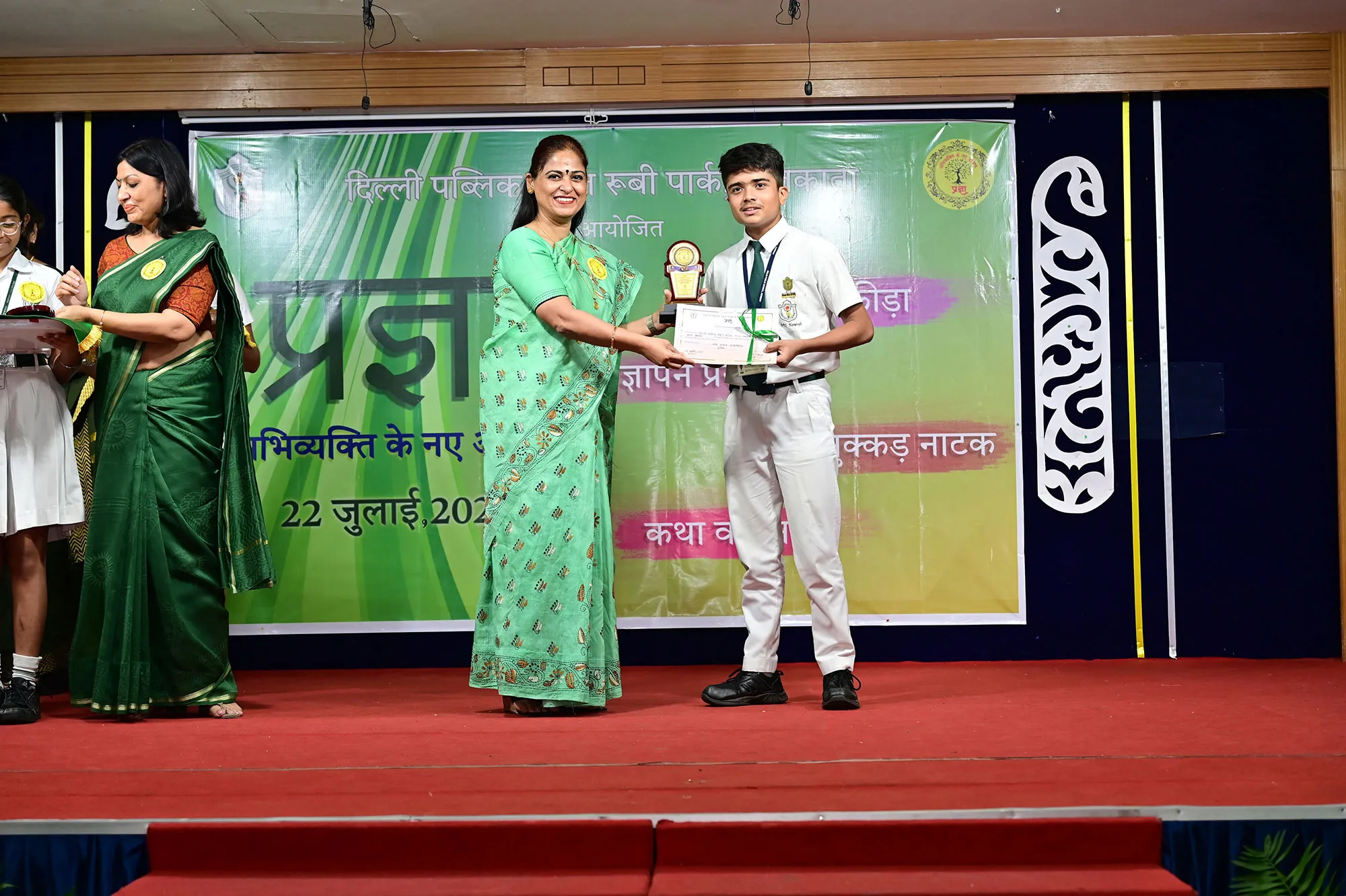 Outgoing President Of Social And Interact Club 2022 – 23 Of Dps Ruby Park Raina Das Receiving Her Certificate From Club Mentor Tapan Gooptu -