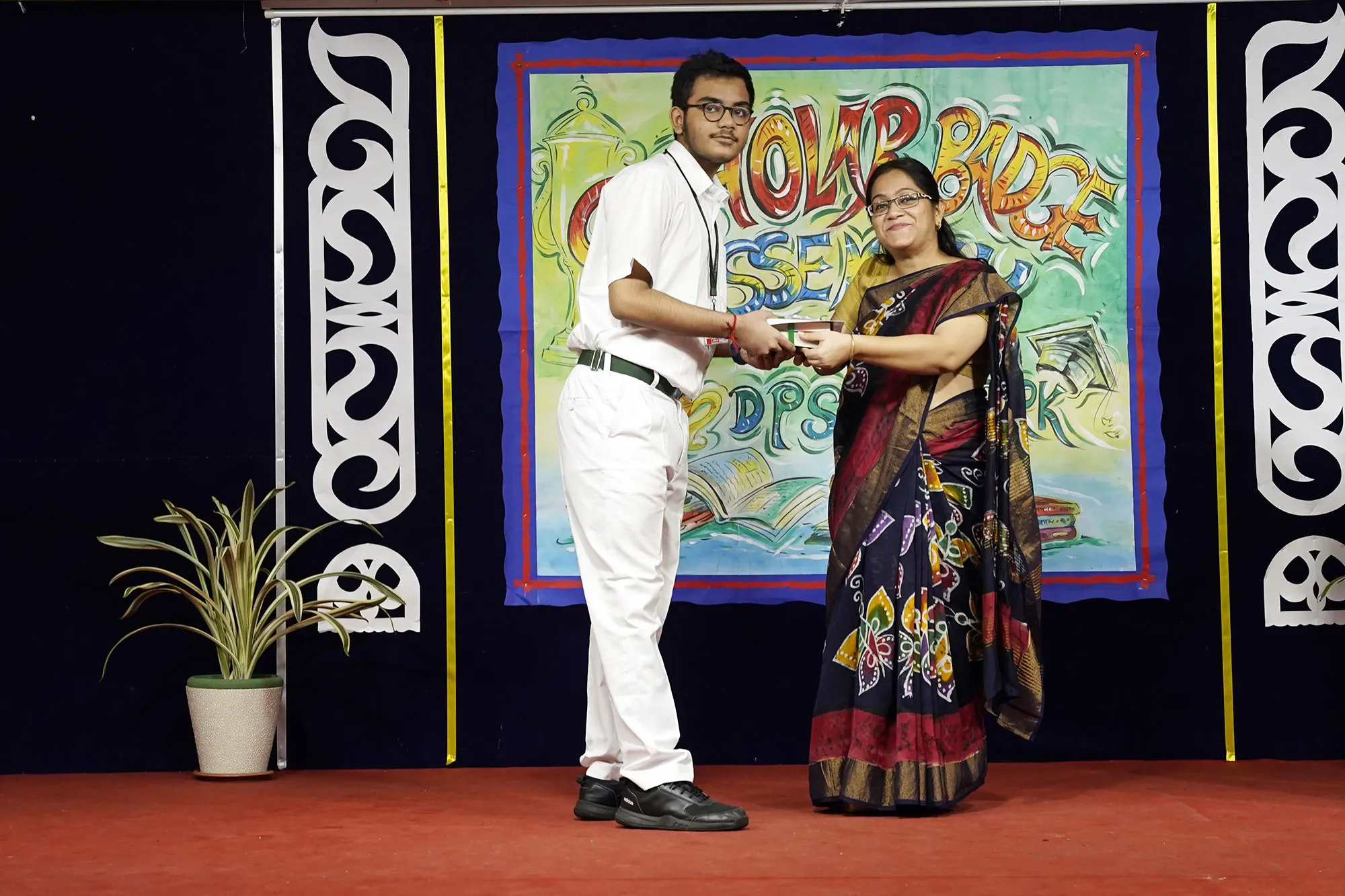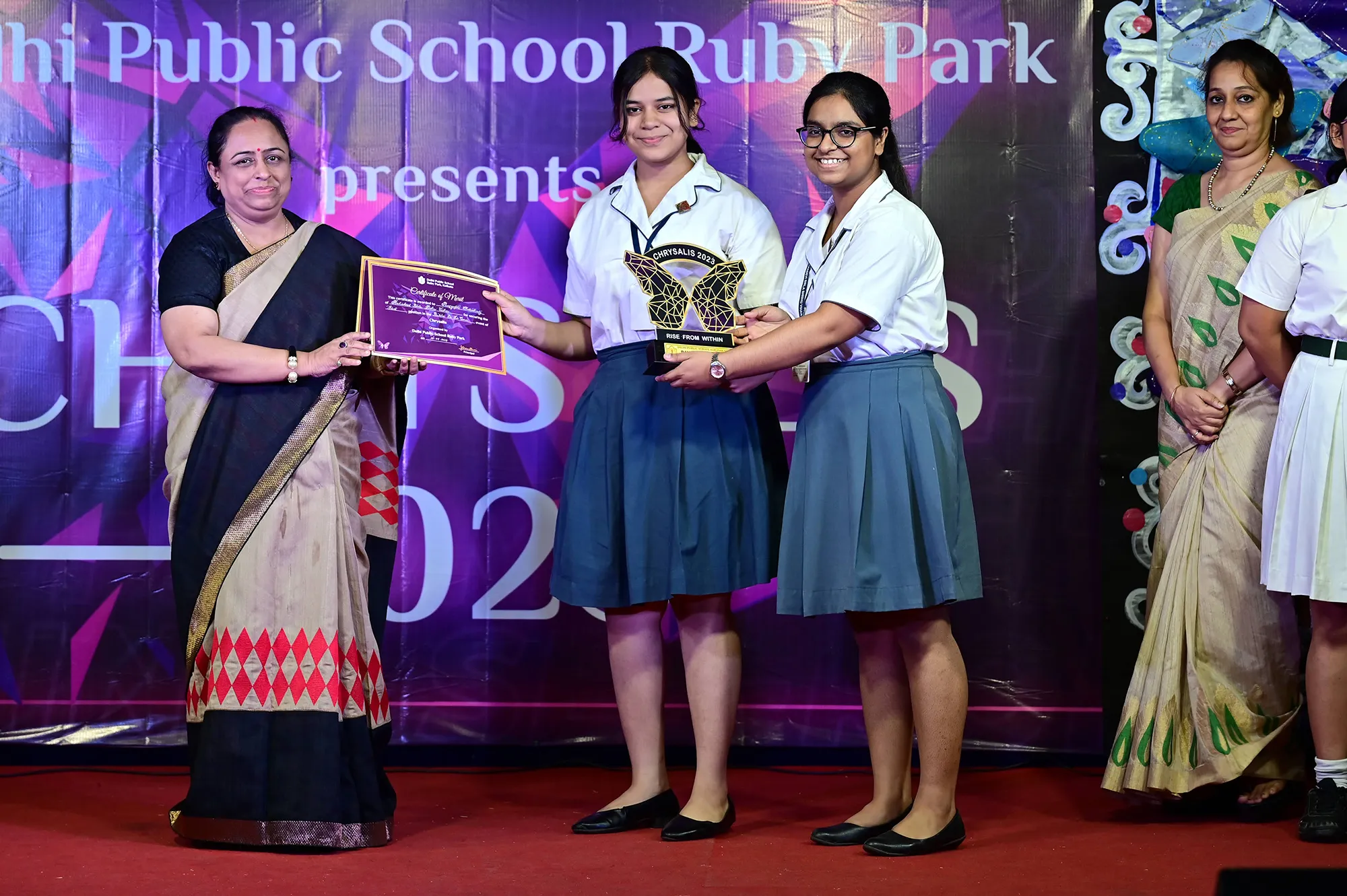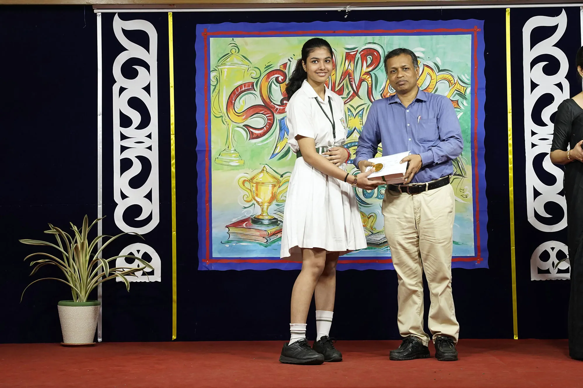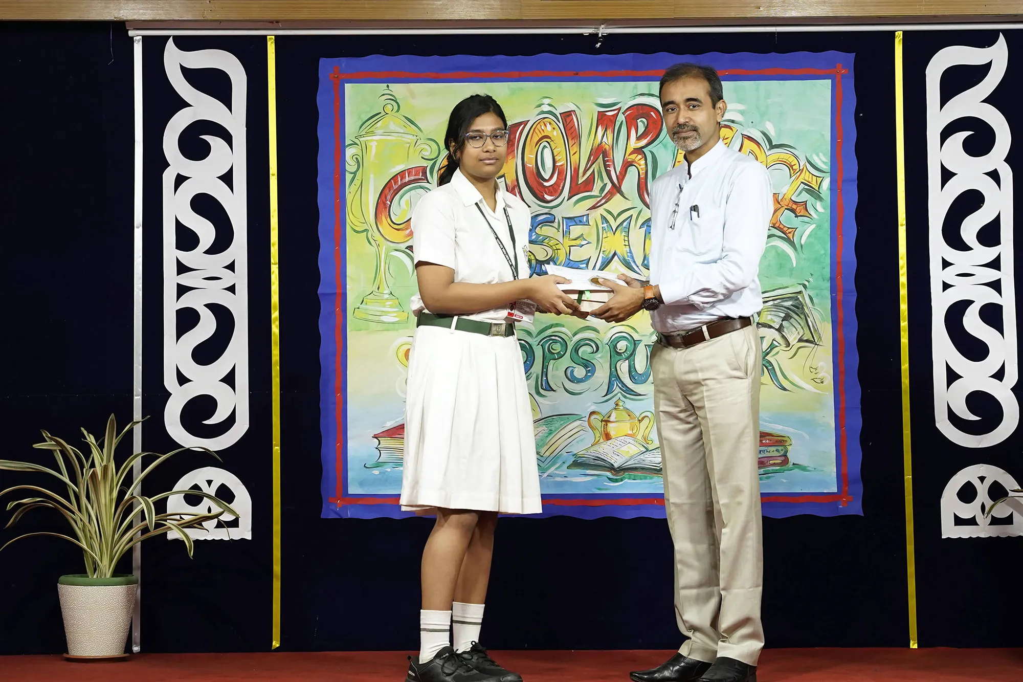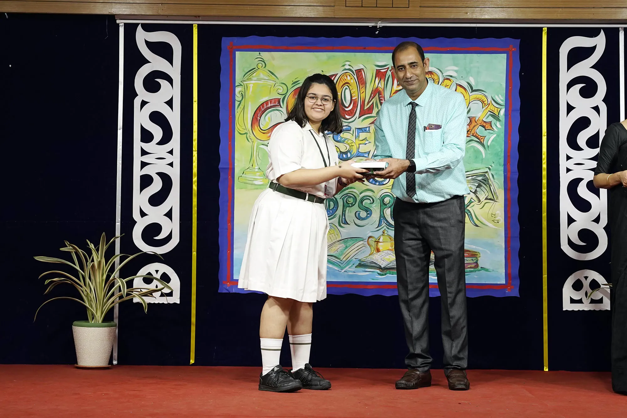 Outgoing President Of Social And Interact Club 2022 – 23 Of Dps Ruby Park Raina Das Receiving Her Certificate From Club Mentor Tapan Gooptu -