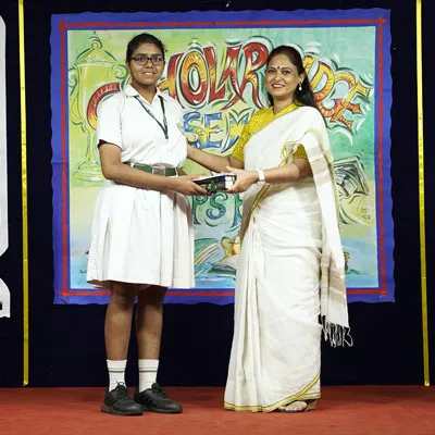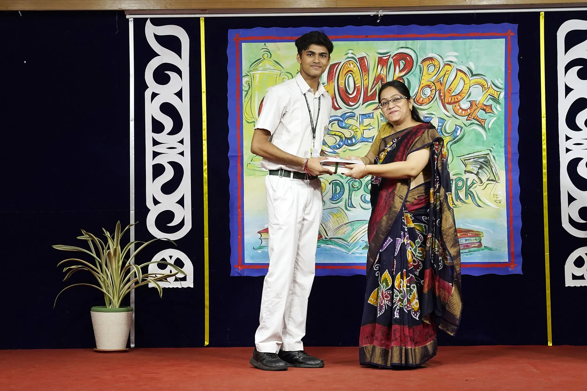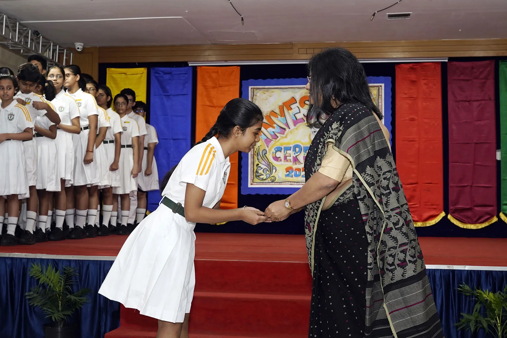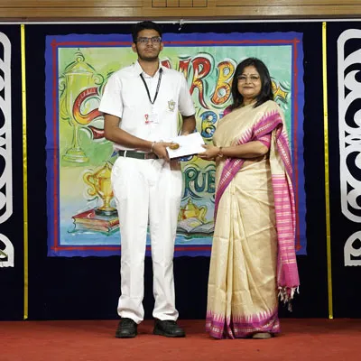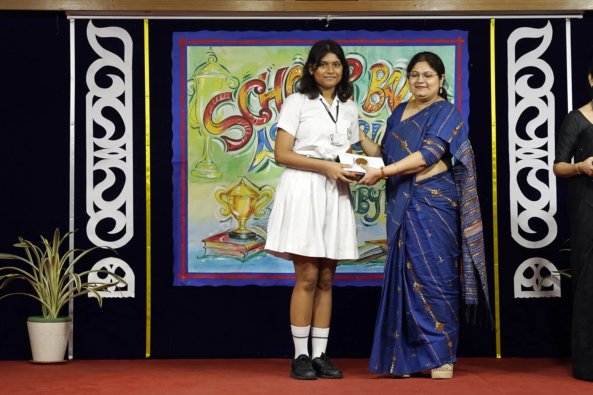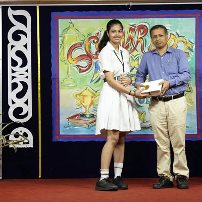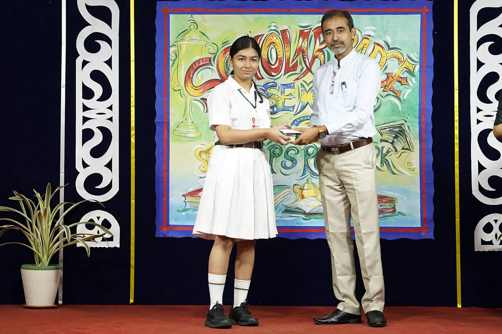 Outgoing President Of Social And Interact Club 2022 – 23 Of Dps Ruby Park Raina Das Receiving Her Certificate From Club Mentor Tapan Gooptu -
