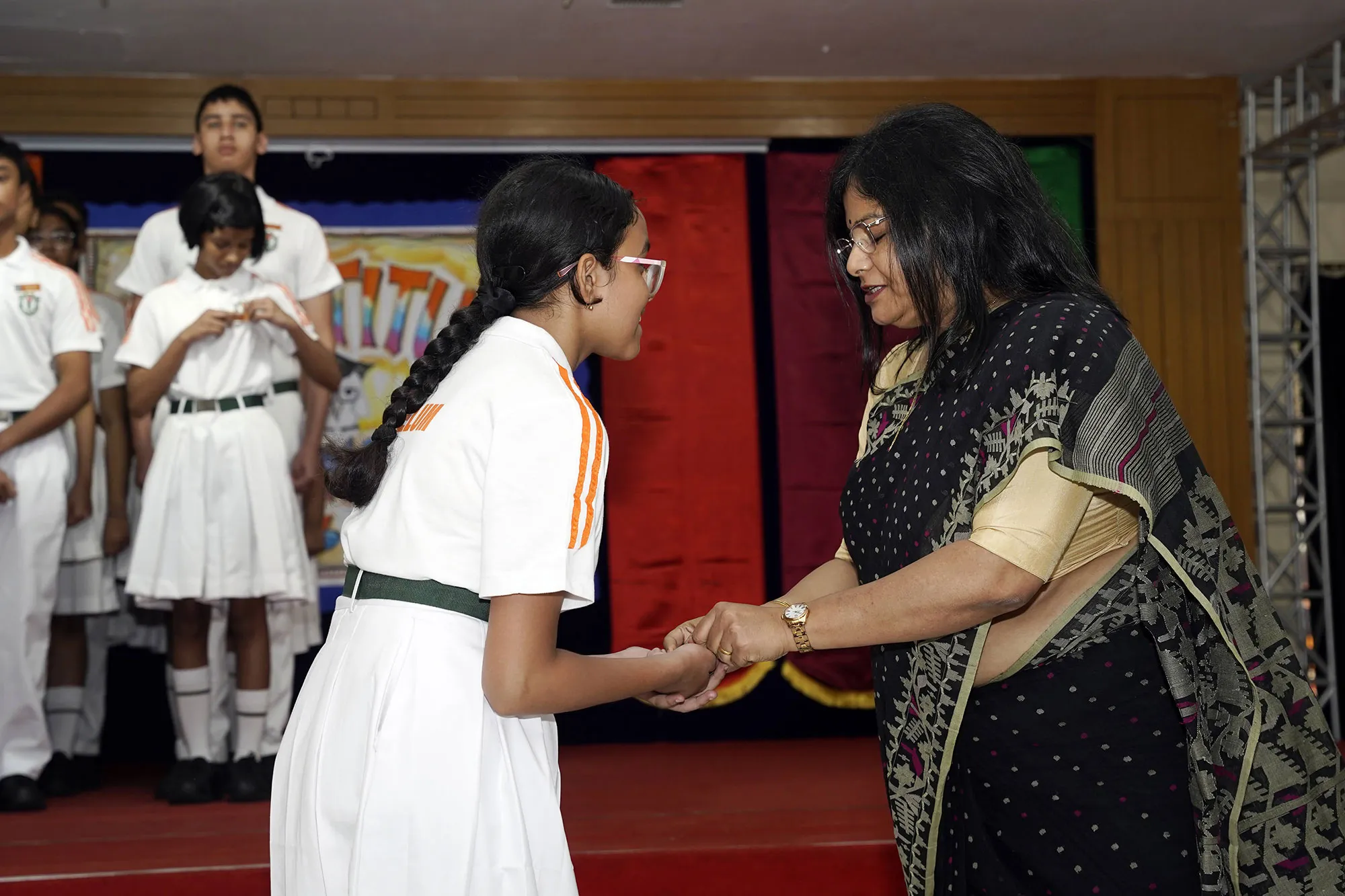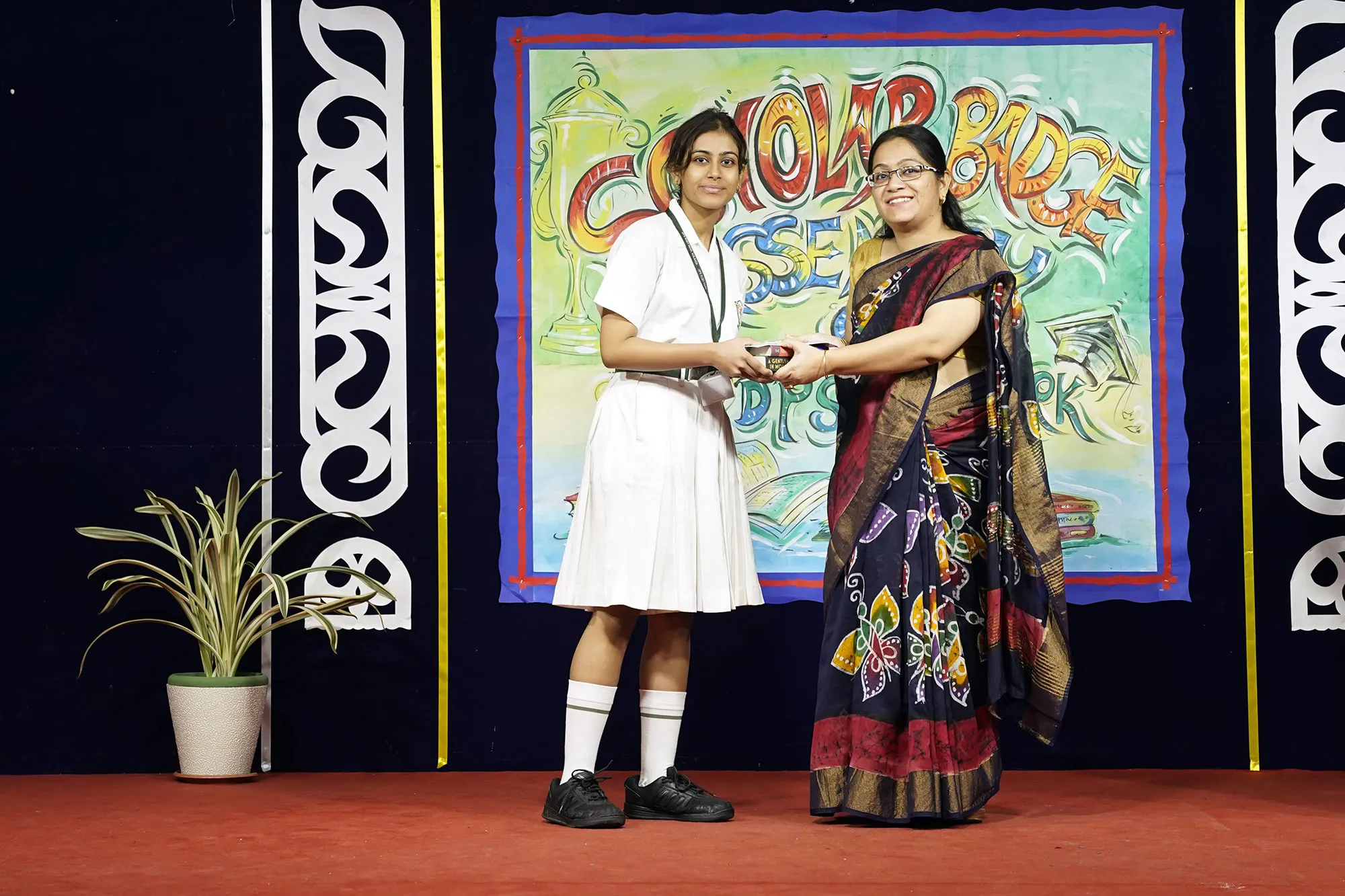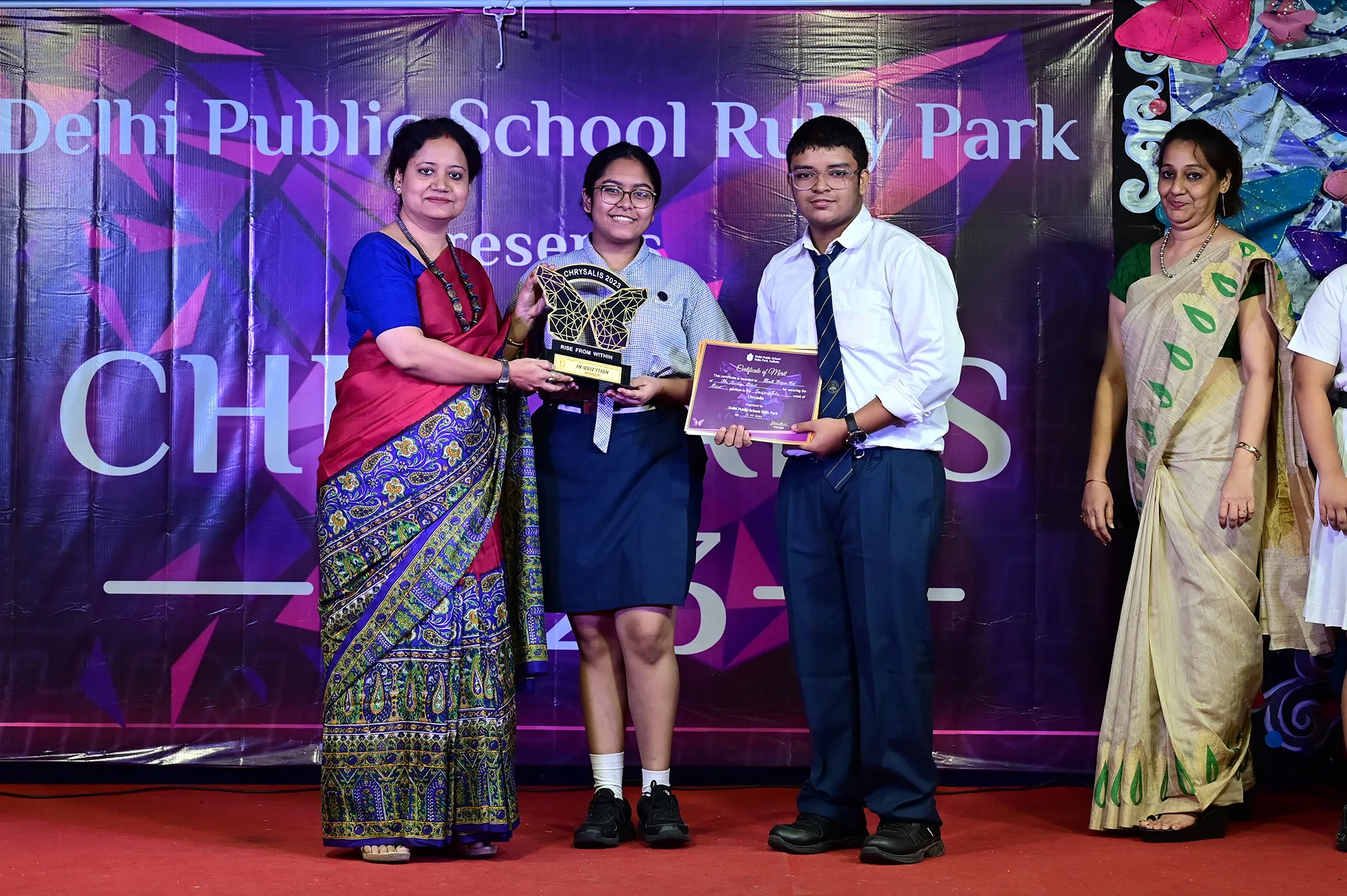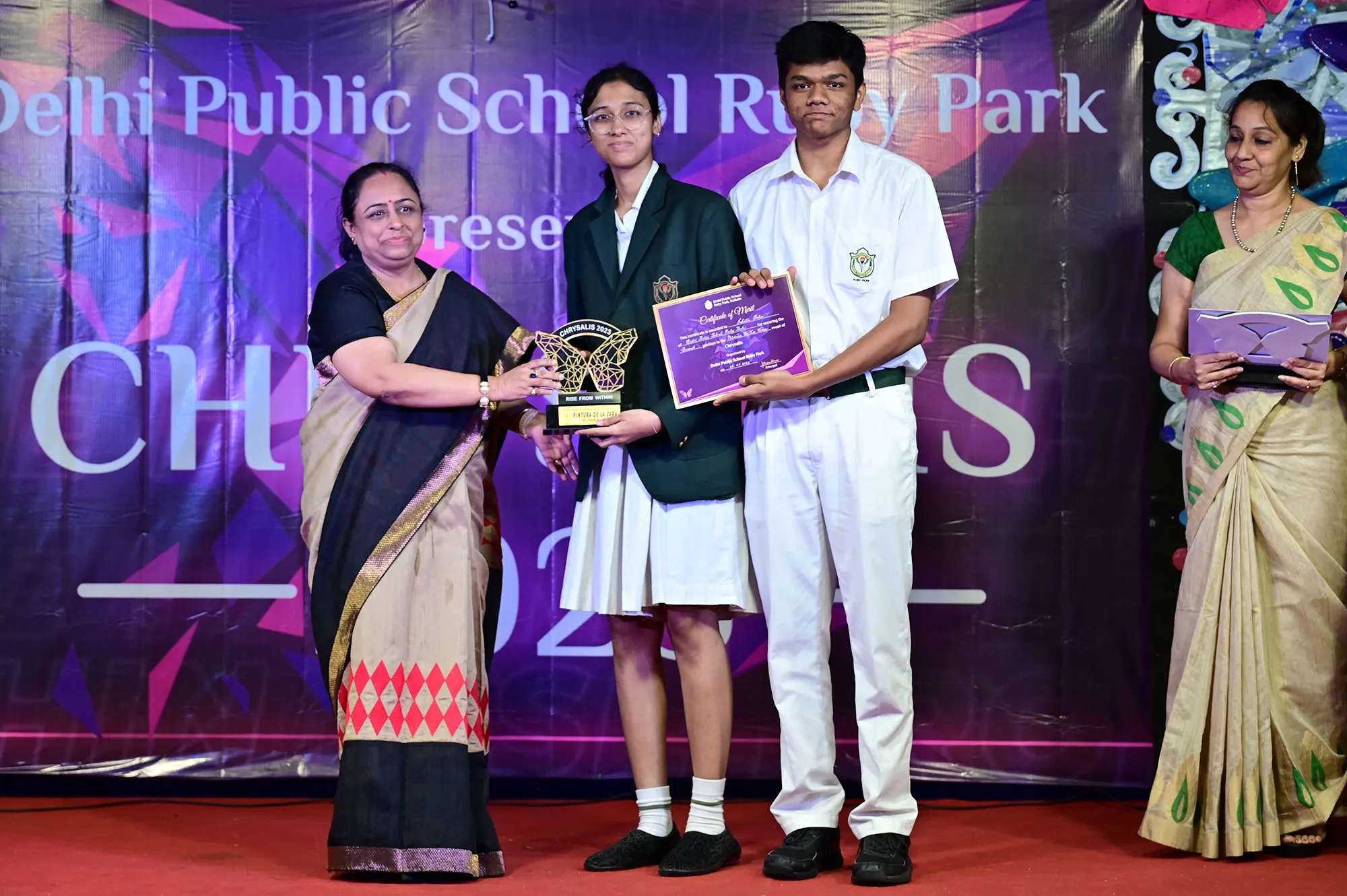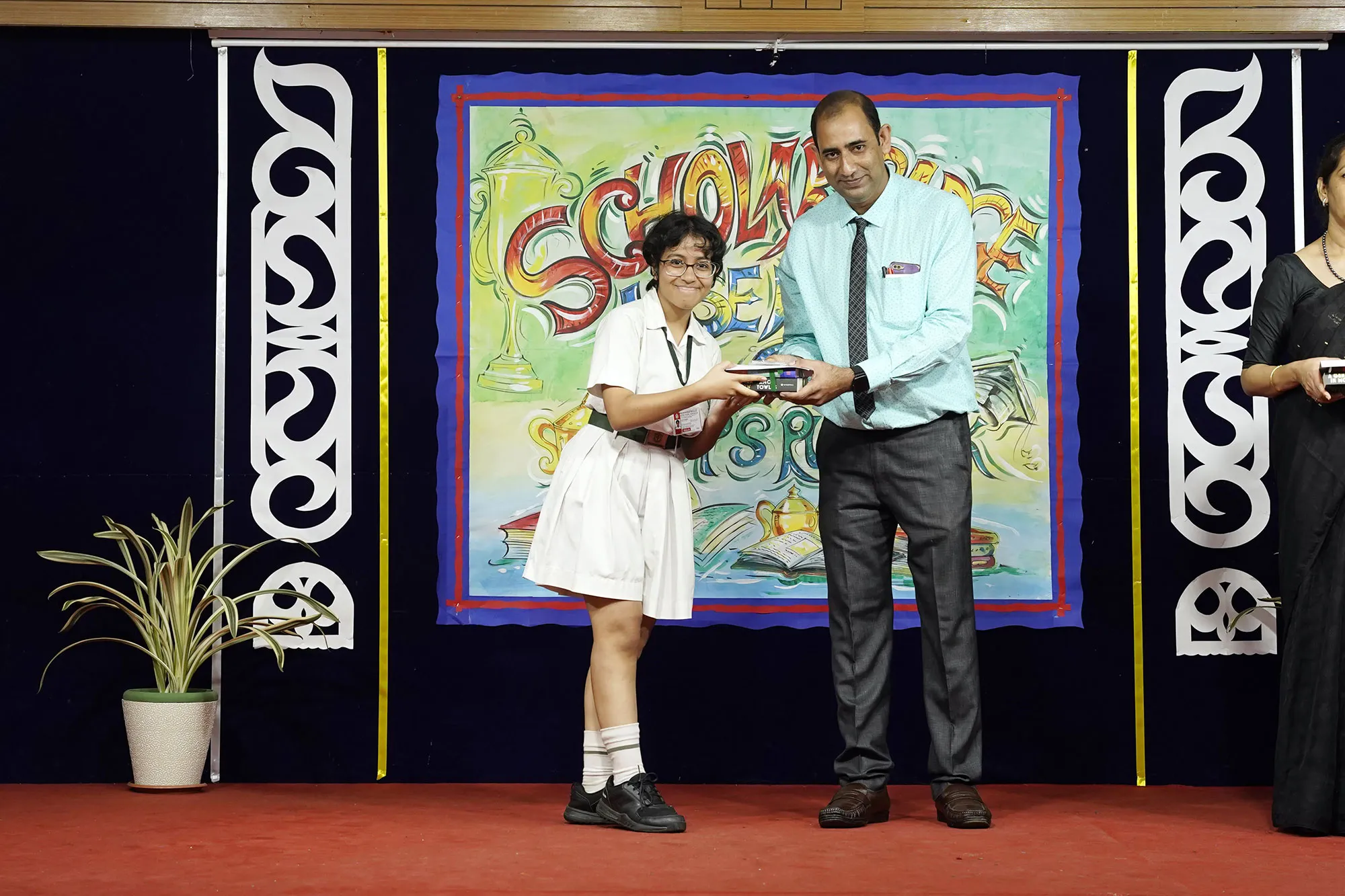 Outgoing President Of Social And Interact Club 2022 – 23 Of Dps Ruby Park Raina Das Receiving Her Certificate From Club Mentor Tapan Gooptu -