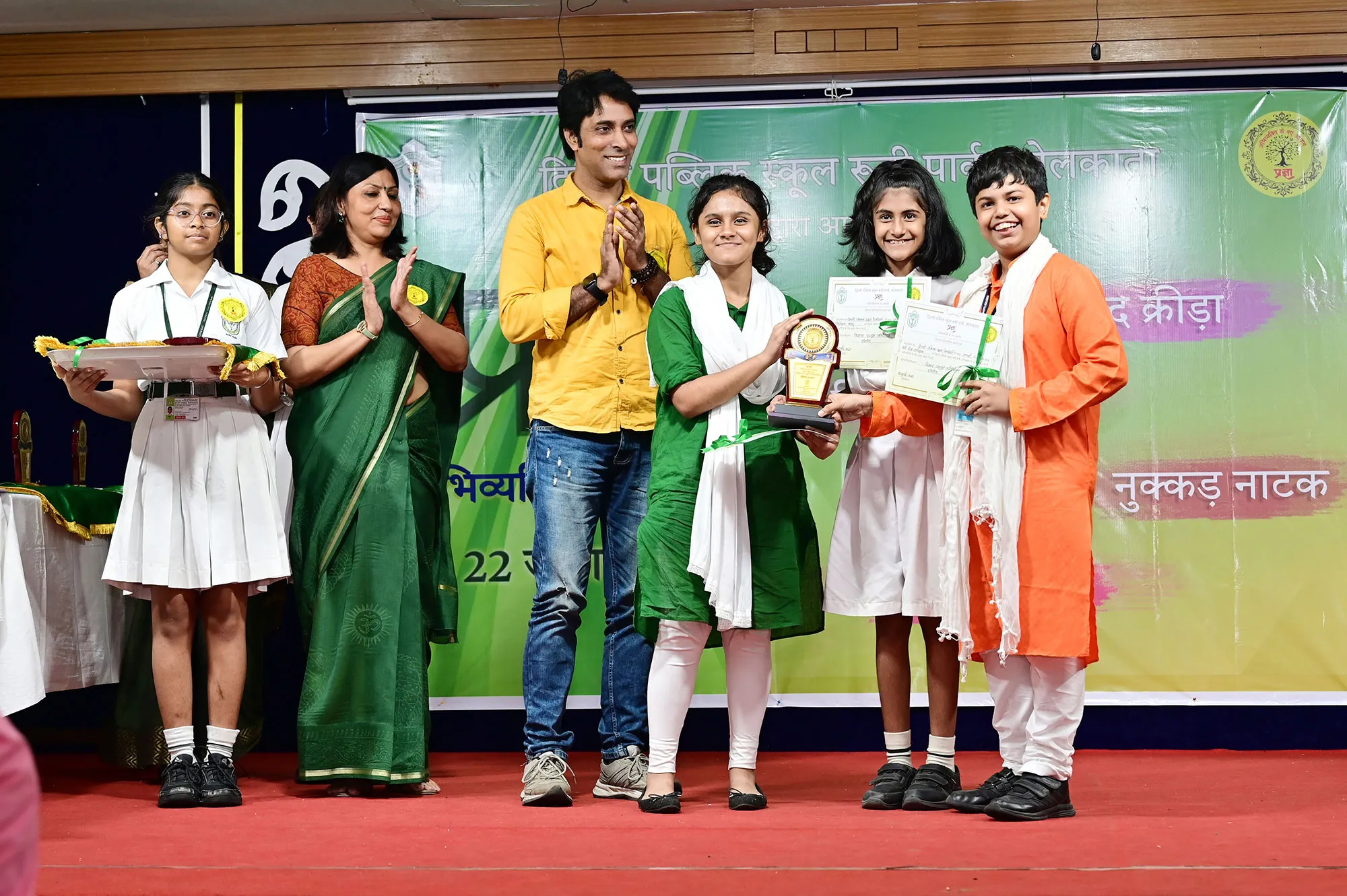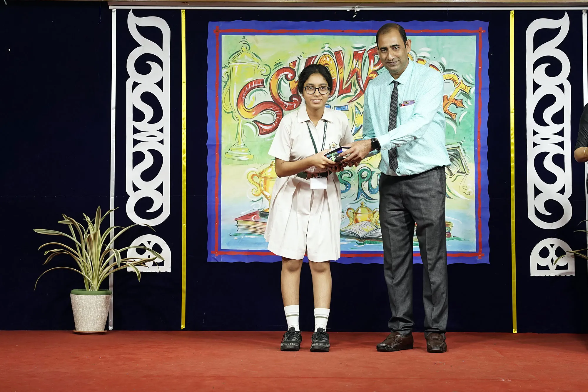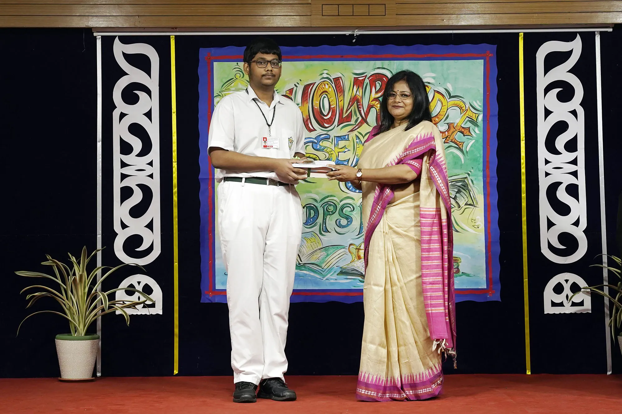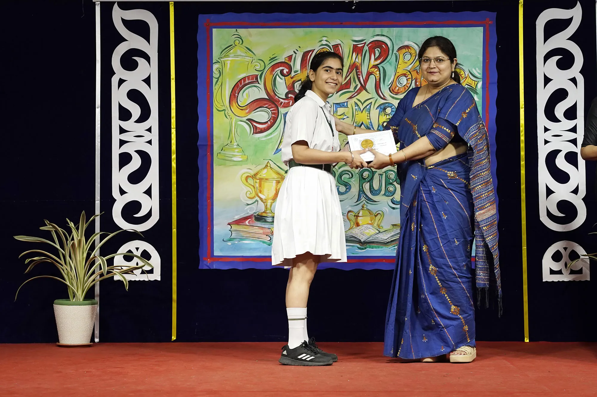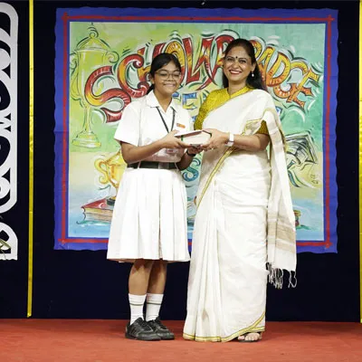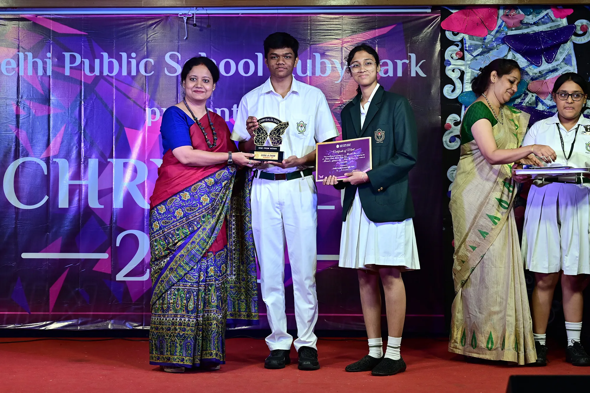 Outgoing President Of Social And Interact Club 2022 – 23 Of Dps Ruby Park Raina Das Receiving Her Certificate From Club Mentor Tapan Gooptu -