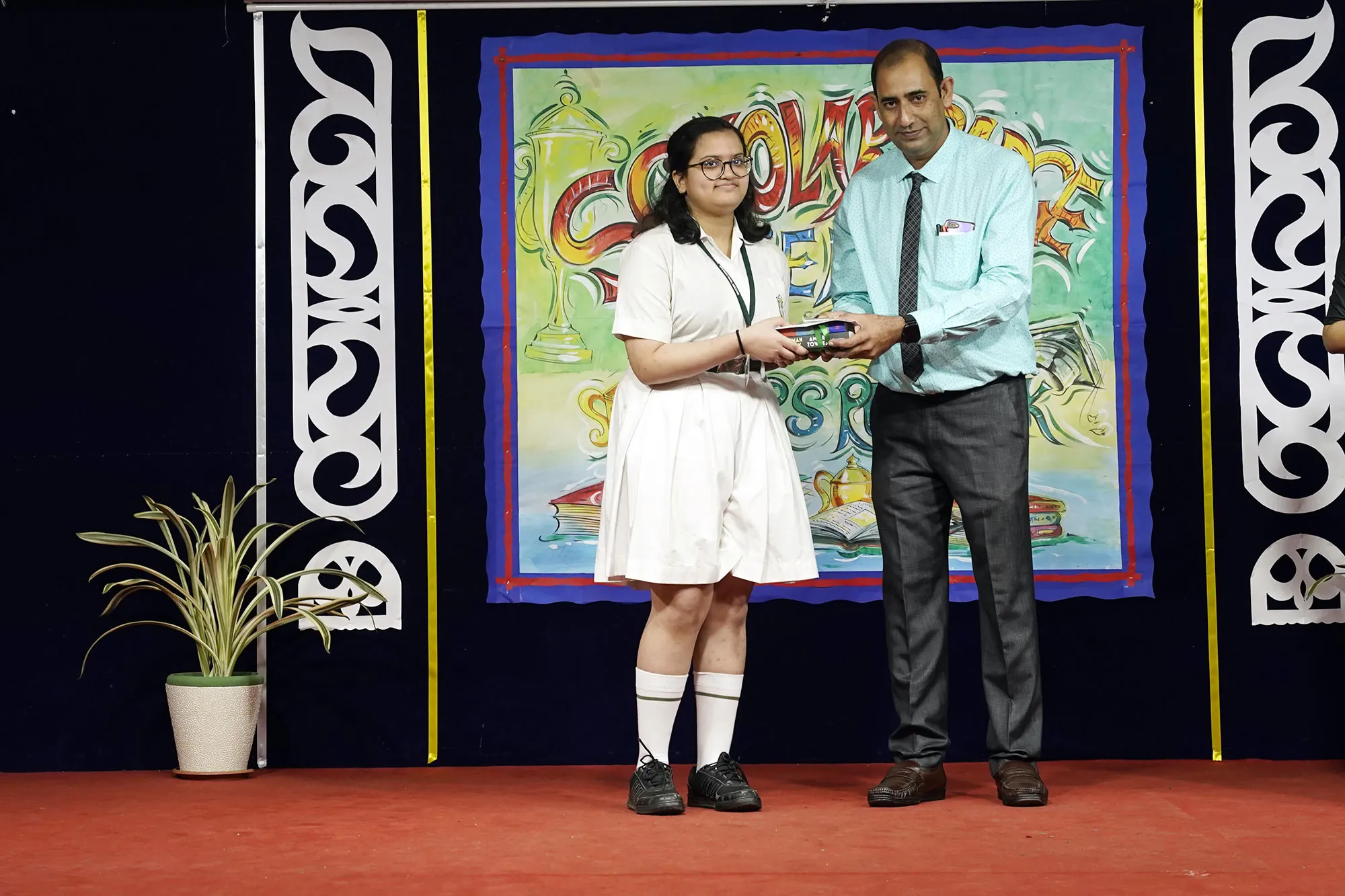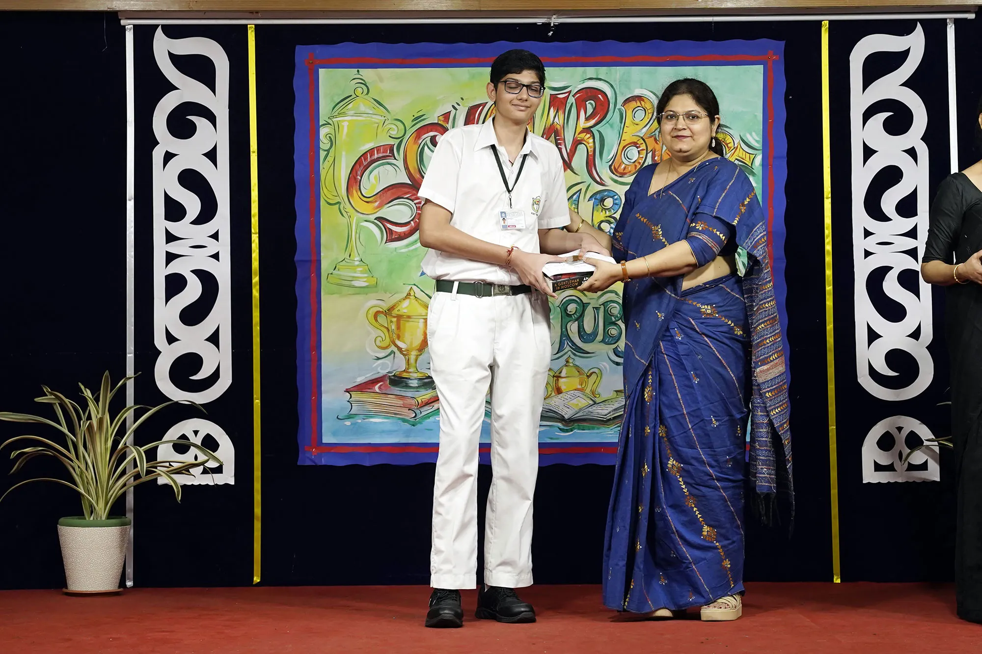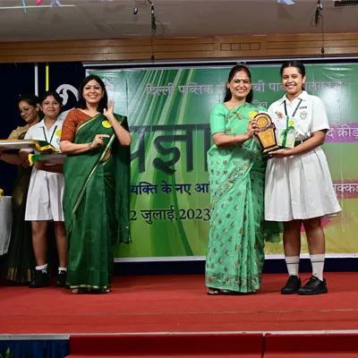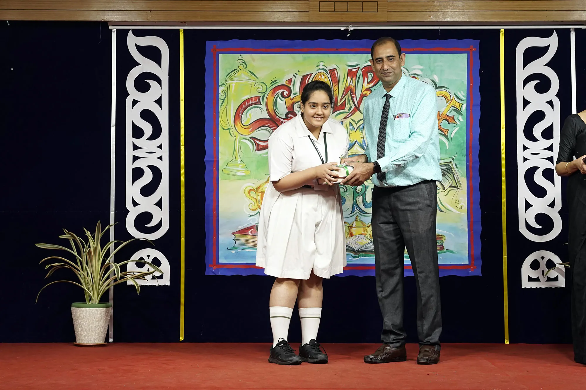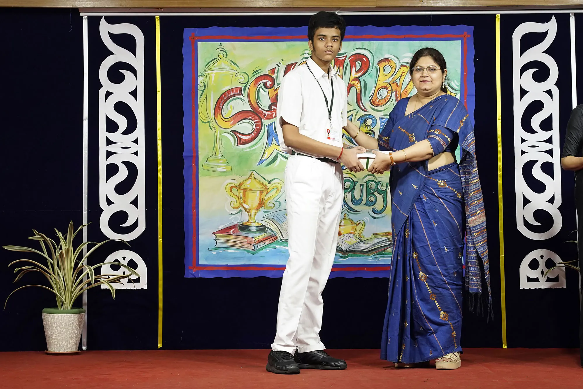 Outgoing President Of Social And Interact Club 2022 – 23 Of Dps Ruby Park Raina Das Receiving Her Certificate From Club Mentor Tapan Gooptu -