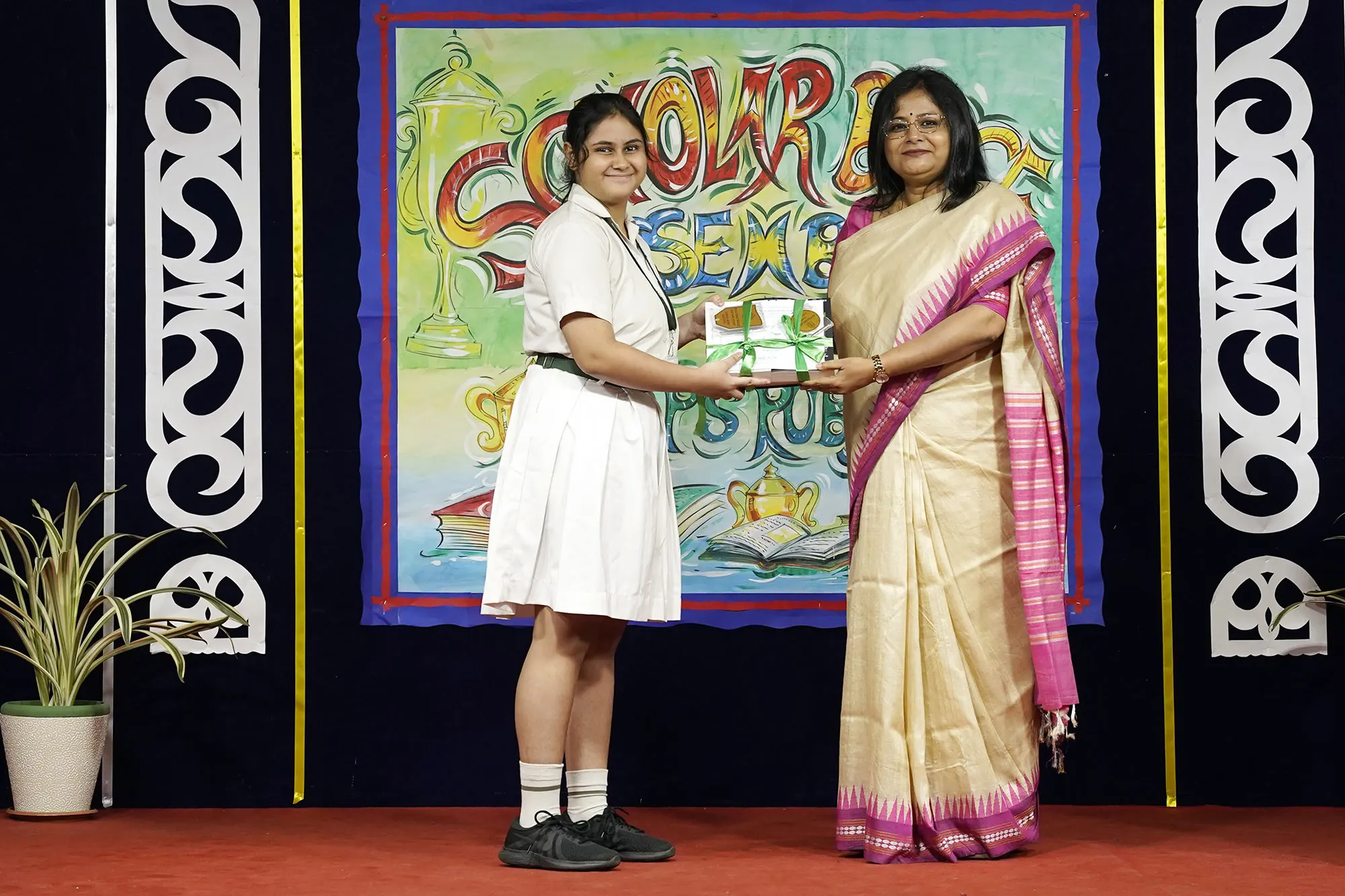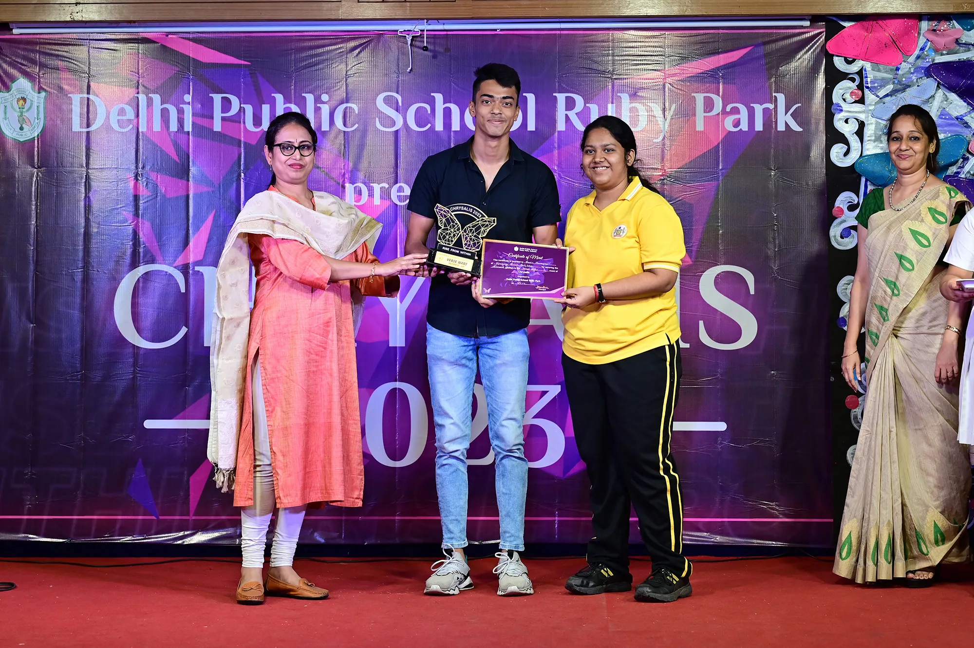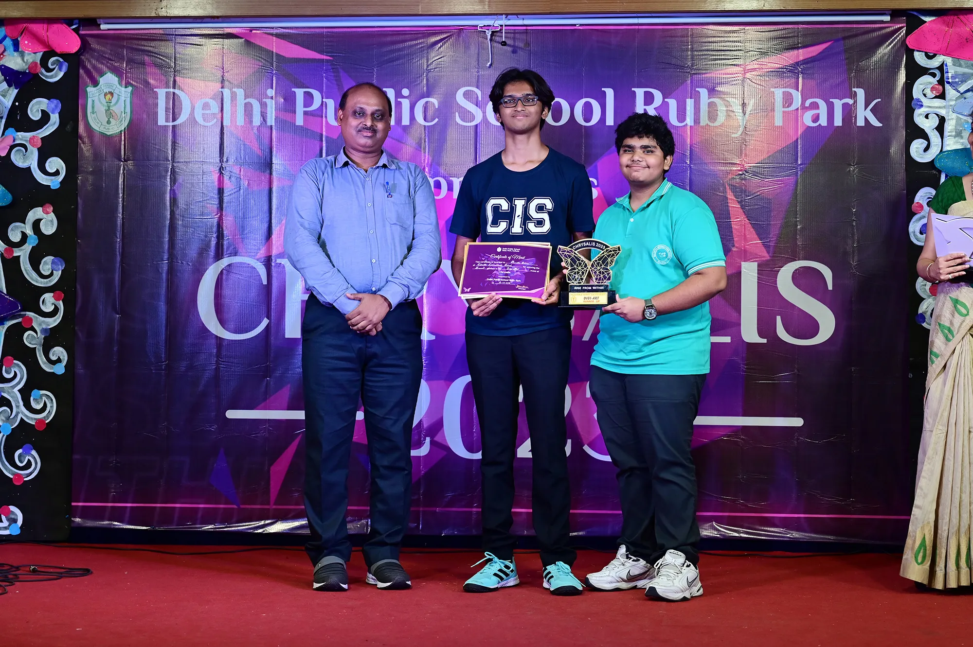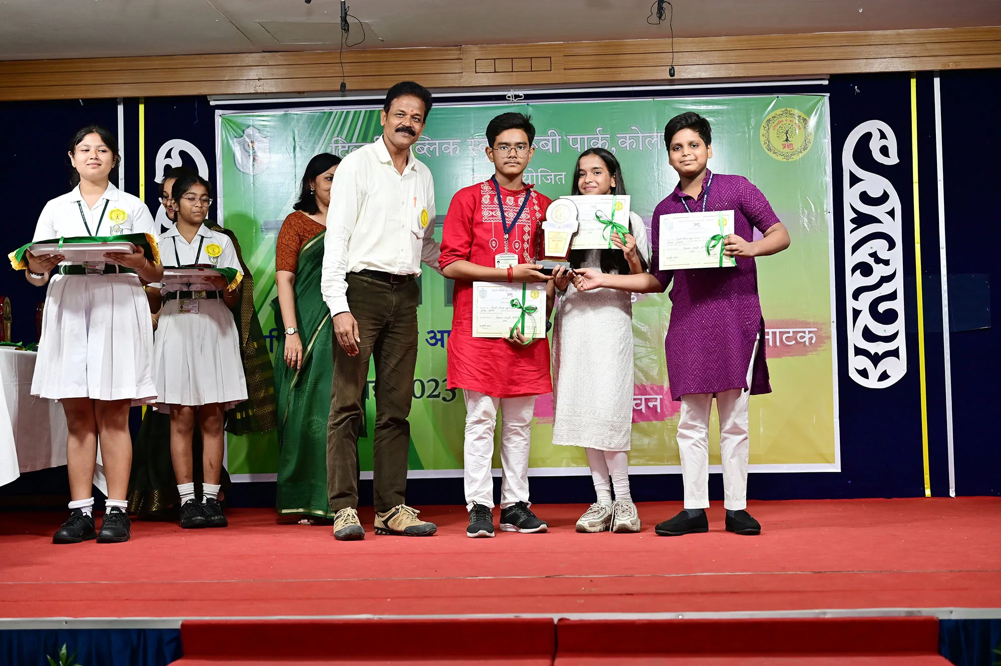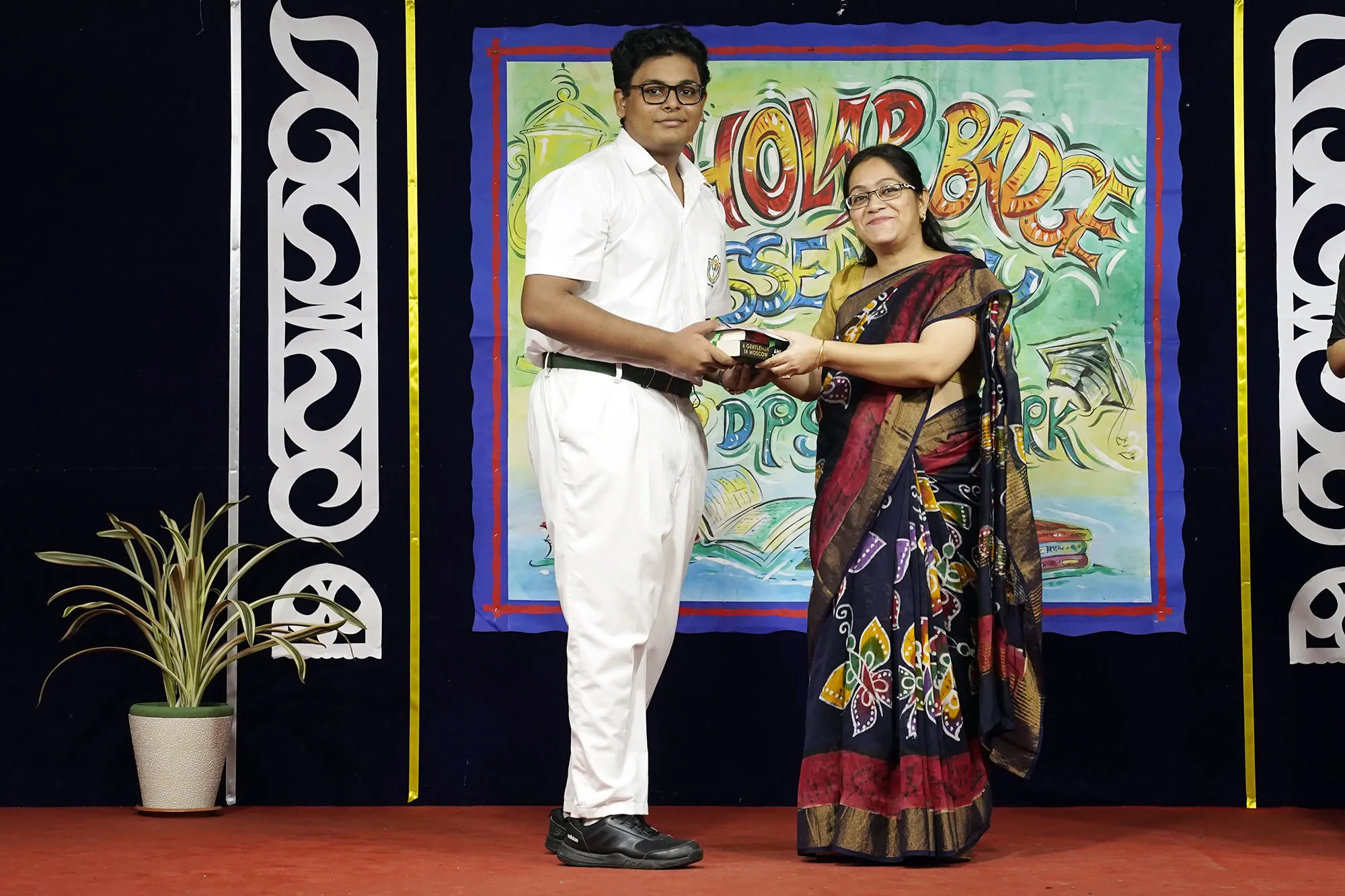 Outgoing President Of Social And Interact Club 2022 – 23 Of Dps Ruby Park Raina Das Receiving Her Certificate From Club Mentor Tapan Gooptu -