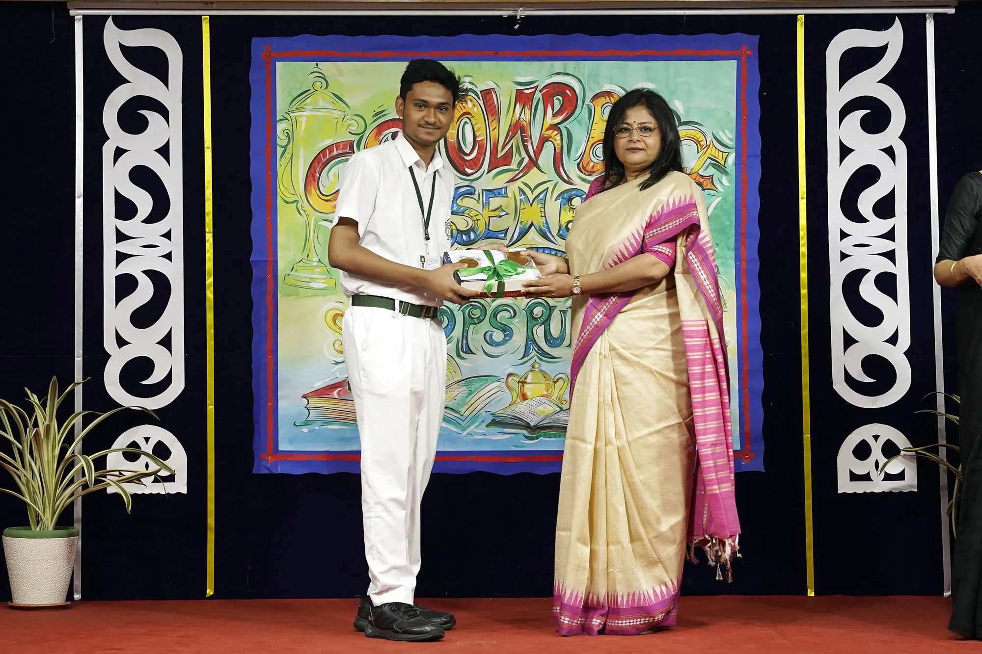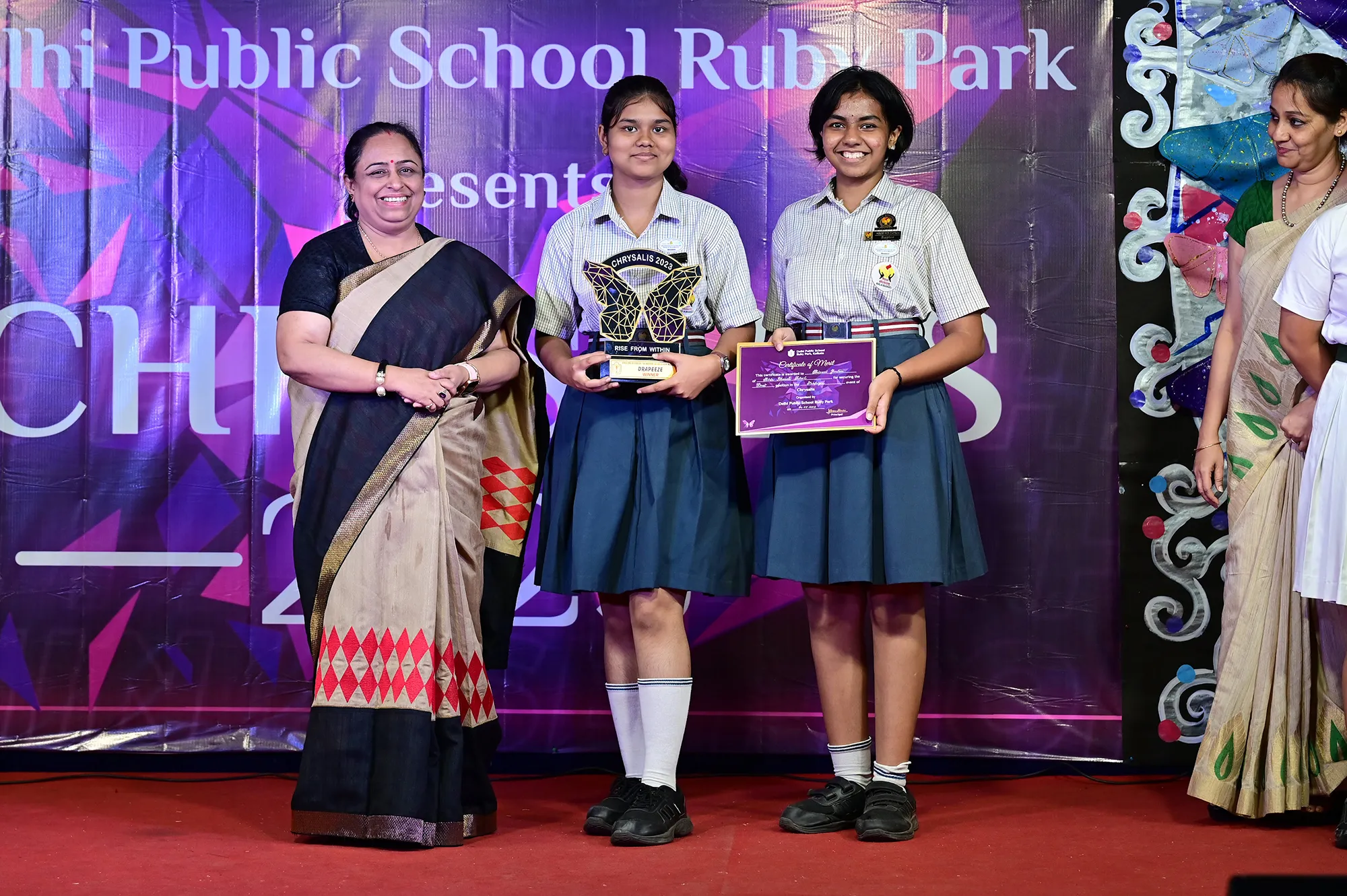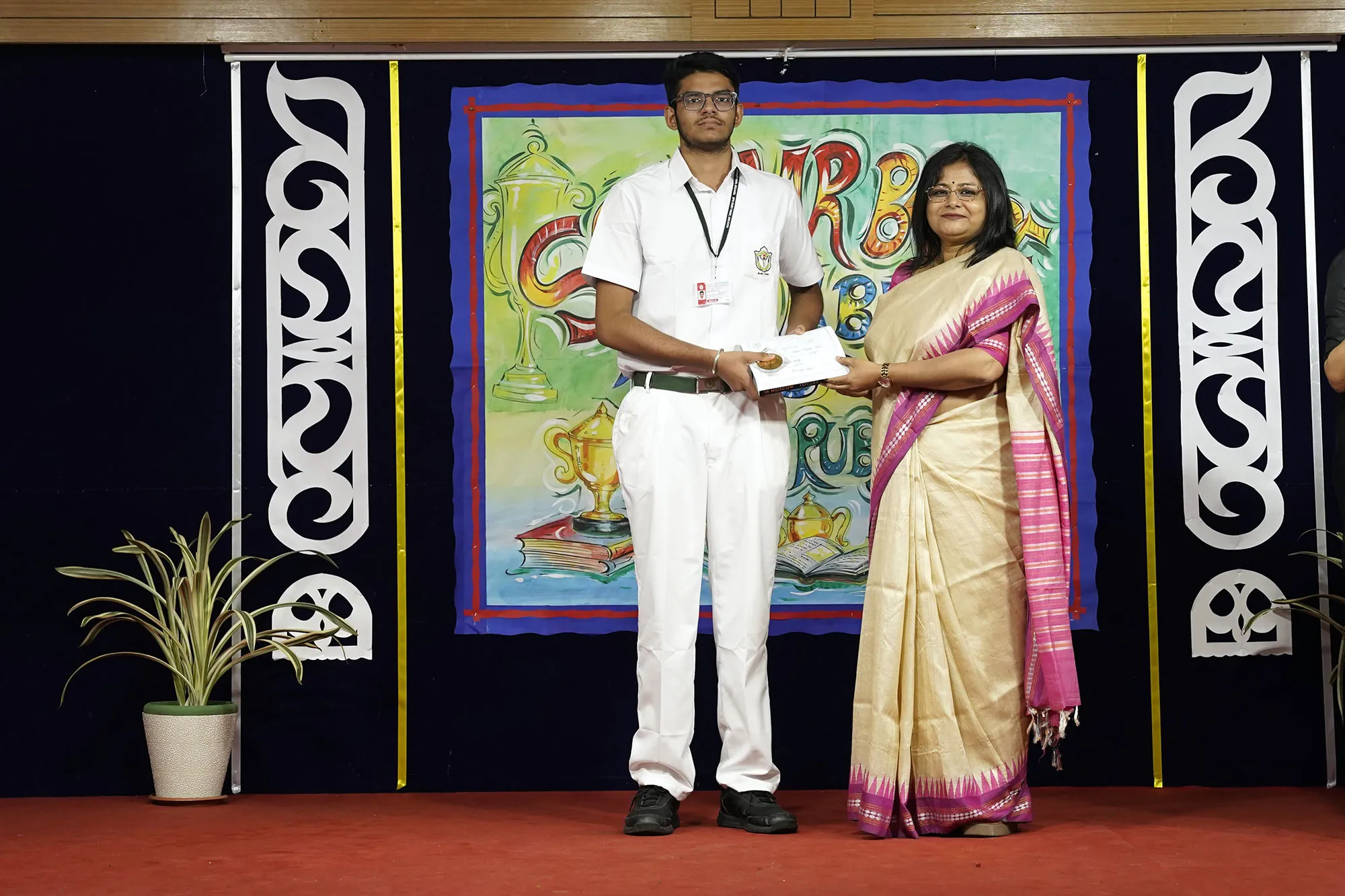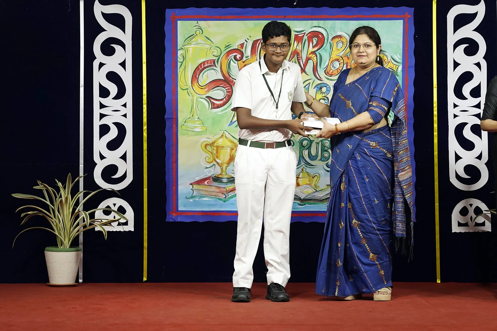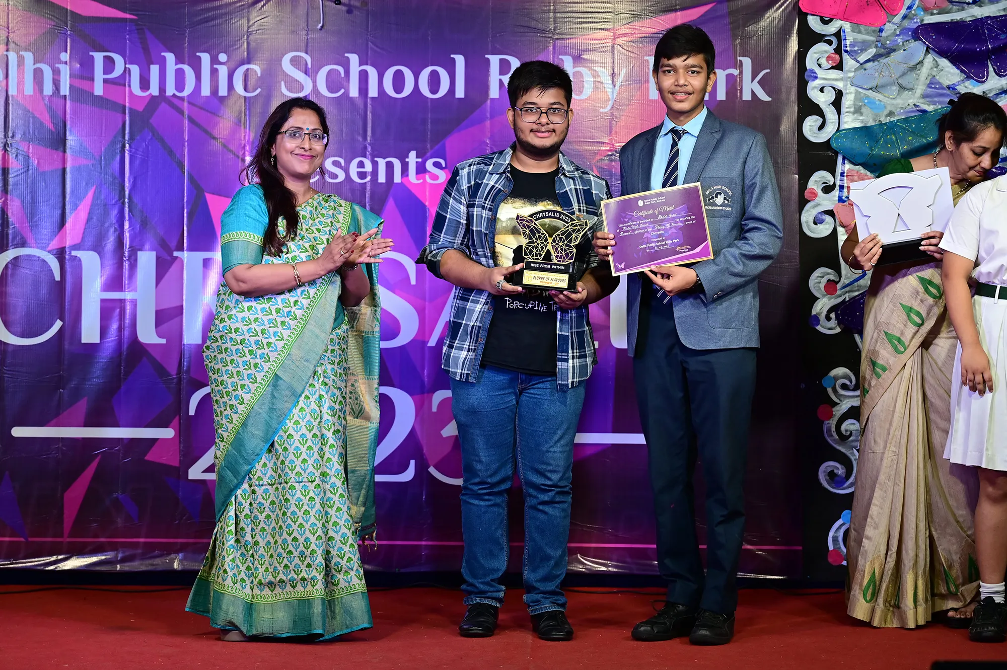 Outgoing President Of Social And Interact Club 2022 – 23 Of Dps Ruby Park Raina Das Receiving Her Certificate From Club Mentor Tapan Gooptu -