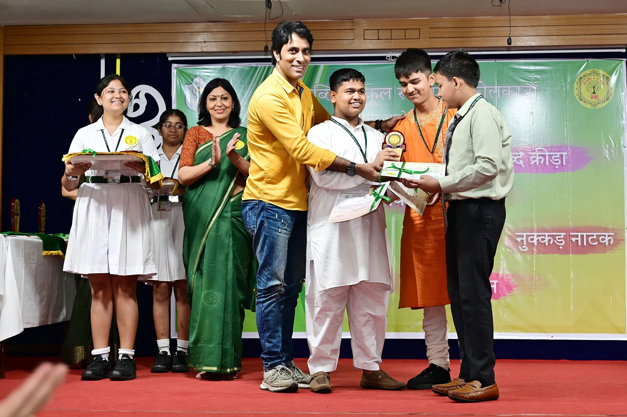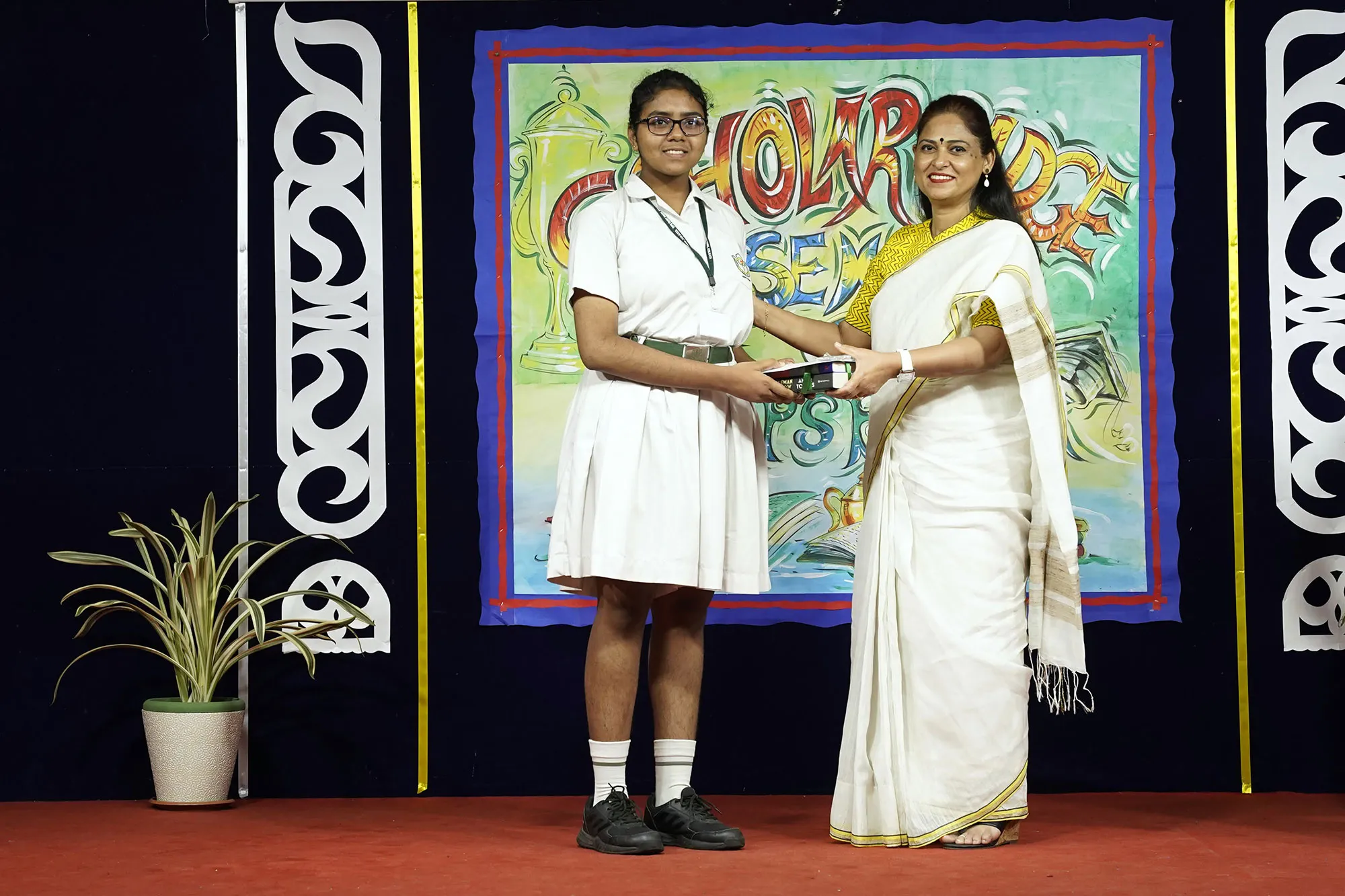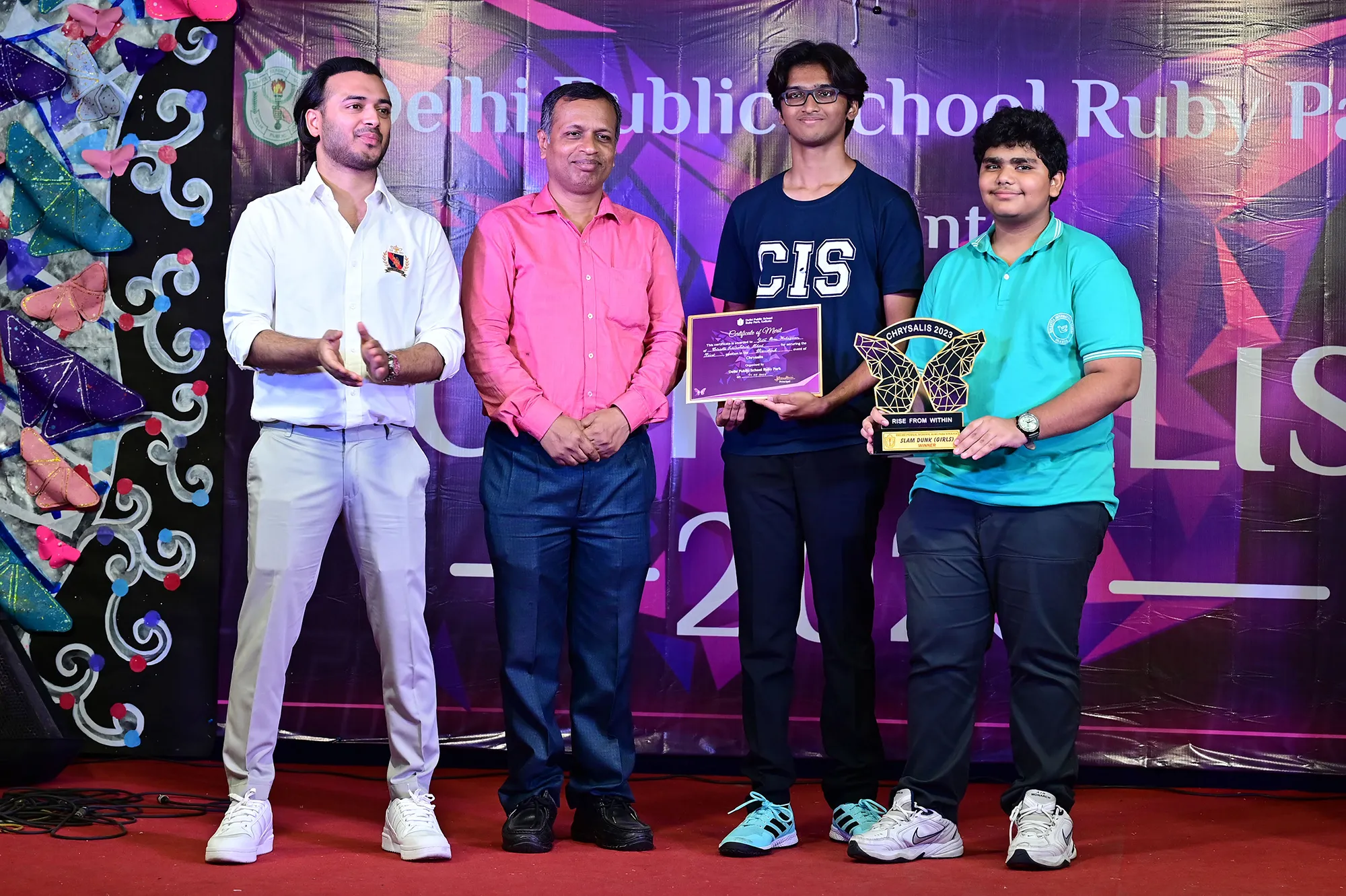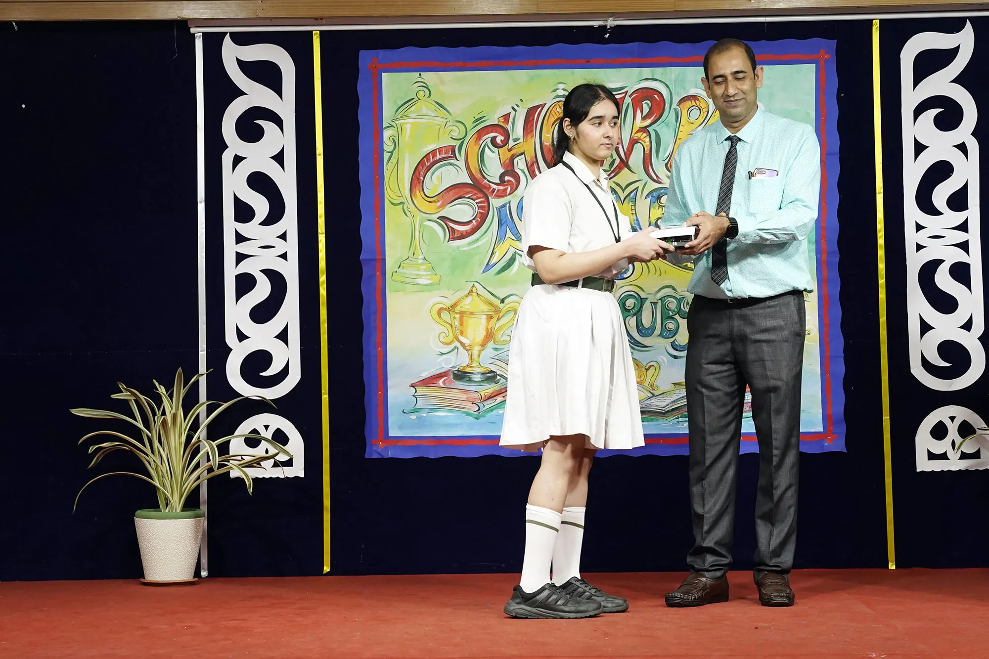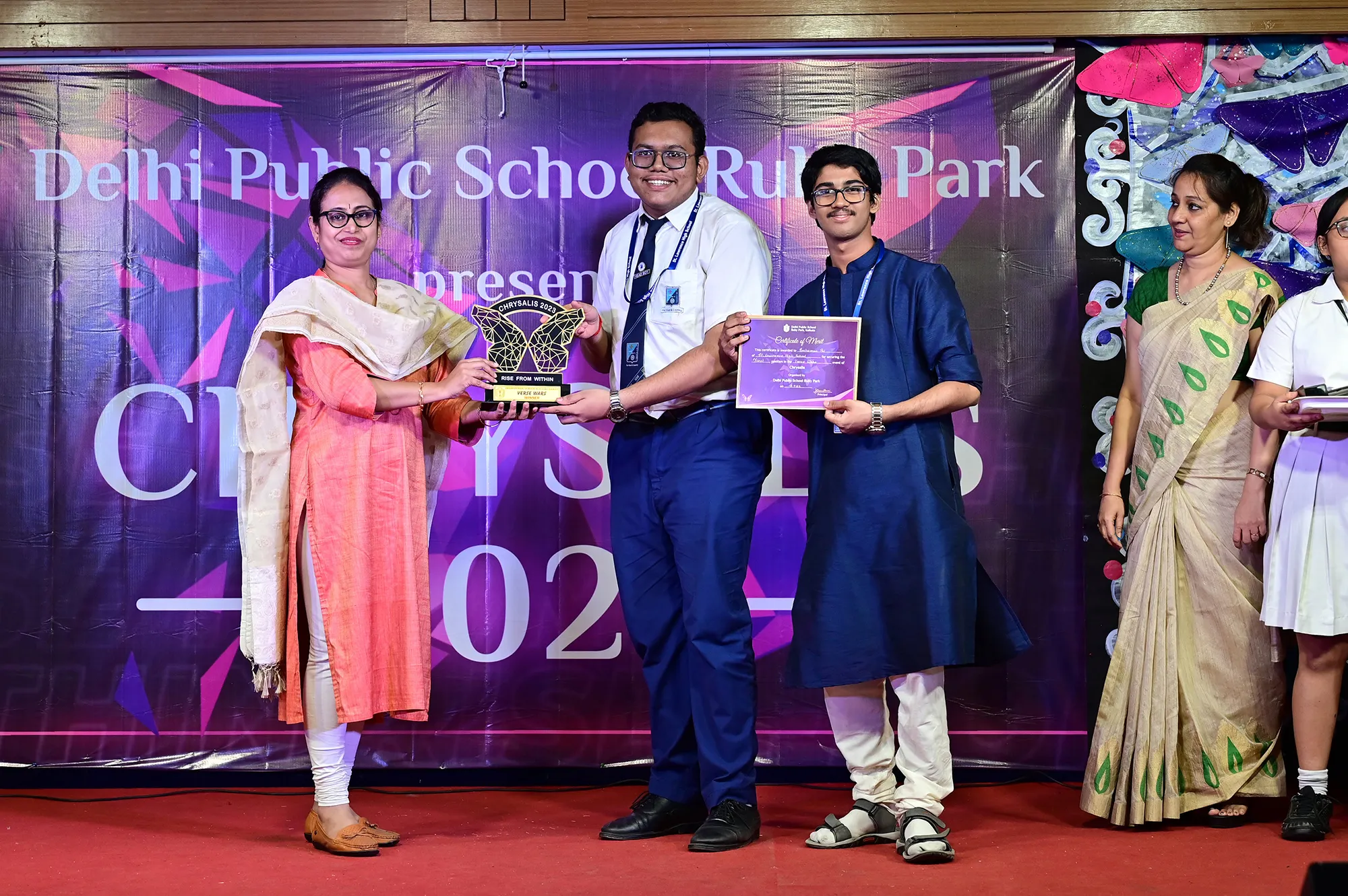 Outgoing President Of Social And Interact Club 2022 – 23 Of Dps Ruby Park Raina Das Receiving Her Certificate From Club Mentor Tapan Gooptu -