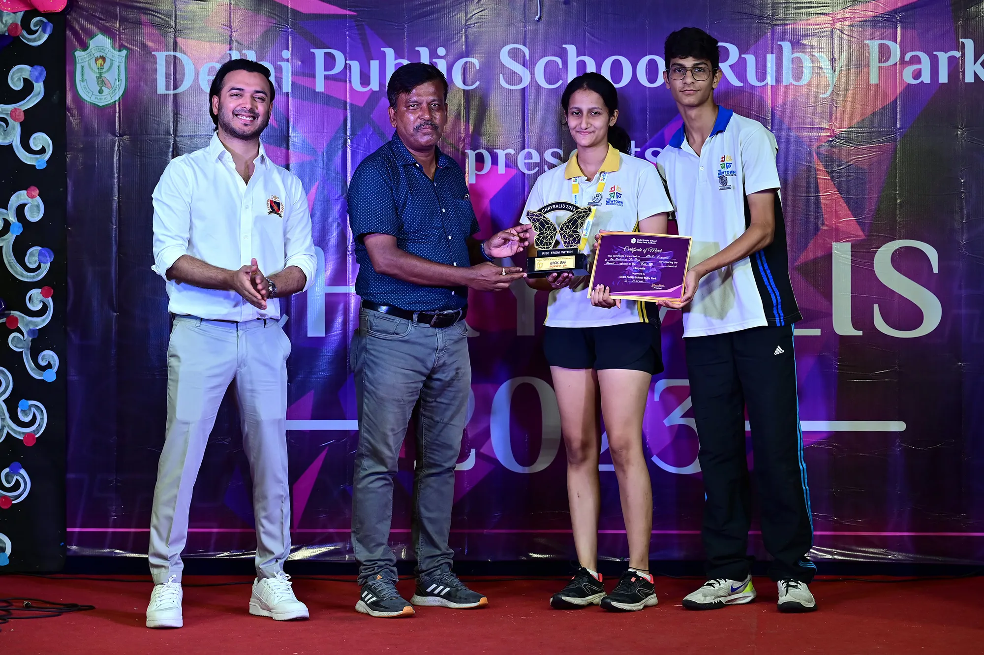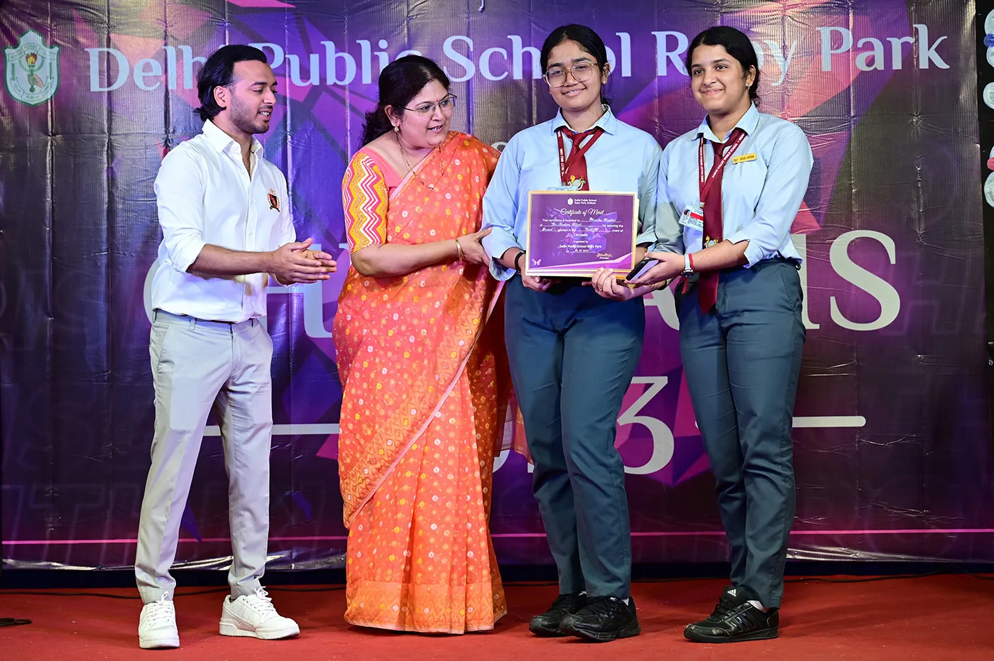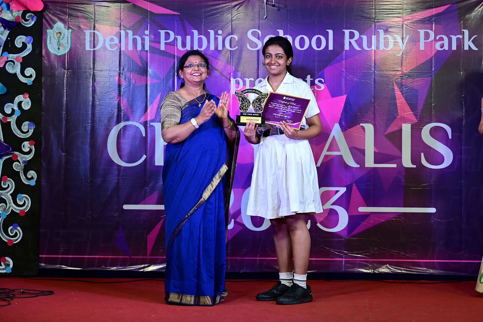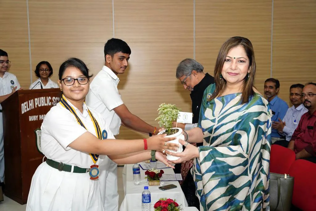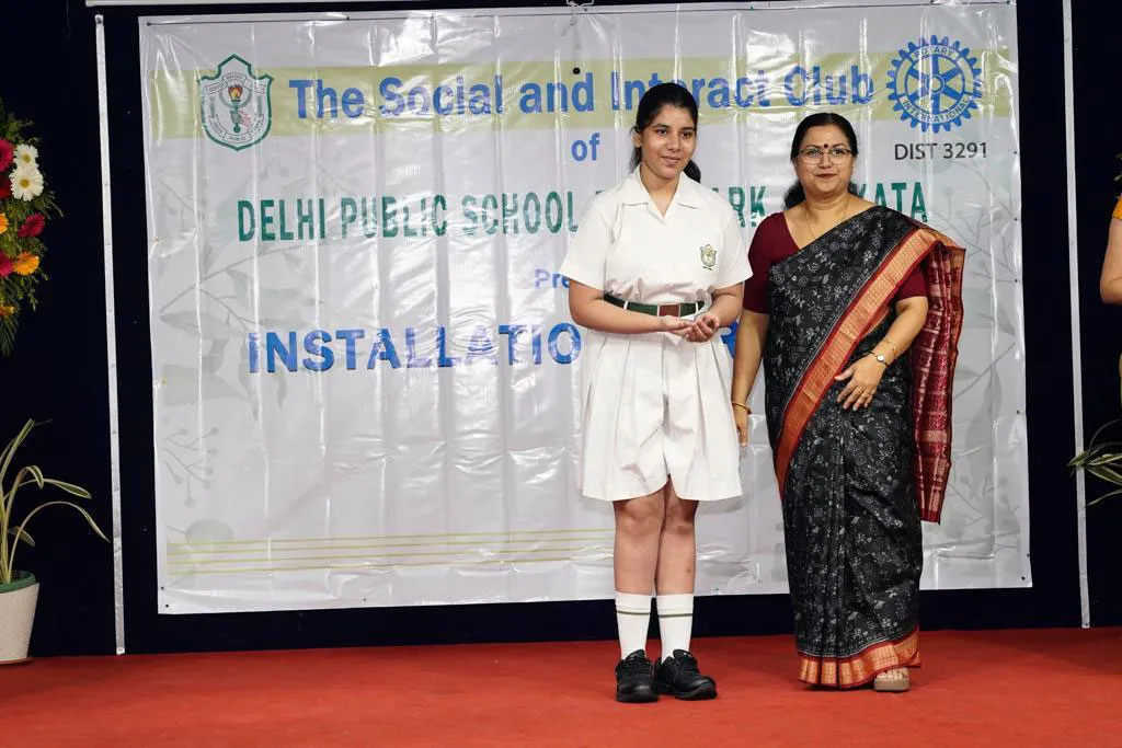 New Elected President Of The Social And Interact Club Koushani Gupta Of Dps Ruby Park 2023 – 24 Receiving Her Certificate From Club Mentor Tapan Gooptu -