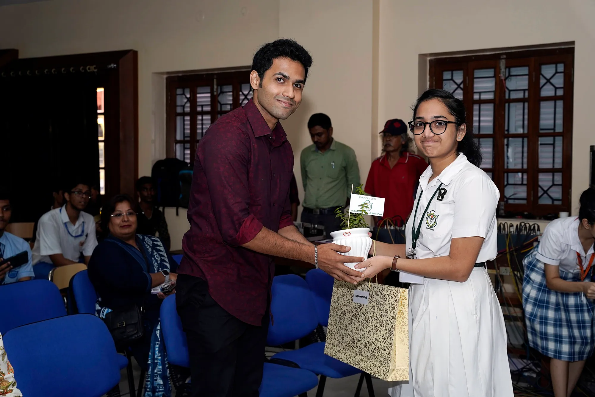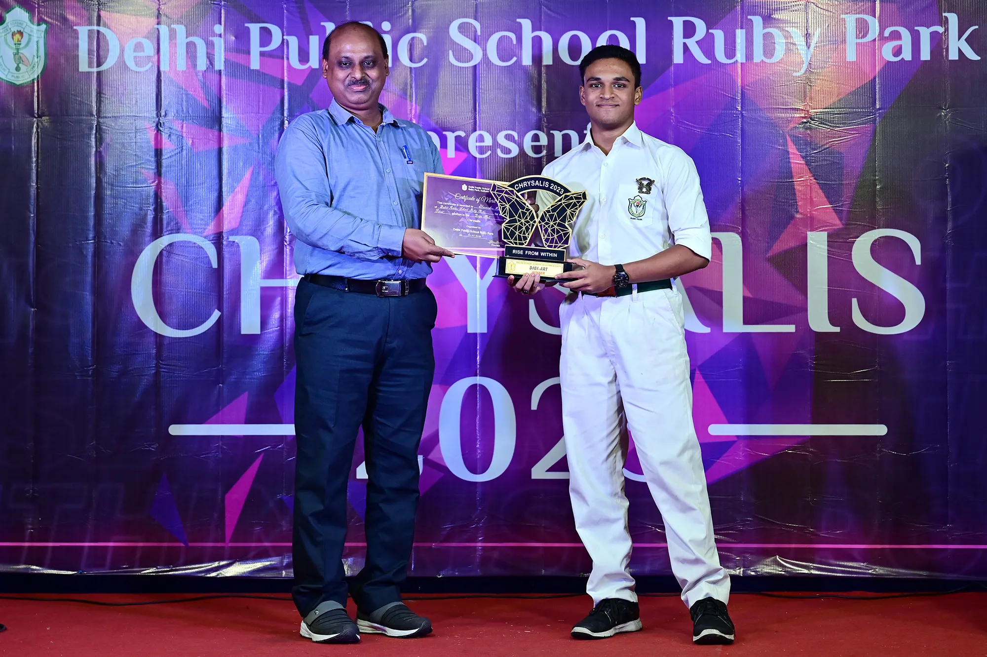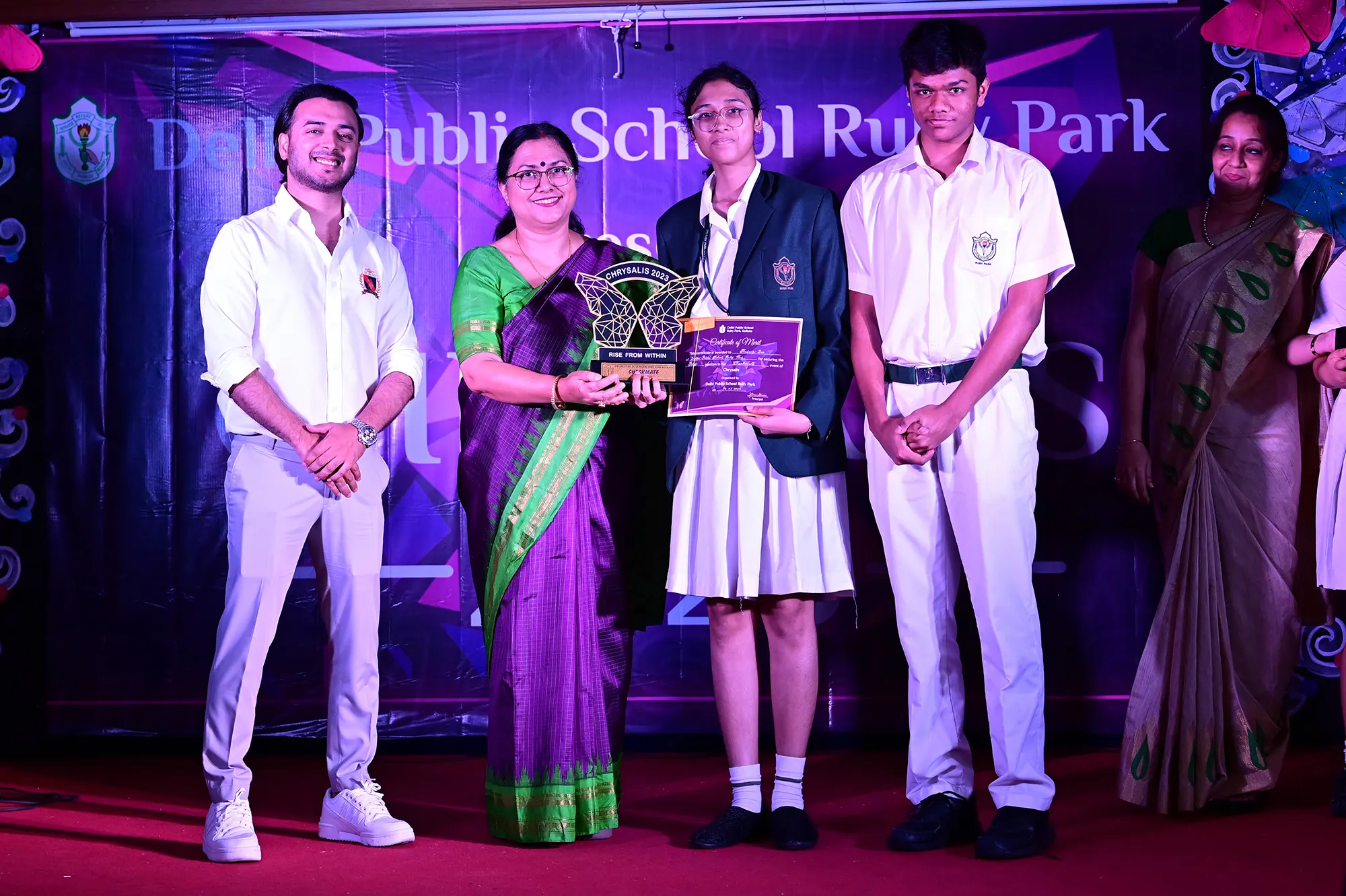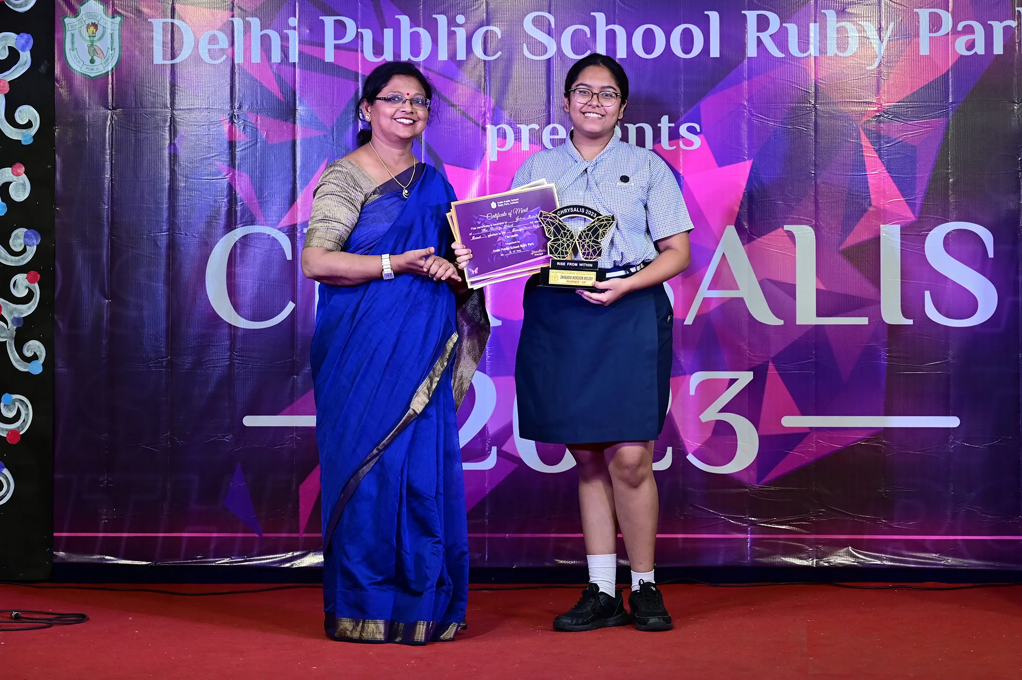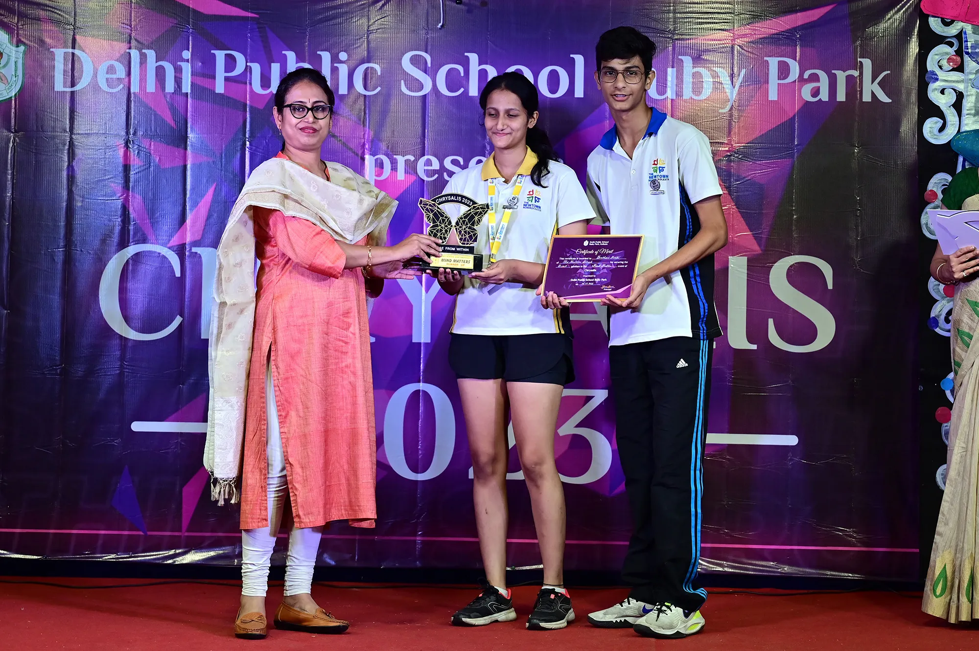 New Elected President Of The Social And Interact Club Koushani Gupta Of Dps Ruby Park 2023 – 24 Receiving Her Certificate From Club Mentor Tapan Gooptu -
