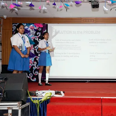 Outgoing President Raina Das Presenting The Ppt Higlighting The Work Done By The Interact Club In 2022-23 -