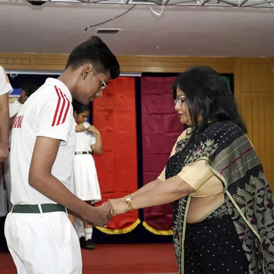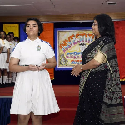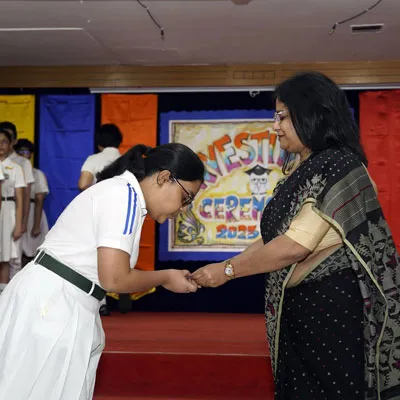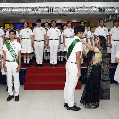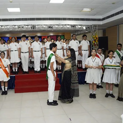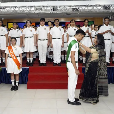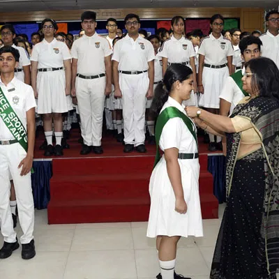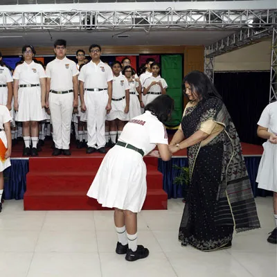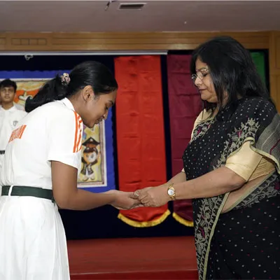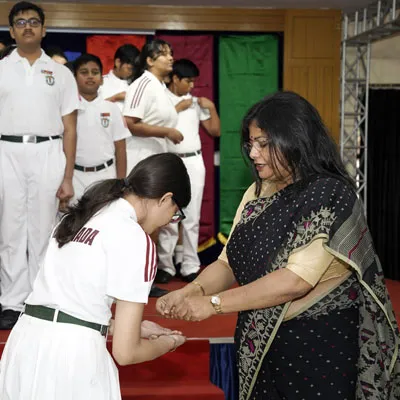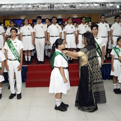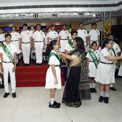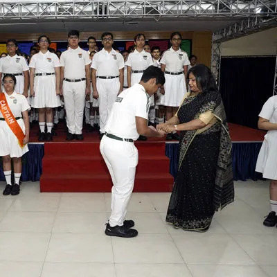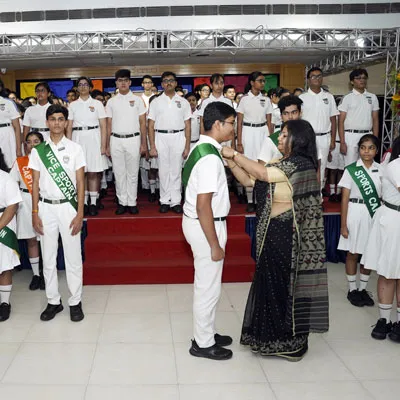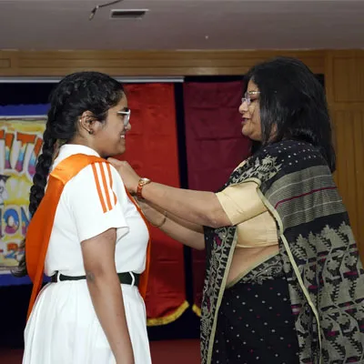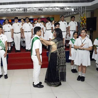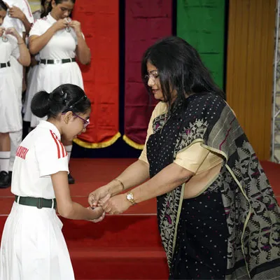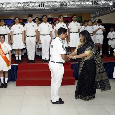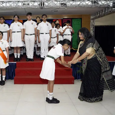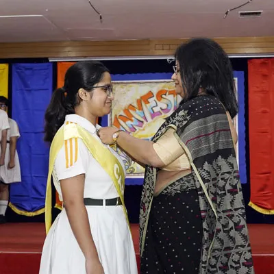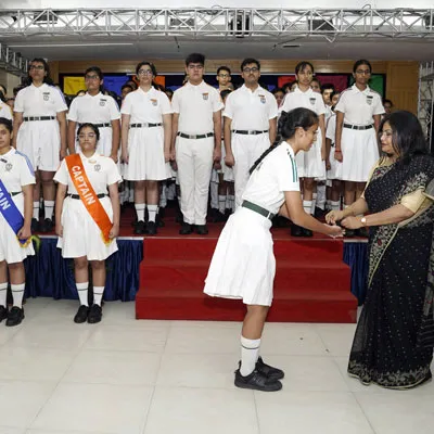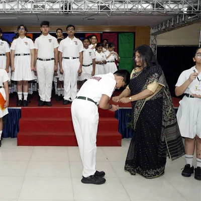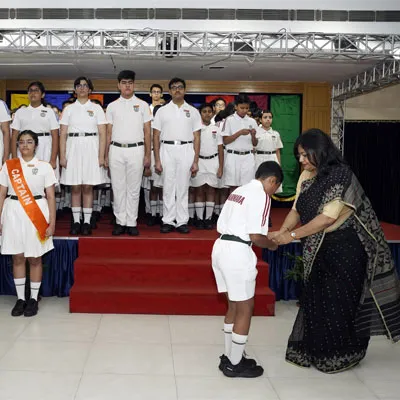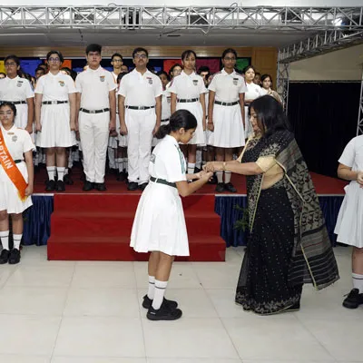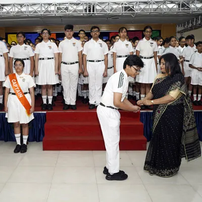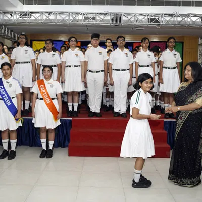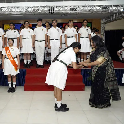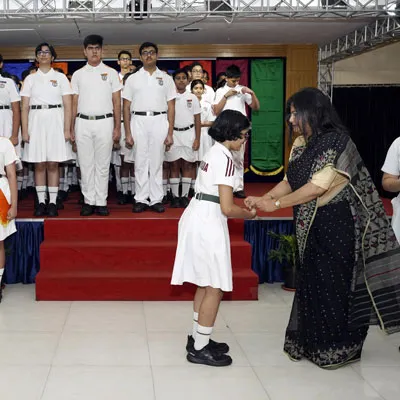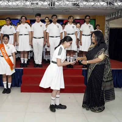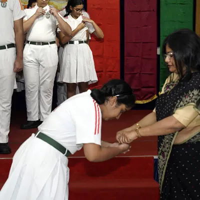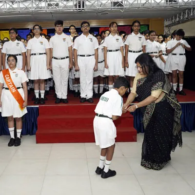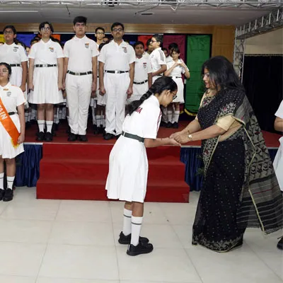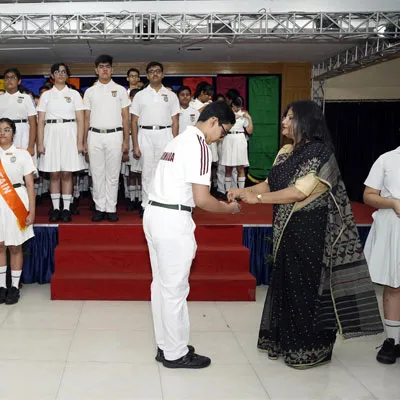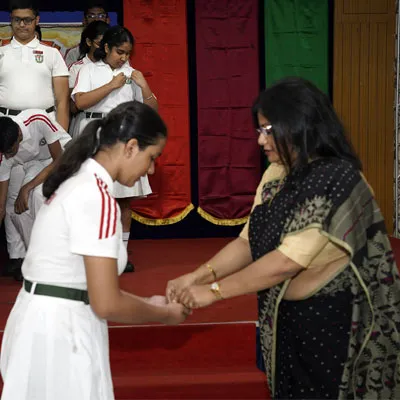 New Interact Board Members Receiving Their Badge From Vice Principal Indrani Chattopadhyay -