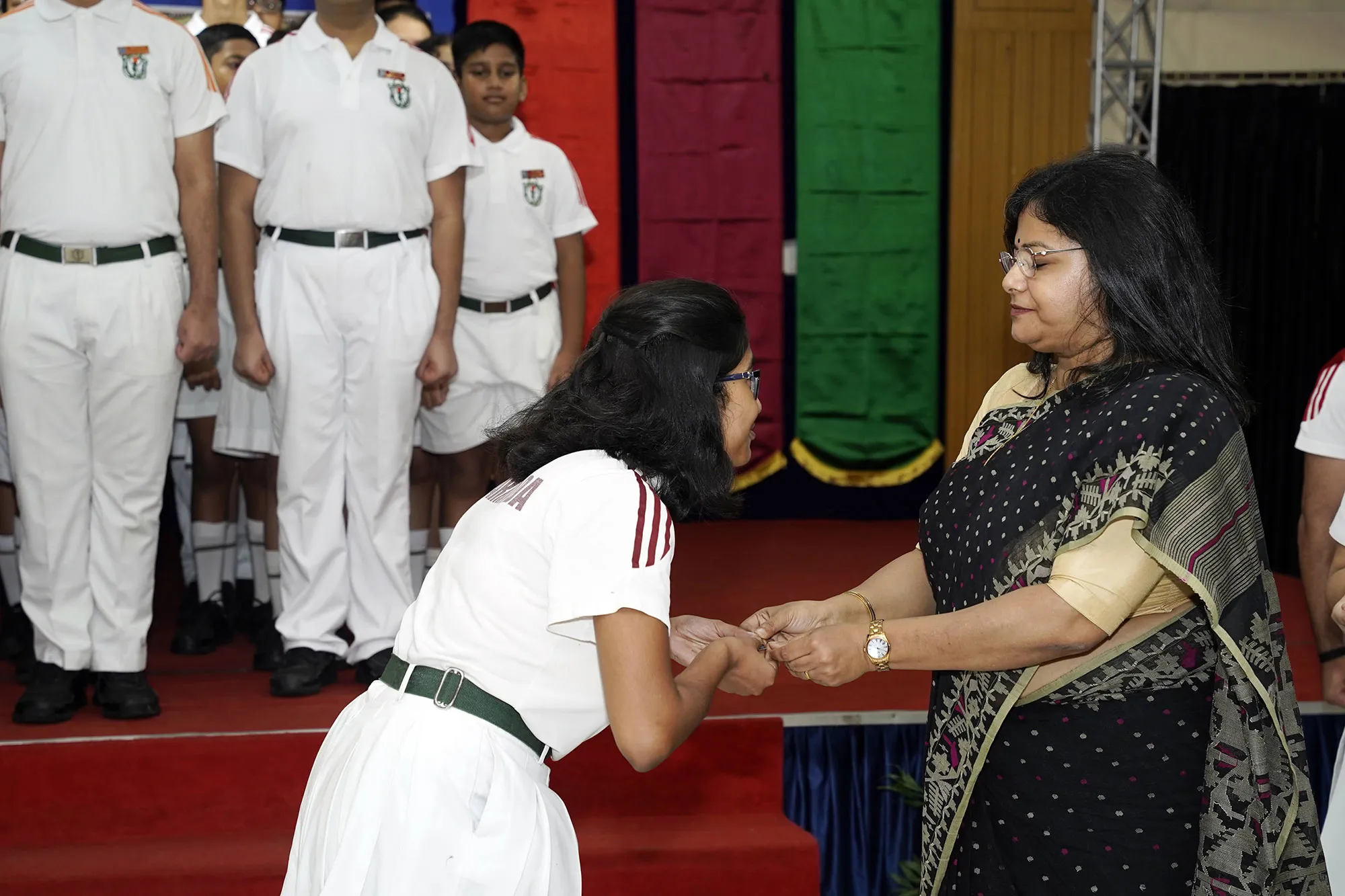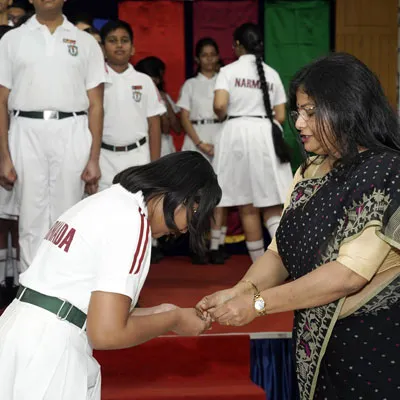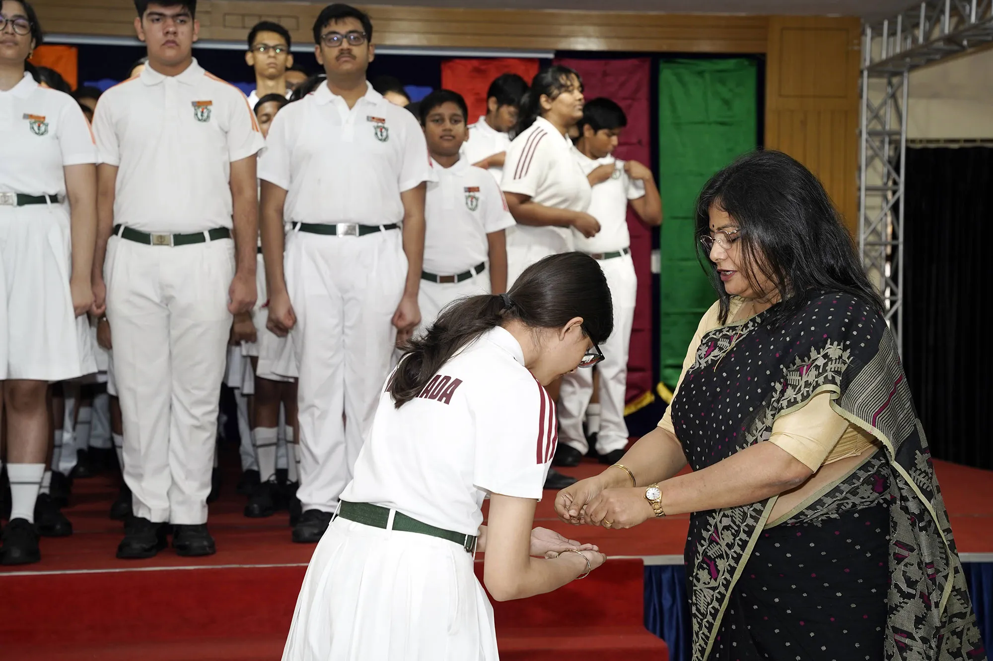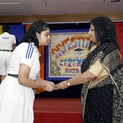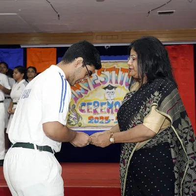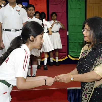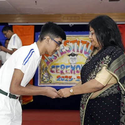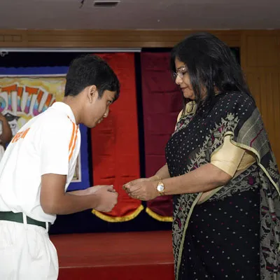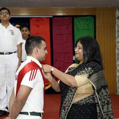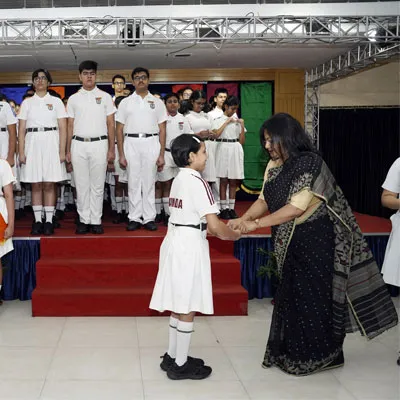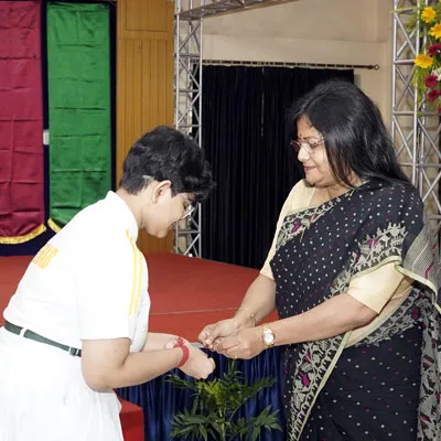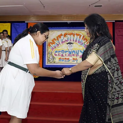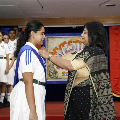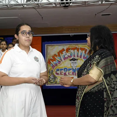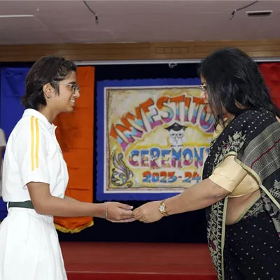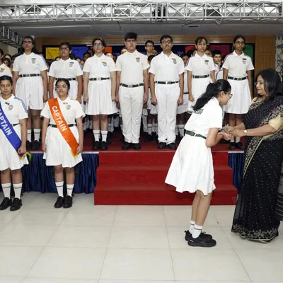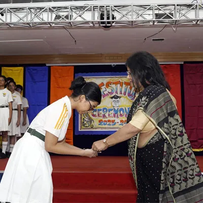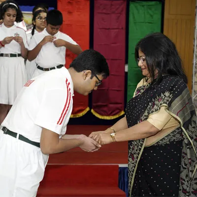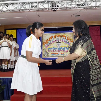 New Interact Board Members Receiving Their Badge From Vice Principal Indrani Chattopadhyay -