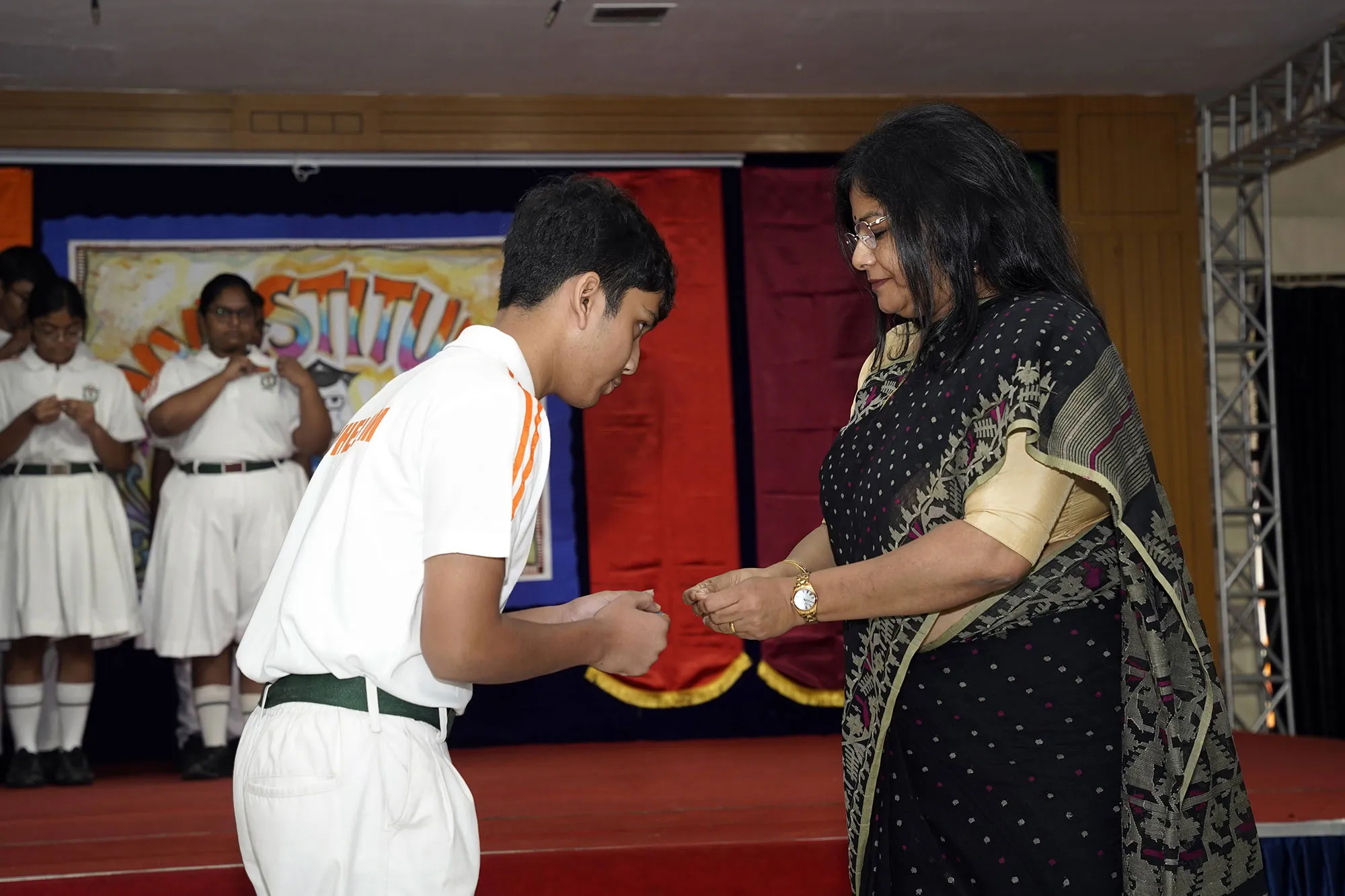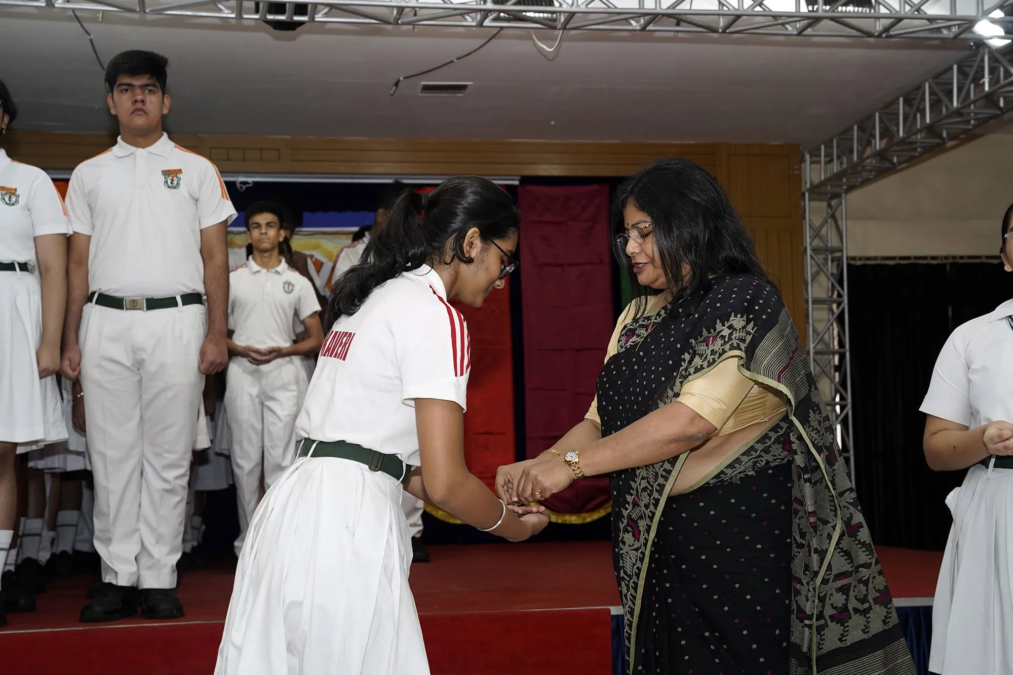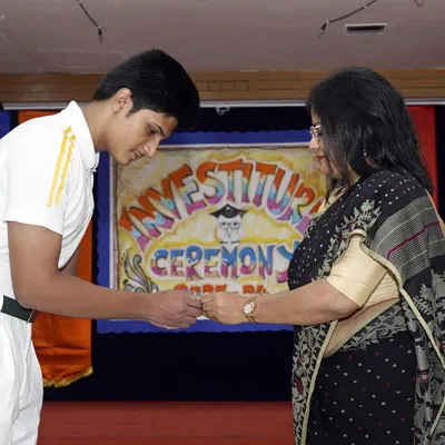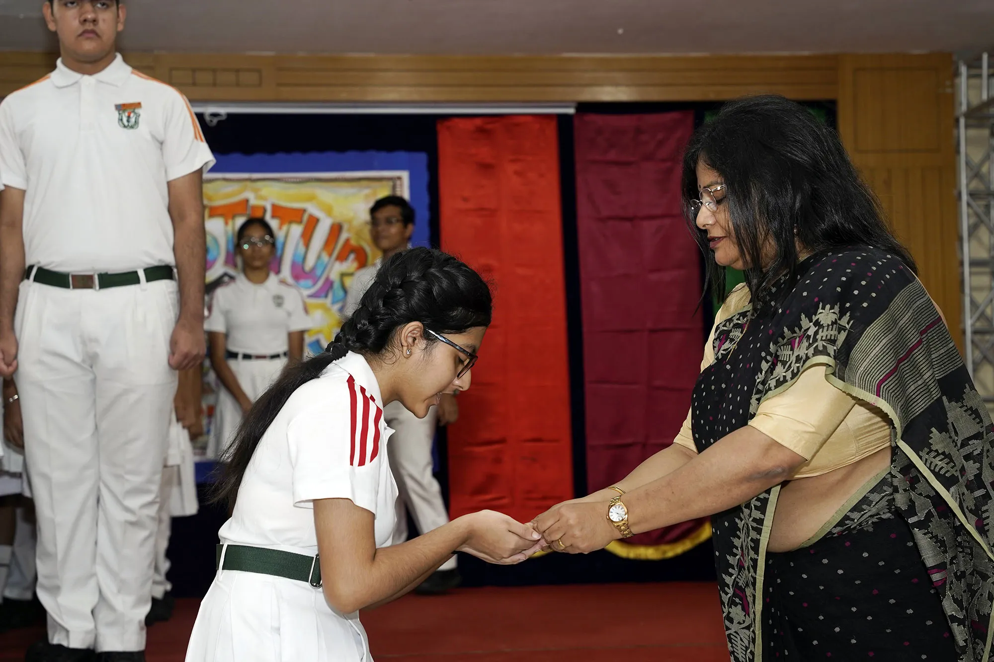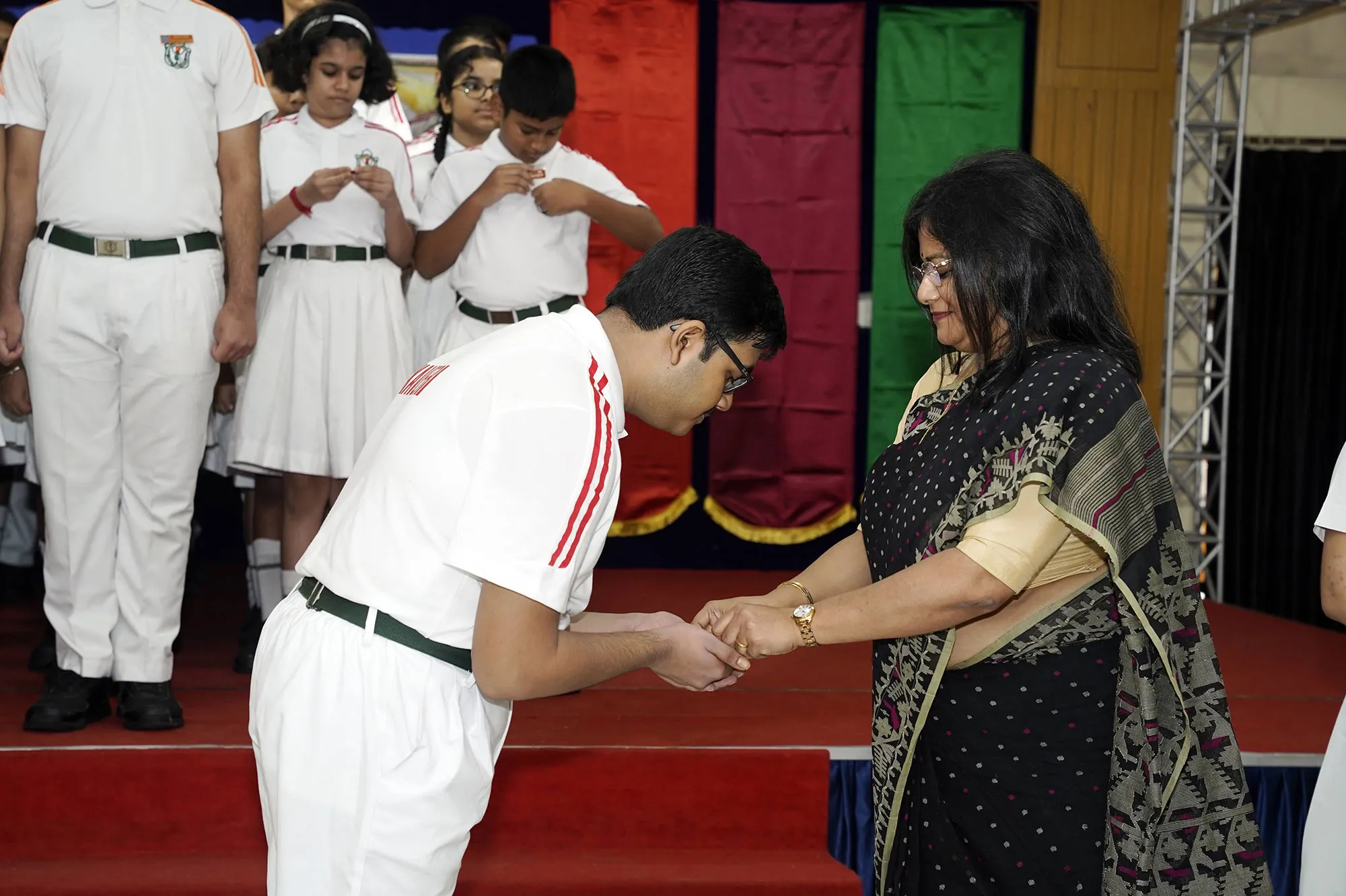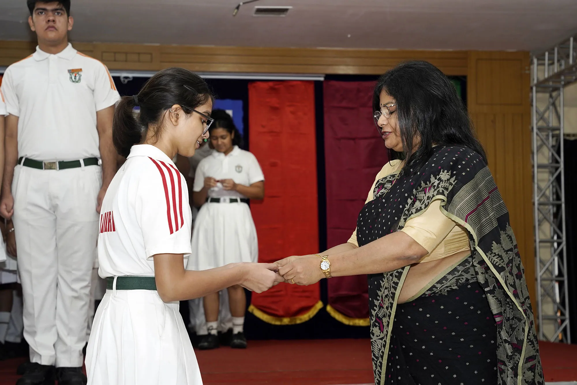 New Interact Board Members Receiving Their Badge From Vice Principal Indrani Chattopadhyay -