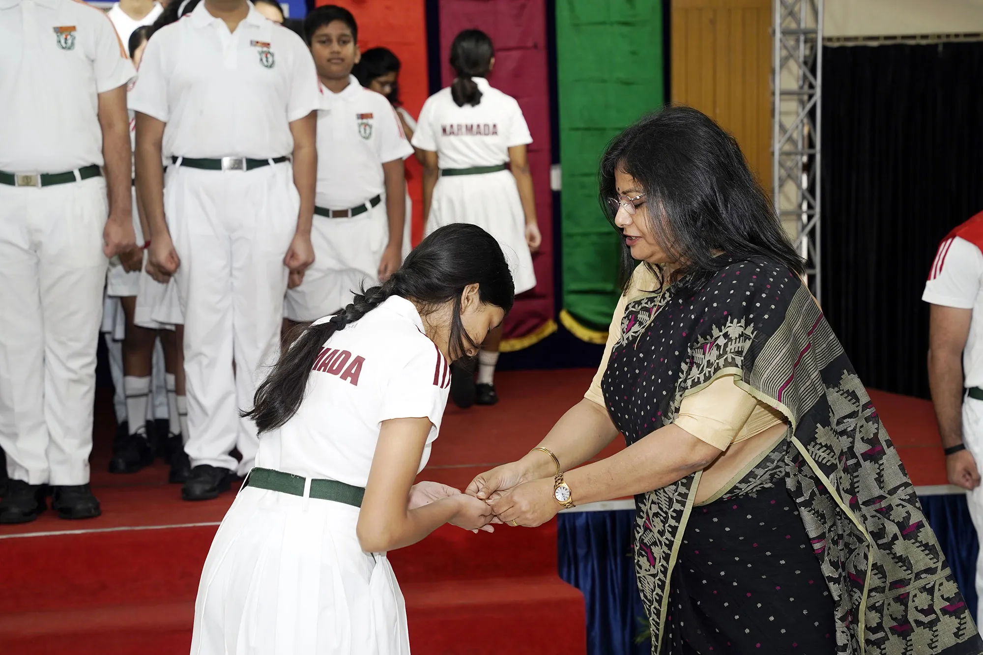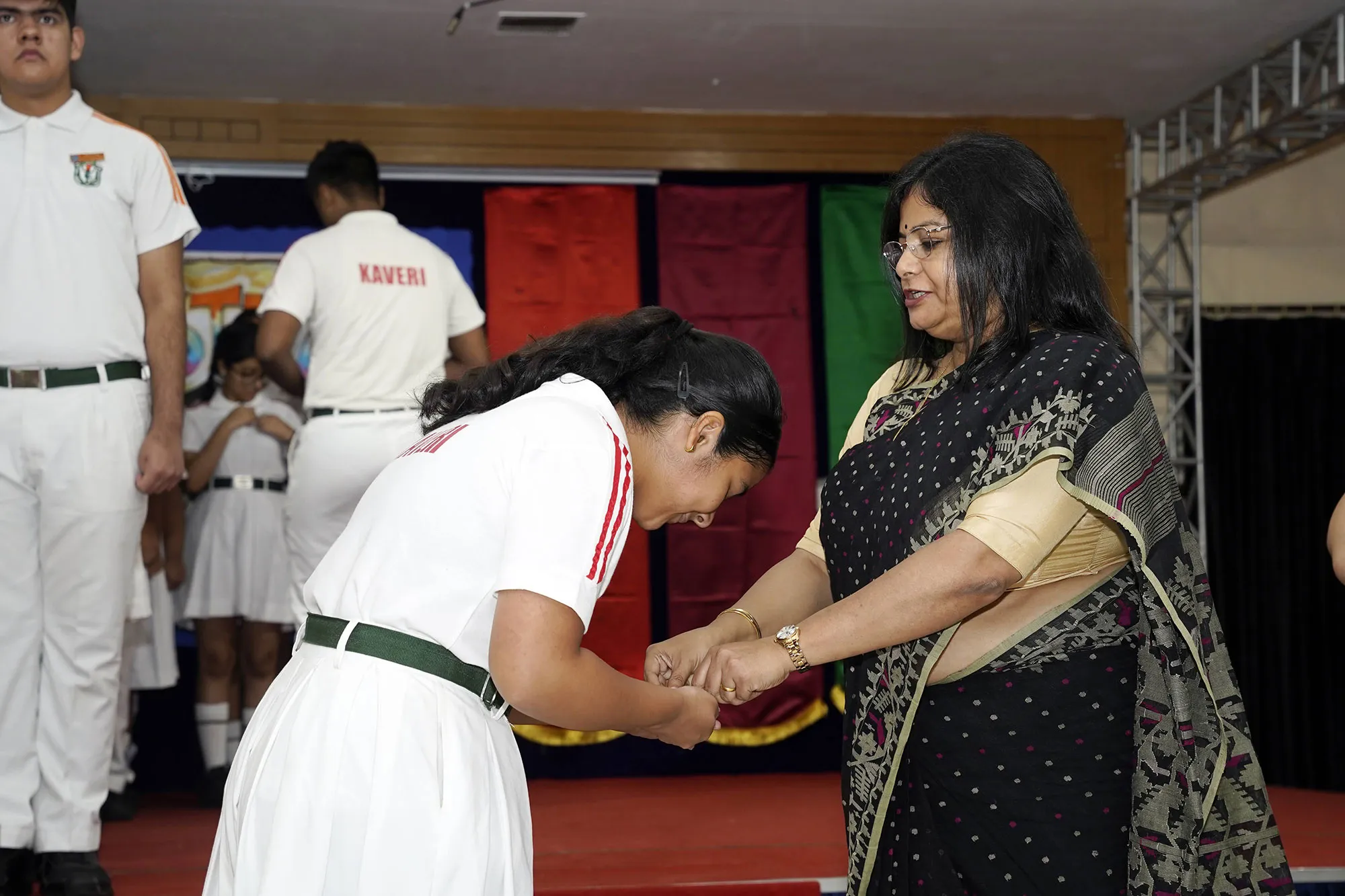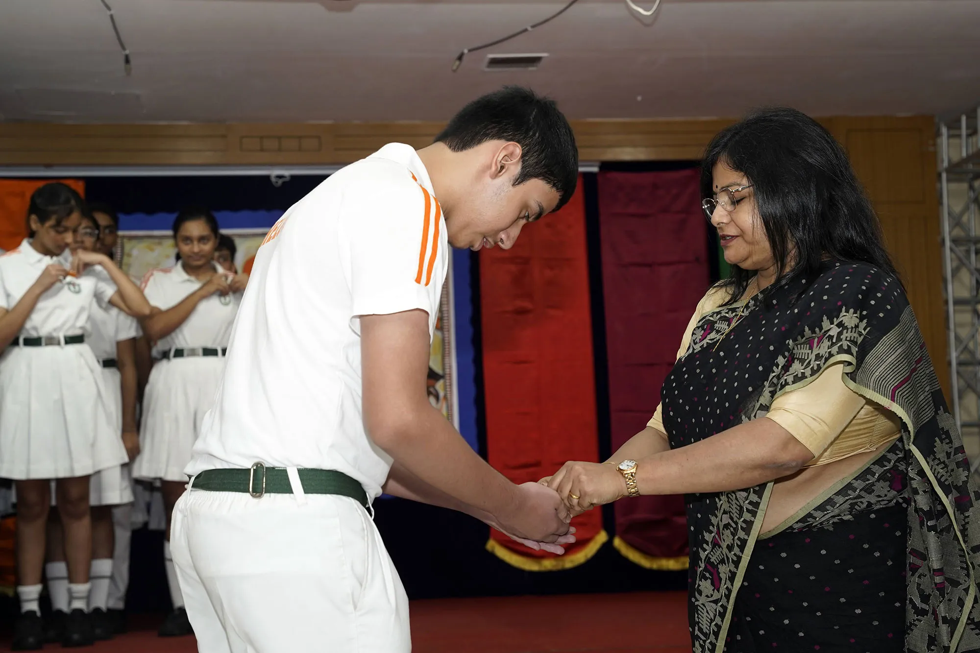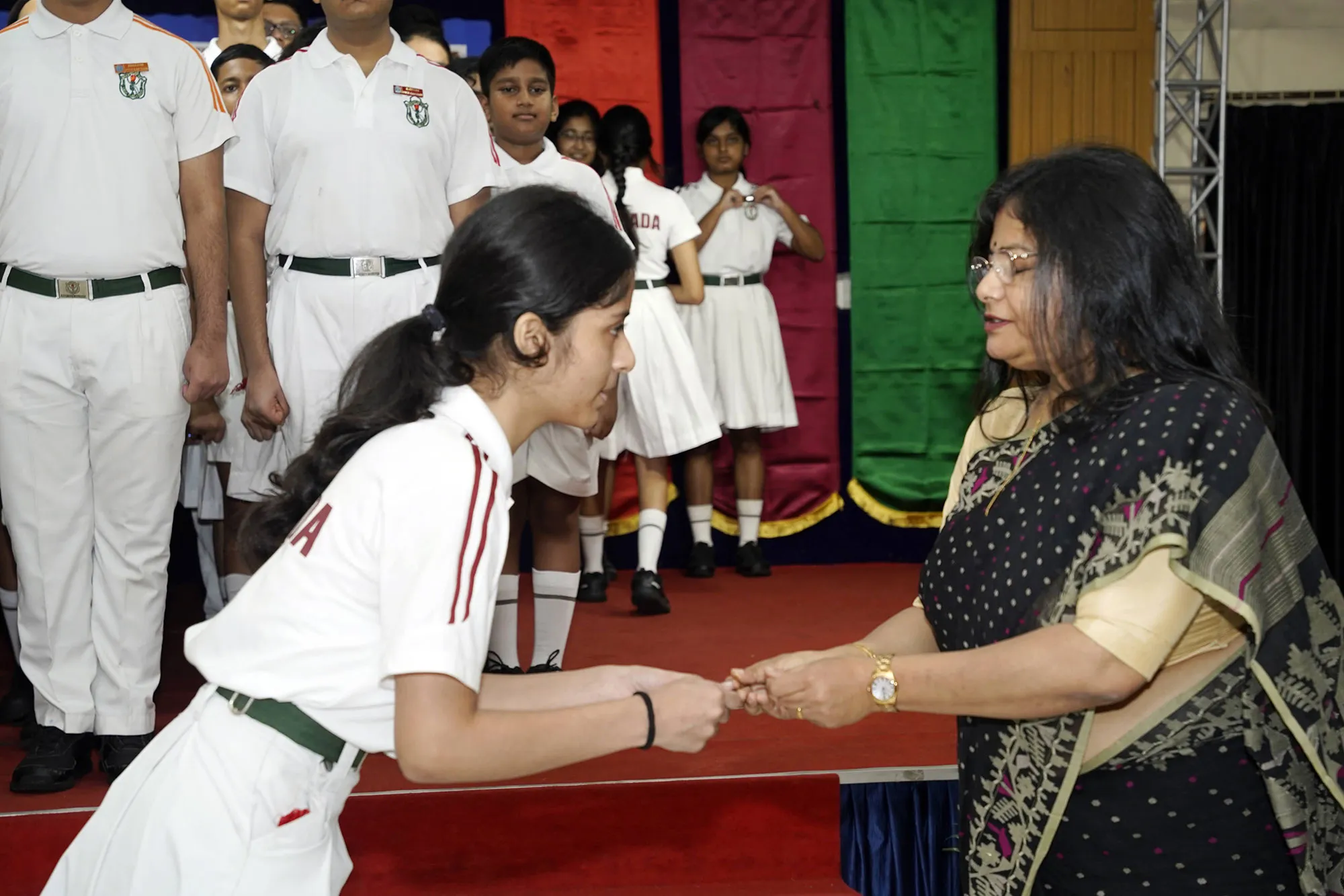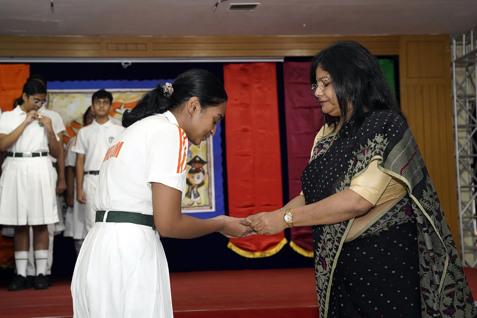 New Interact Board Members Receiving Their Badge From Vice Principal Indrani Chattopadhyay -