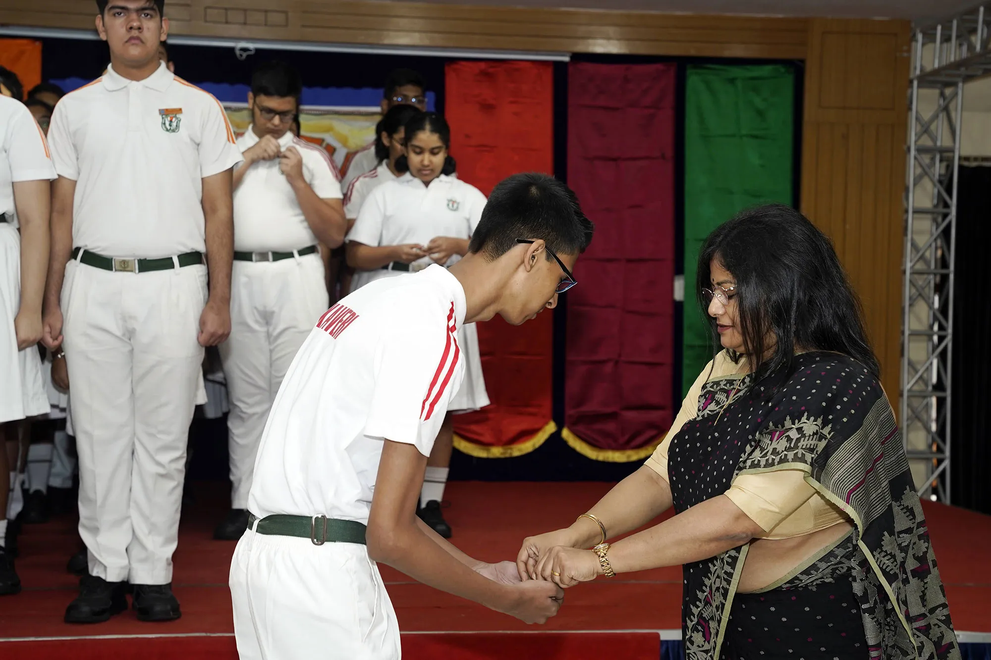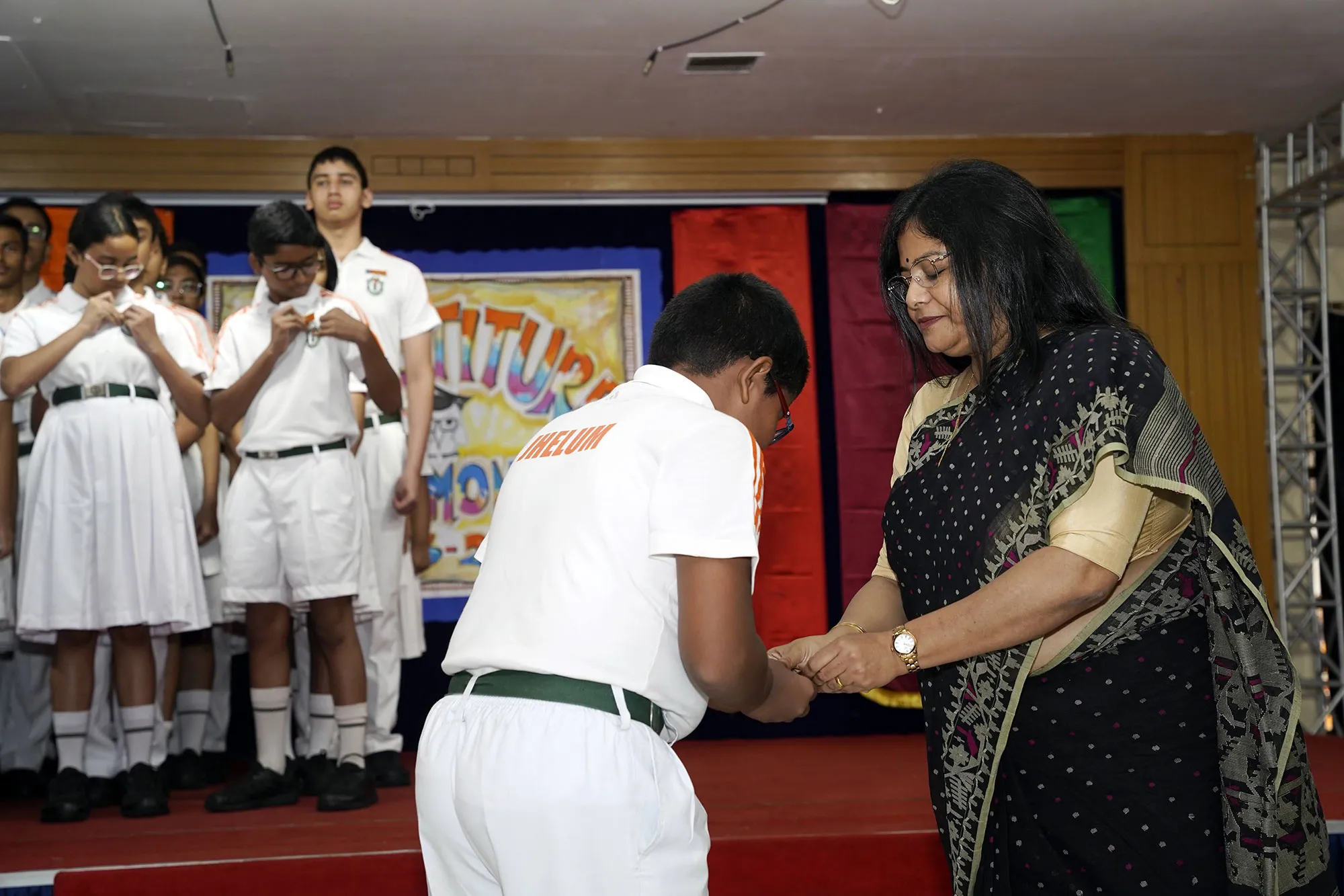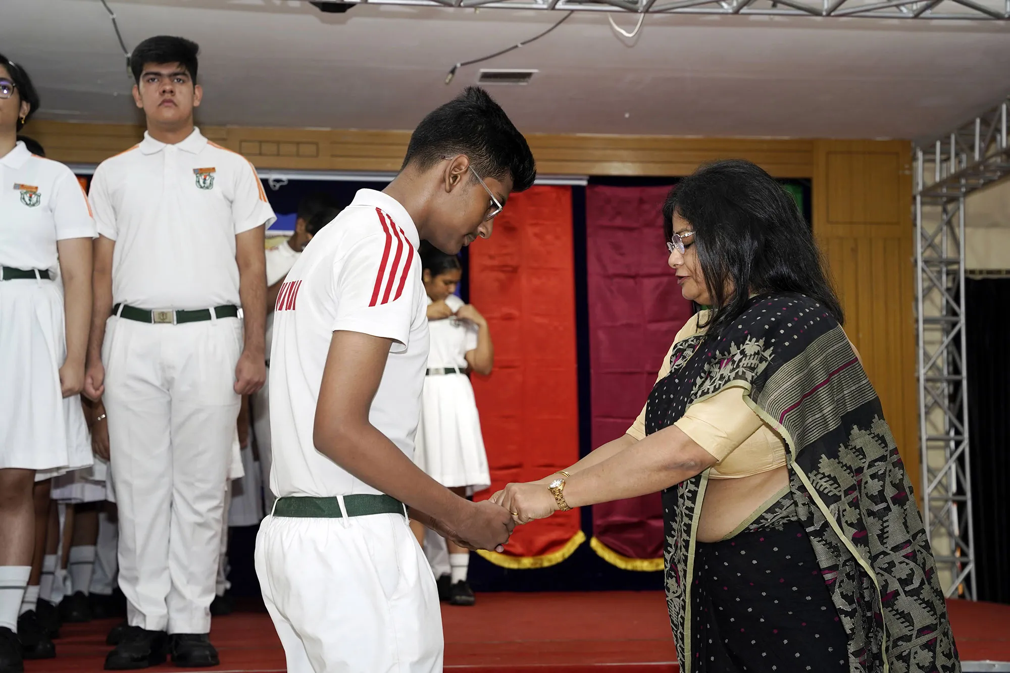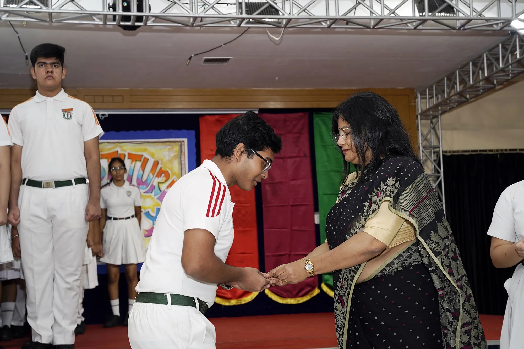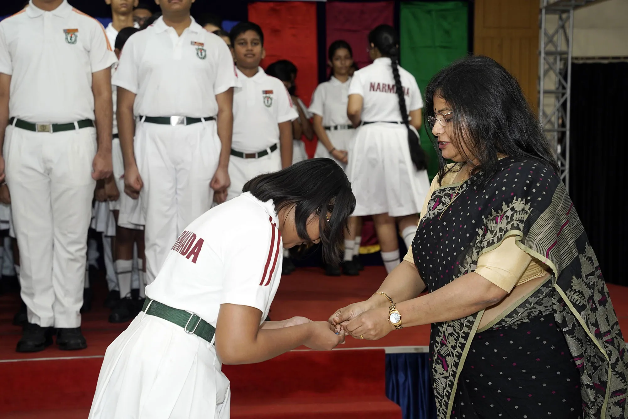 New Interact Board Members Receiving Their Badge From Vice Principal Indrani Chattopadhyay -