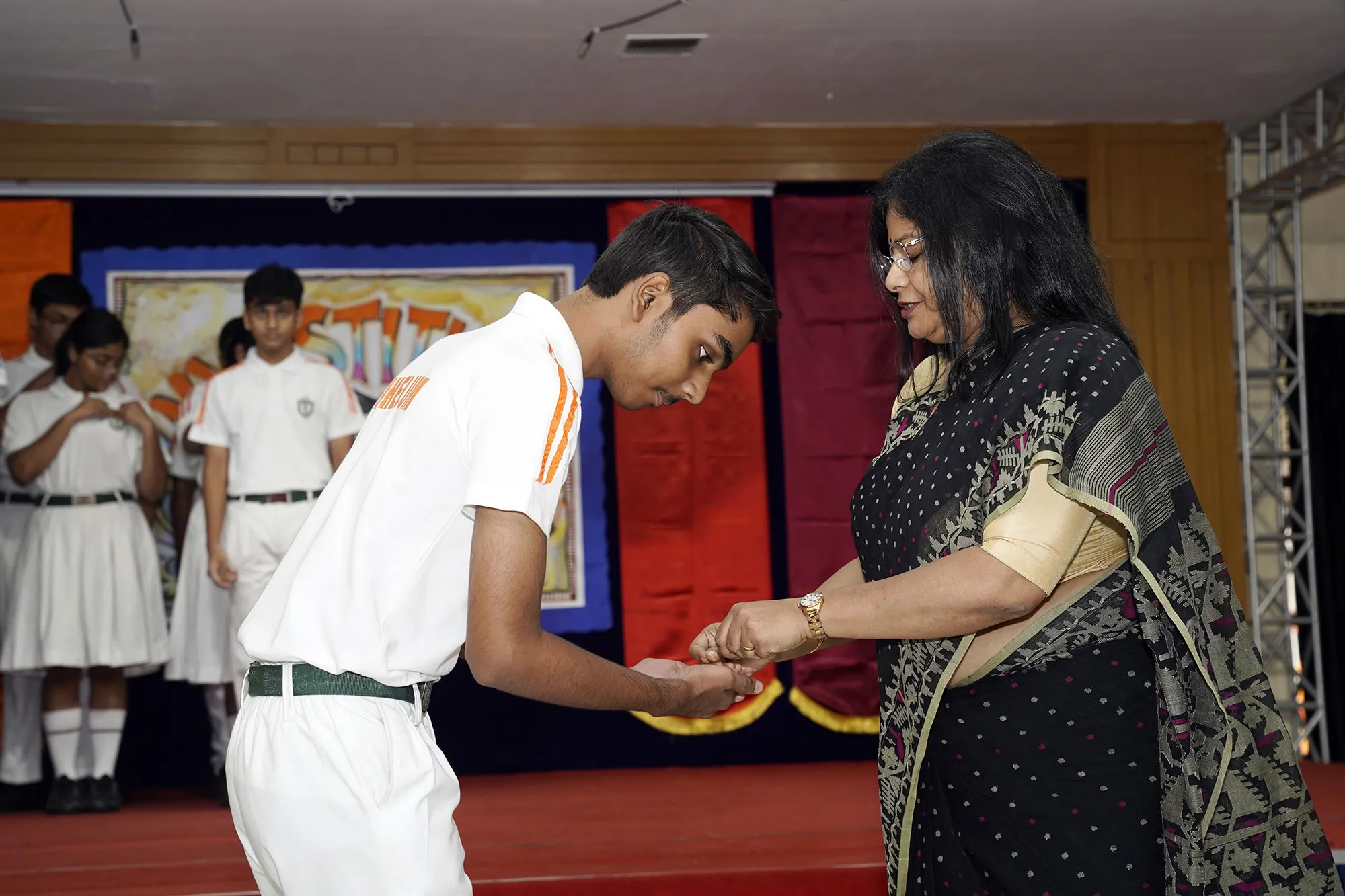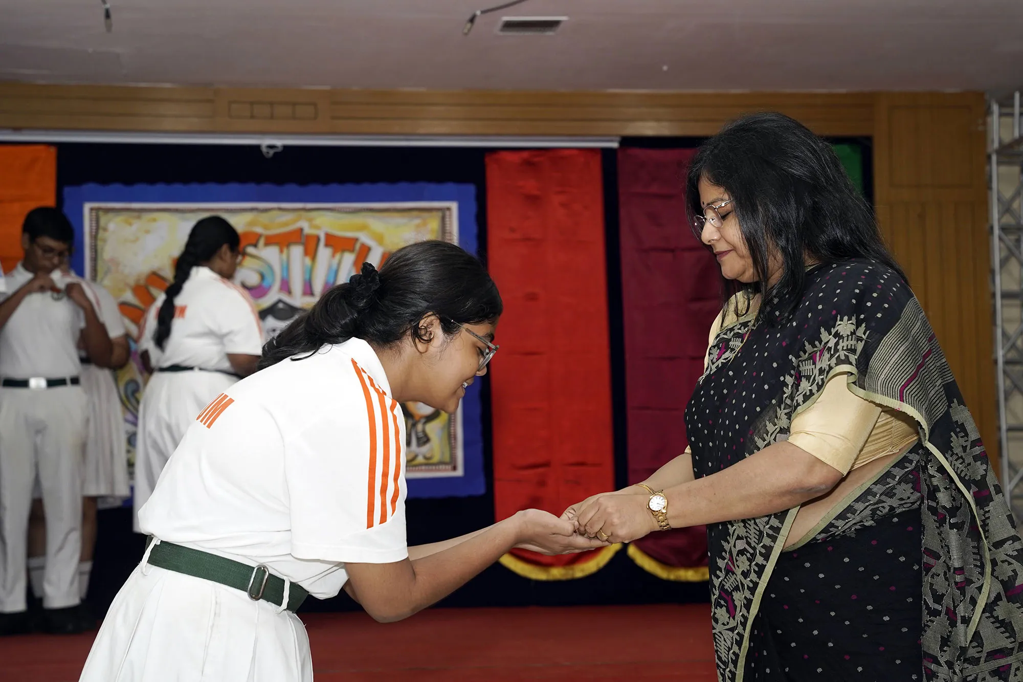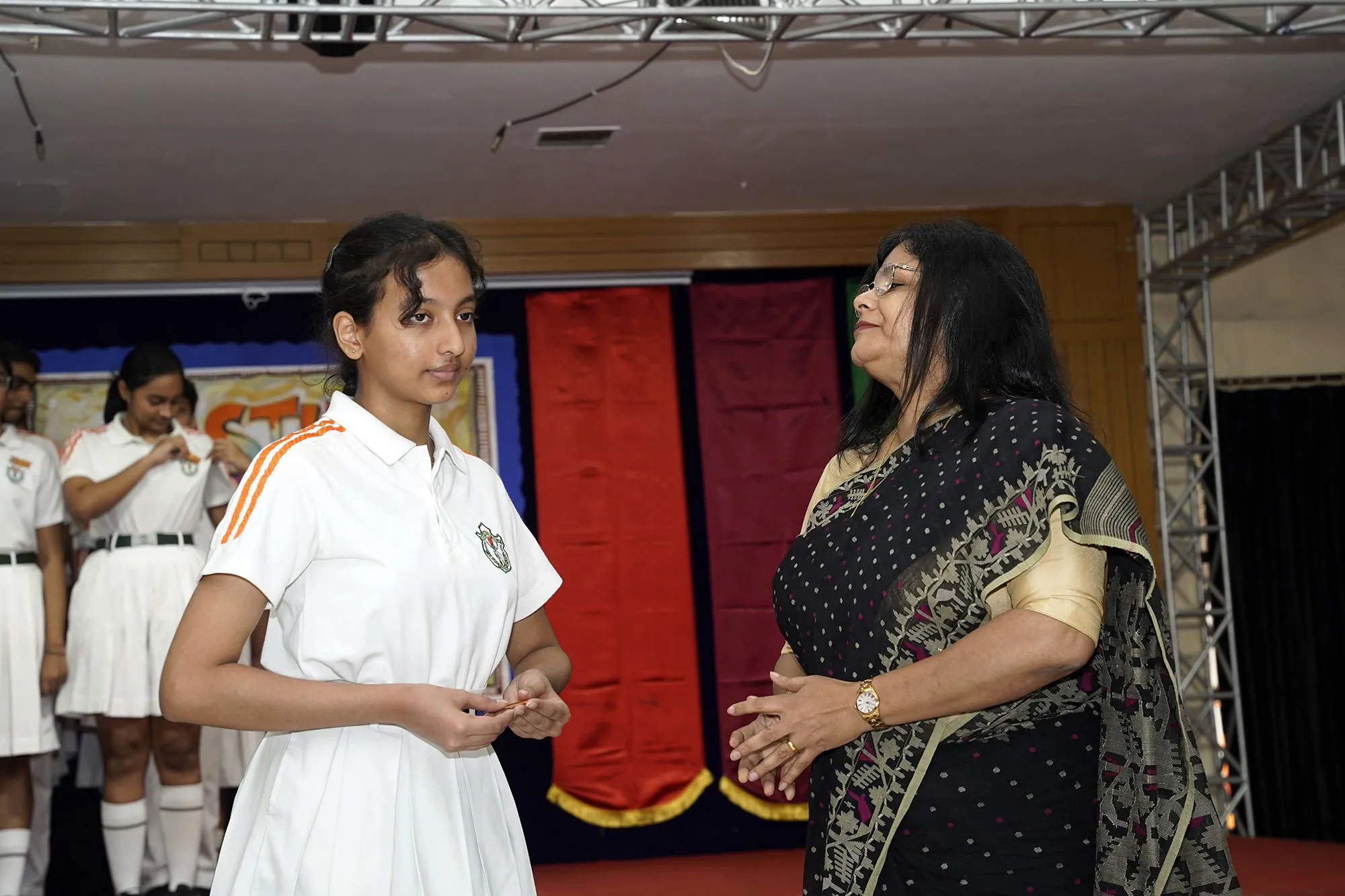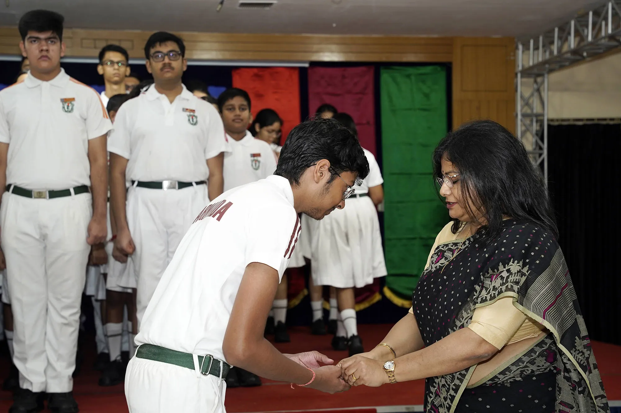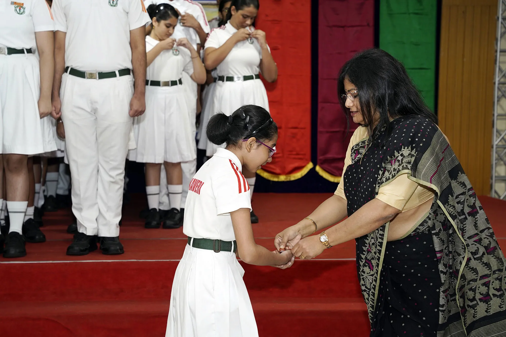 New Interact Board Members Receiving Their Badge From Vice Principal Indrani Chattopadhyay -