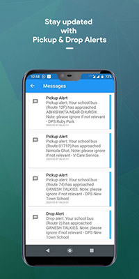 Get the helpful alert as your kid swipes the smart ID card at the RFID reader machine in the school bus: You will be notified through the My School Bus app or regular SMS with the time and location of the swipe when your kid swipes the card at the bus. Kindly instruct your child to regularly swipe his Smart ID card at the bus reader machine.